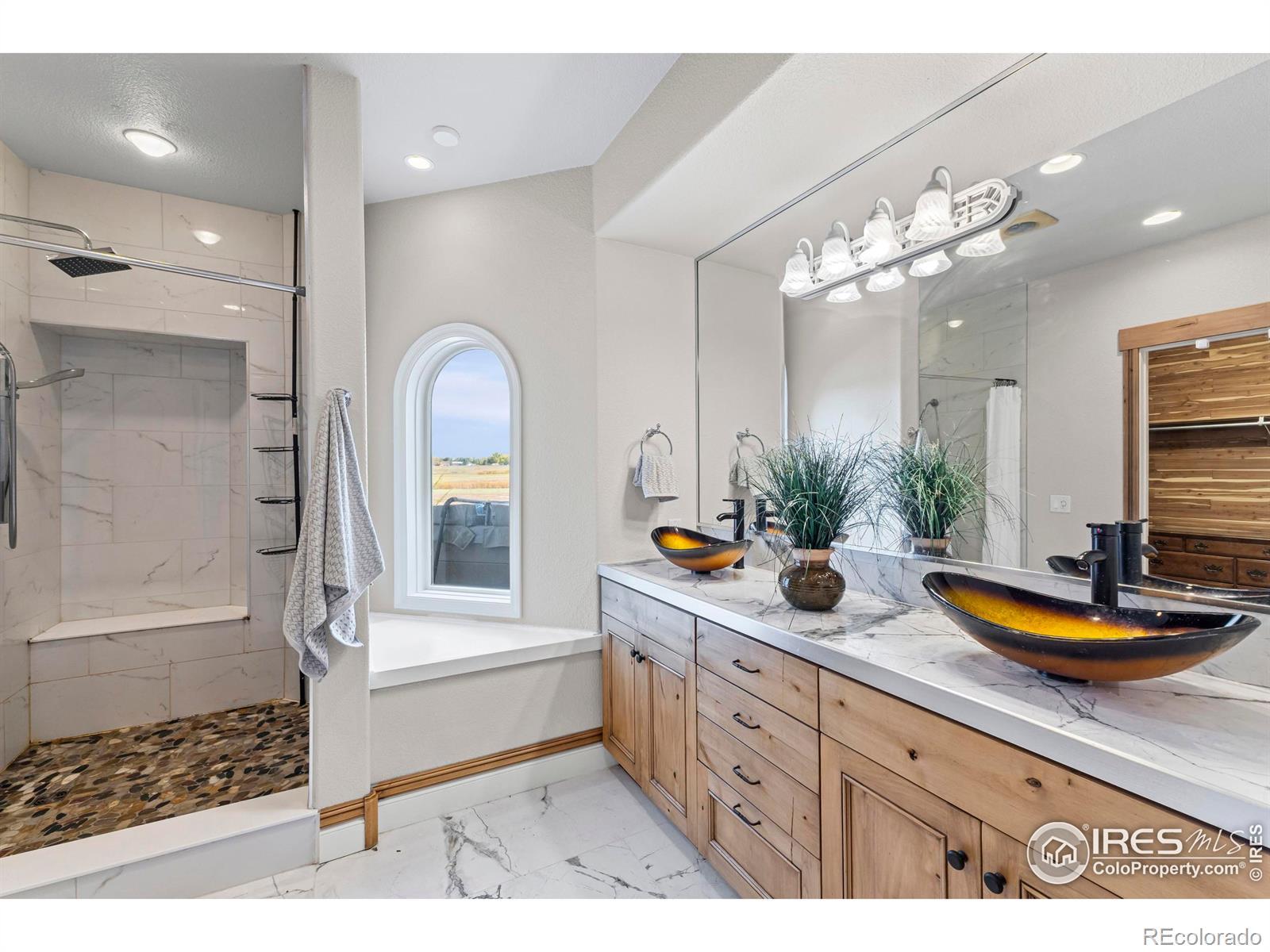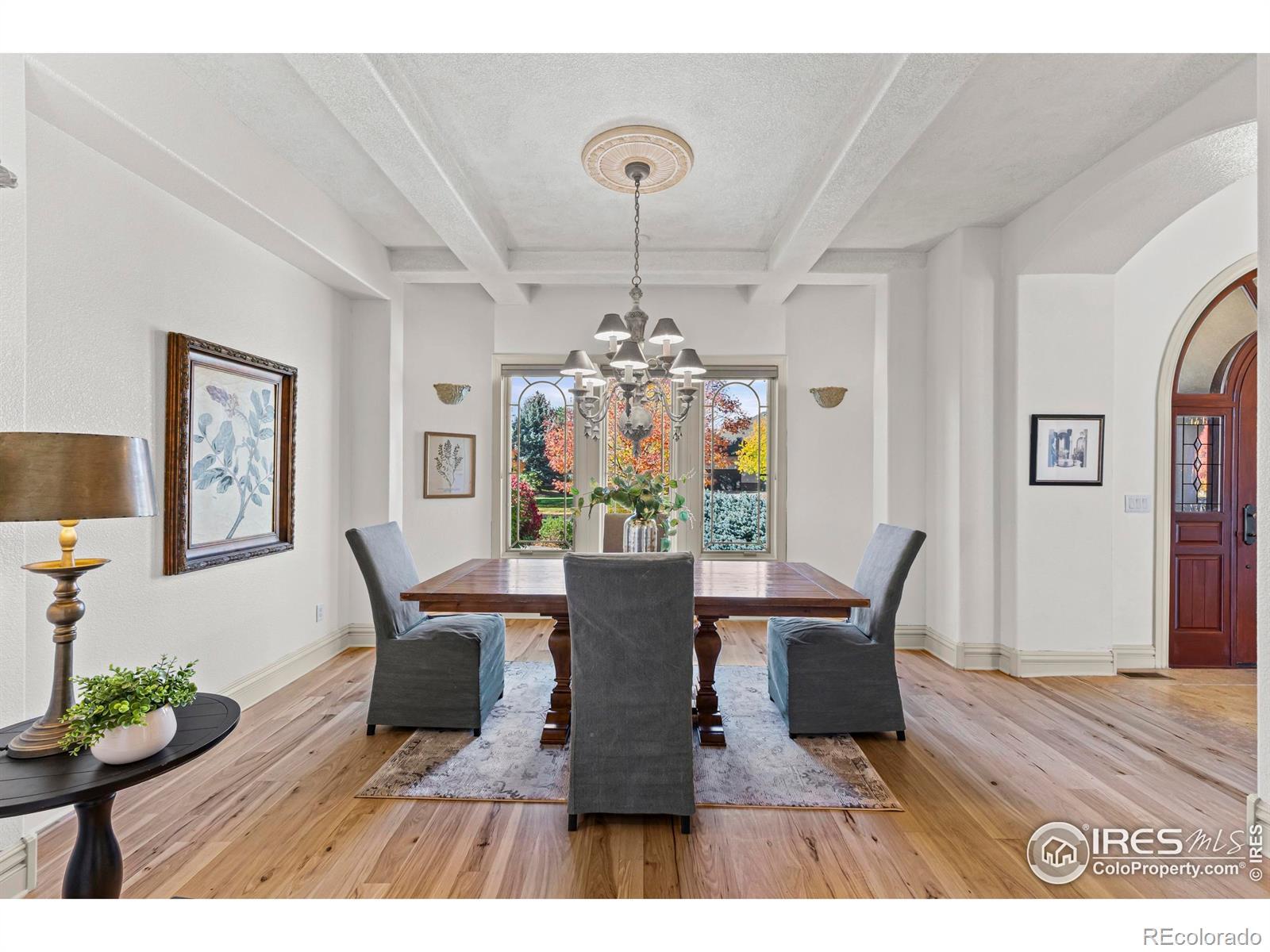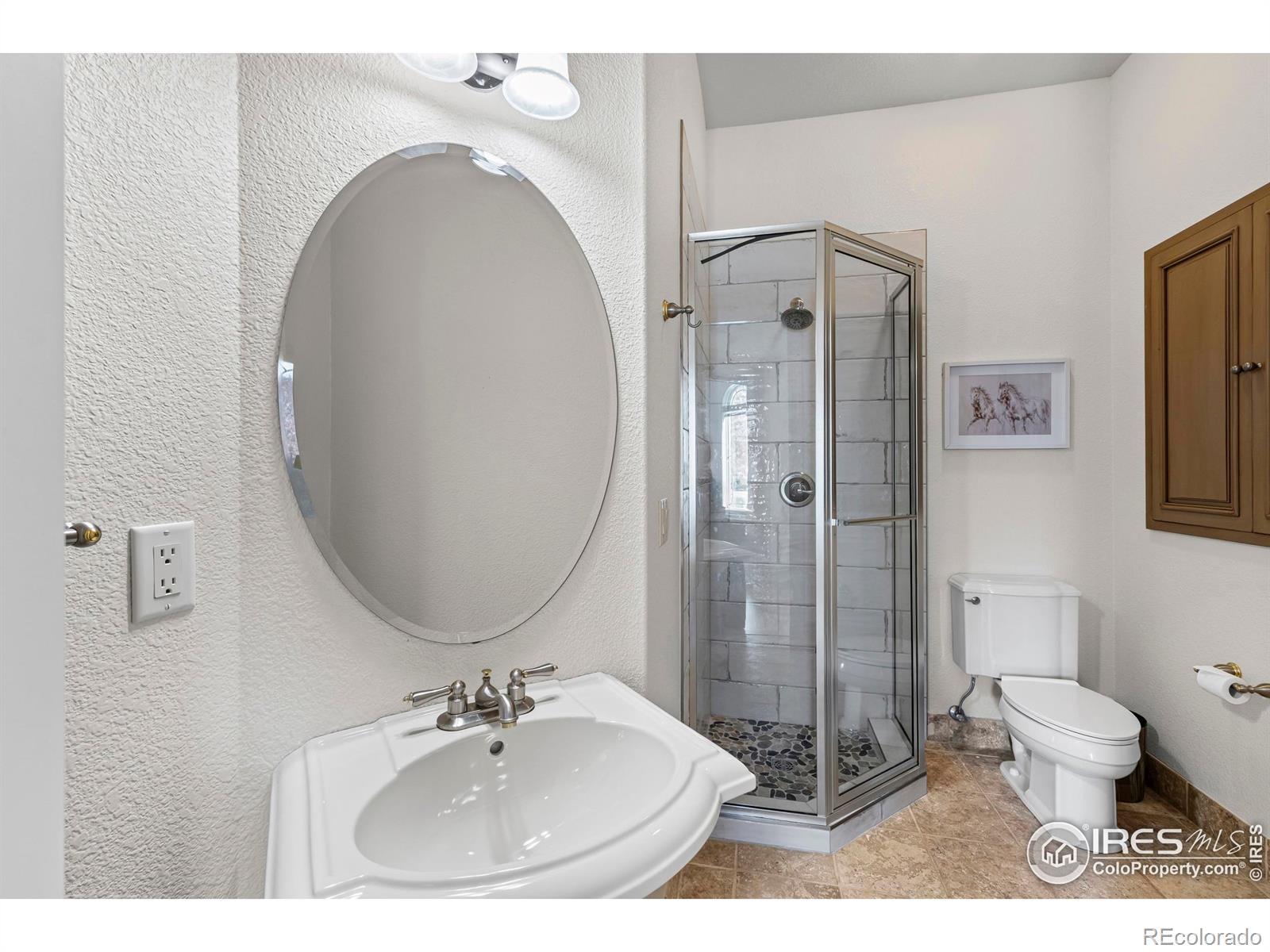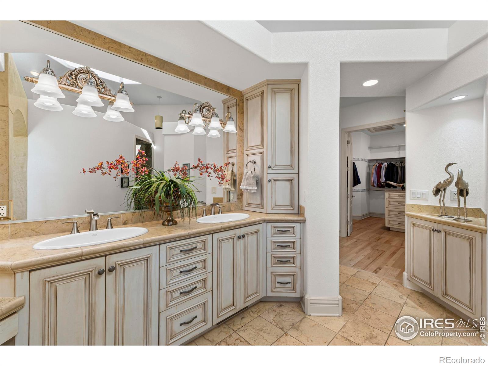Step into your dream sanctuary at this majestic Ranch with walkout basement, boasting 5 beds, 5 baths, 4 fireplaces, and three laundry areas! On nearly an acre of land, the fenced yard with dual gates and dual patios completes this haven set for family gatherings or multi-generational living. Enter the grand main floor foyer, stepping into the warmth of luxurious tile and hickory floors. The living room flows into a gourmet kitchen with two islands, a prep sink, pot filler, and a warming drawer. Gorgeous counter tops, a wine fridge, and Thermador fridge/gas range/oven are prime for entertaining guests, plus custom cabinets, and an eat-in nook with fireplace and ample windows. A grand formal dining room awaits toasts, and the oversized pantry room features its own built-in storage. Retreat to the main floor primary suite, with built-in bookshelves, and a fireplace. The walk-in closet has an island, and gorgeous built-ins. The stone-clad shower with dual heads, and the 72" jetted tub, create a spa-like experience. The pyramid shaped sky light channels natural light. An octagon-shaped main-floor office (or 5th bedroom) has a private exterior door and plenty of windows. Unwind on the upper back patio, overlooking the private open space just beyond the yard. Venture downstairs where three rooms each open to the walkout lower patio. The 2nd primary bedroom has a cedar walk-in closet, bath with a poured-pan shower, and dual vanities. The cork-floored wine room cradles bottles in gorgeous racks, while the tranquil sauna room steams away the world. A fireplace unites the great room and wet bar areas. This level also features a separate staircase entry, up into the garage. This isn't just a home - it's a heartbeat of luxury amongst walking trails, ponds, a community park/tennis/open spaces, and is near Fossil Creek Reservoir Natural Area! This location with this kind of luxury is a rare find - especially in such a prime location for I-25 travel, recreation, and amenities.