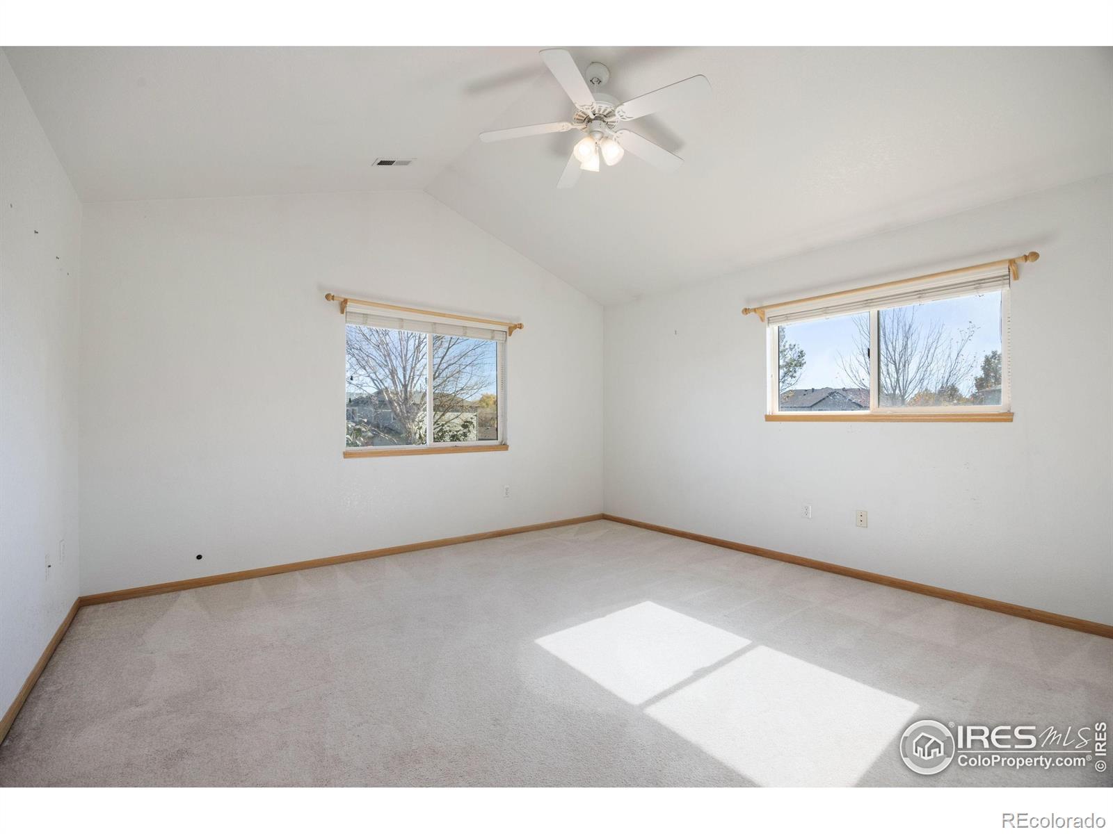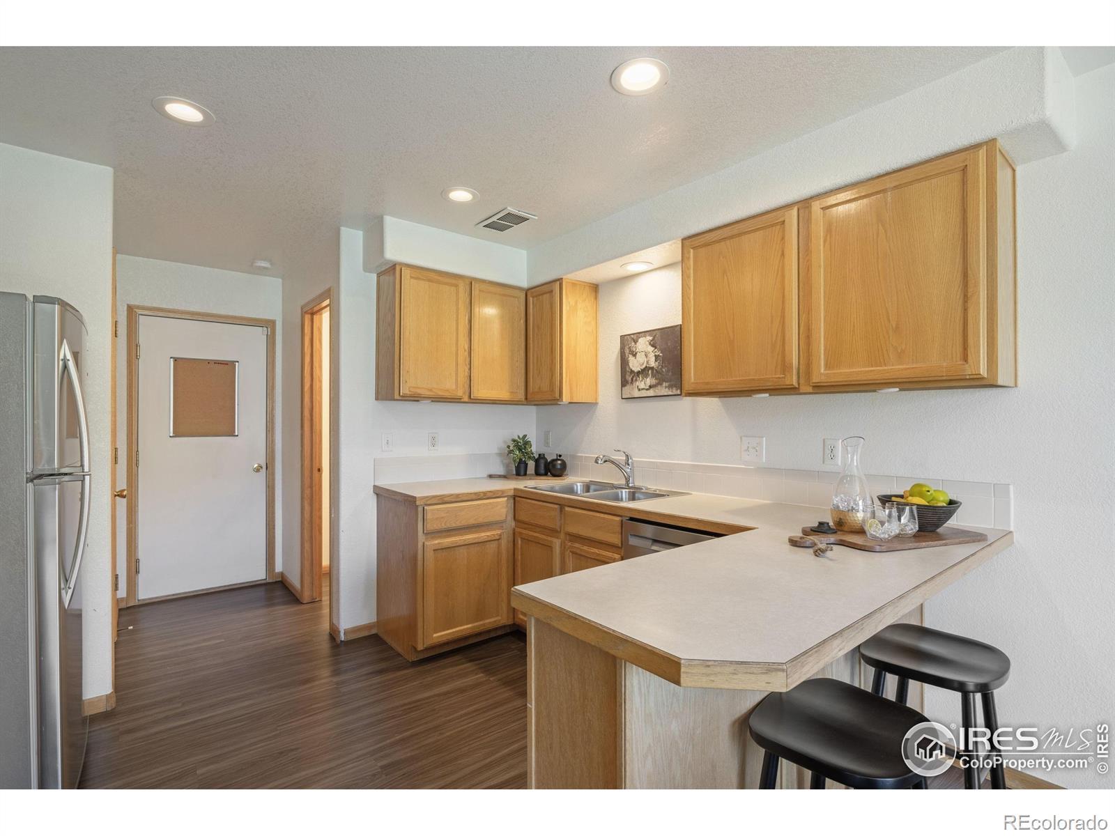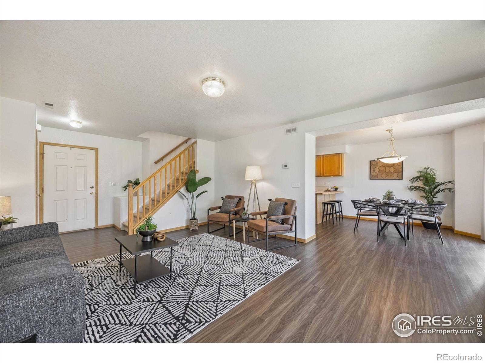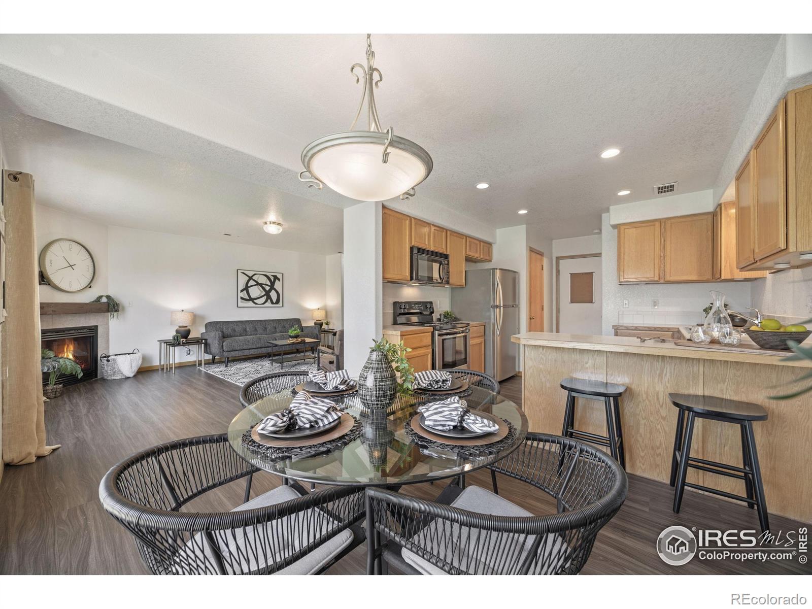 End-unit, townhome-style condo with stunning mountain views backing to open space! Prime location across from the CSU Equine Center and foothills, just minutes to Old Town Fort Collins and the CSU campus. Move-in ready with wood laminate floors on the main level, a cozy gas fireplace, and high ceilings that enhance the bright open feel. Upstairs features 3 bedrooms, including a spacious primary suite with a full bath, double vanities, and walk-in closet. Enjoy new exterior paint (handled by HOA), plus nearby neighborhood trails and a beautiful preserve area right out your back door.