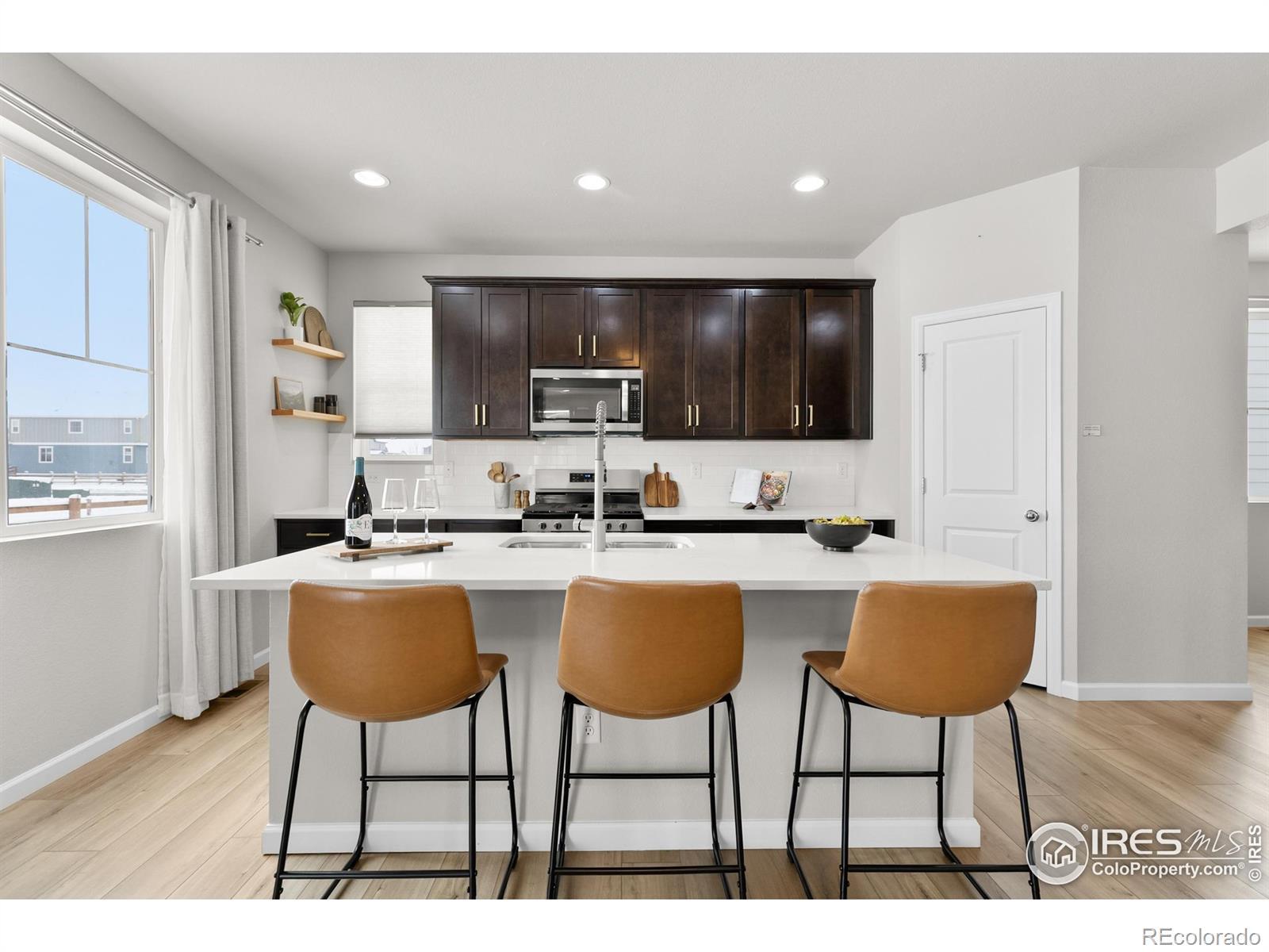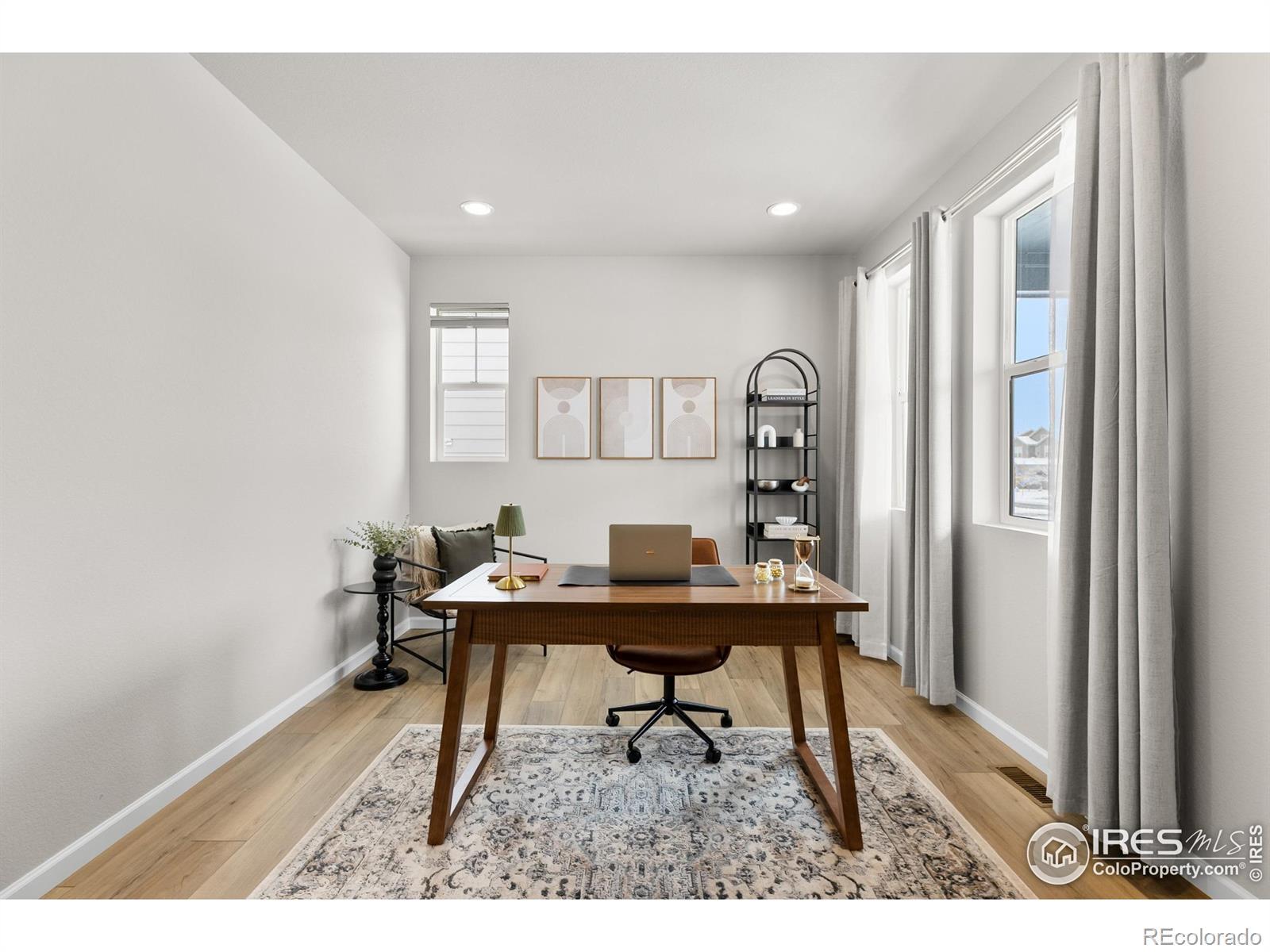 Join us at one of our upcoming open houses! Tuesday 12/16 11am-1pm, Thursday 12/18 3pm-5pm, Saturday 12/20 11am-1pm, and Sunday 12/21 1-3pm. Experience a lifestyle where mountain views, trail access, and everyday comfort blend seamlessly into the backdrop of your home. Backing to a peaceful stretch of open space, trail access to Downtown Erie and backing to the future Town of Erie park, this thoughtfully designed 4-bedroom, 4-bathroom home has everything you're looking for. Inside, the floorplan balances comfort and flexibility for the way you live. The main-level bedroom with a private ensuite full bathroom creates the perfect retreat for guests or multigenerational living. A dedicated home office sits at the front of the home, while an additional flex room can serve as a second office, formal dining room, or cozy den. Rounding out the main level is a kitchen, built for entertaining, that seamlessly flows to another dining area and living room, as well as an additional half bathroom. Upstairs, a spacious loft adds another versatile living area and is joined by two secondary bedrooms, a full bath with dual sinks, and a convenient laundry room to streamline daily routines. The primary bedroom provides gorgeous views of the mountains, an en-suite bathroom with dual sinks and a large walk in closet. The expansive unfinished basement, with roughed in plumbing for a bathroom, is a blank canvas and ready for your vision. Step outside and enjoy a backyard designed for outdoor living, including a large, covered patio. Fruit trees, vibrant plantings, and raised garden beds offer the perfect start for gardeners. A natural gas hookup is in place for grilling, or for a future outdoor kitchen. Morgan Hill is a vibrant community with many community events, two neighborhood parks, a community pool, the future town of Erie park and miles of walking trails!
