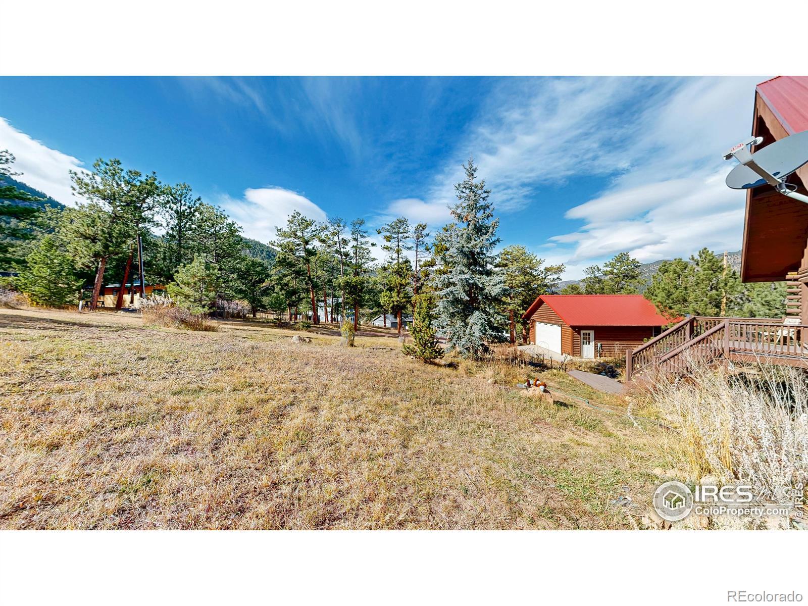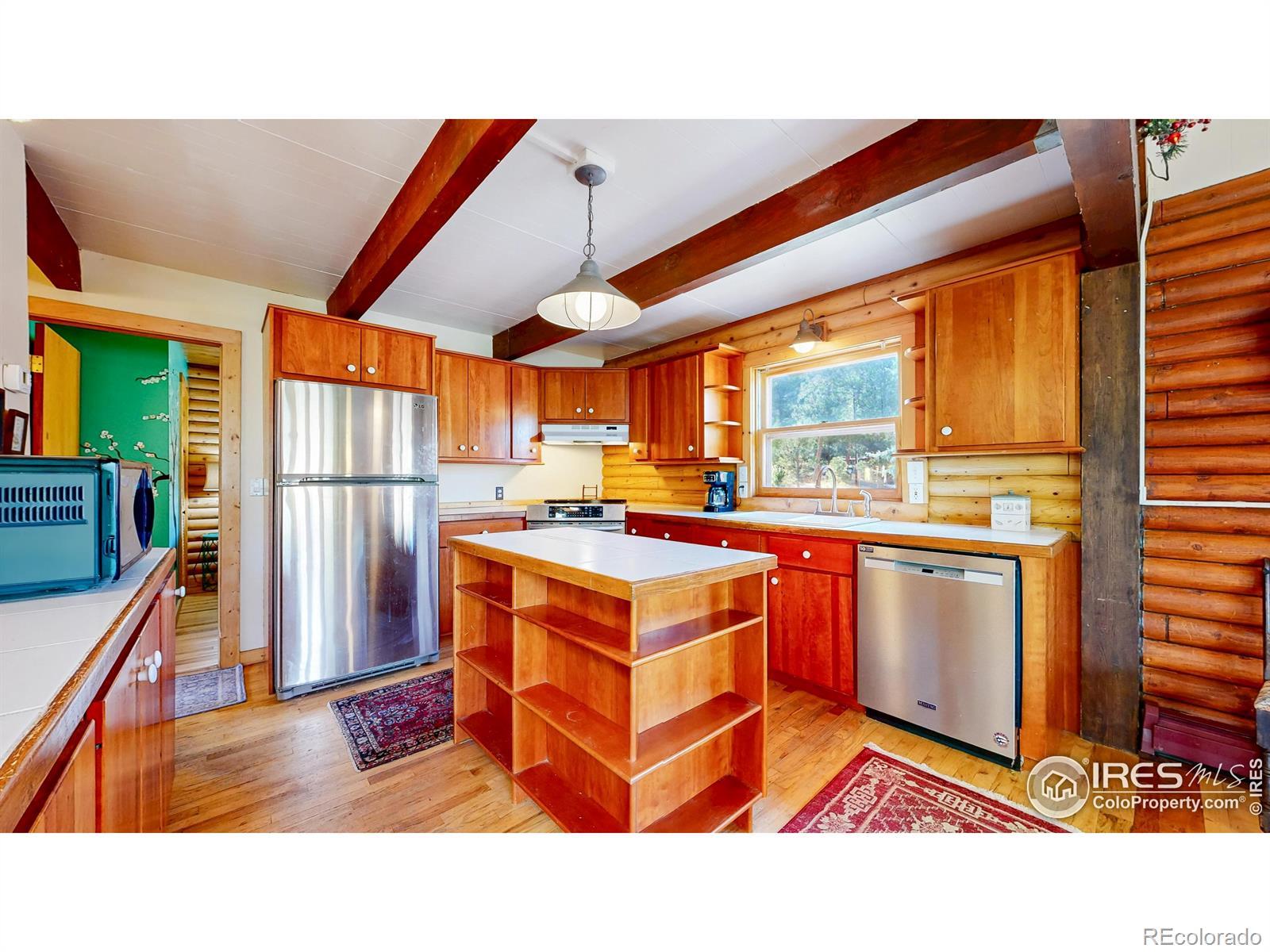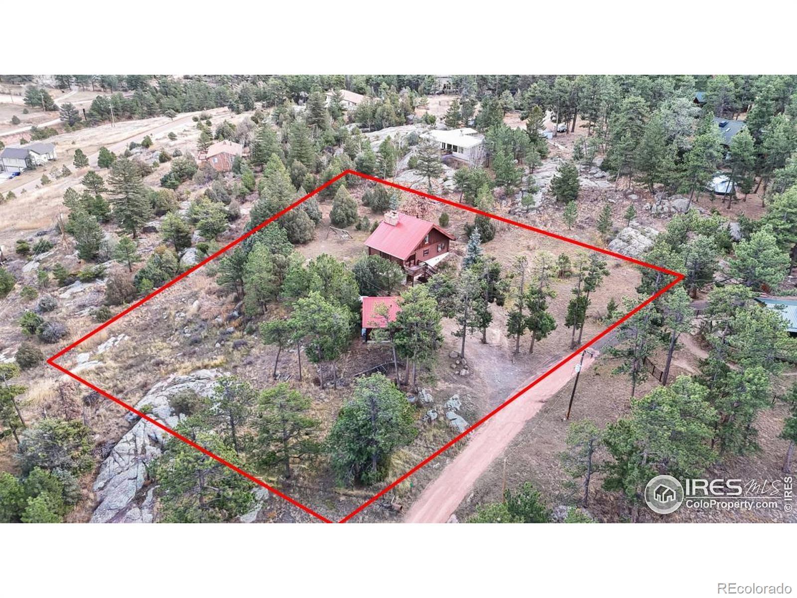 Classic log home with vaulted ceilings and skylights. Open floor plan and hardwood floors. Updated kitchen. Inviting lower walkout family room with wood stove. Front and rear deck. Oversized detached garage with metal roof adds utility. District water, roads are plowed to your driveway. This home hits the sweet spot! Easy access to downtown Lyons and Estes Park. 30 minutes to Boulder.
