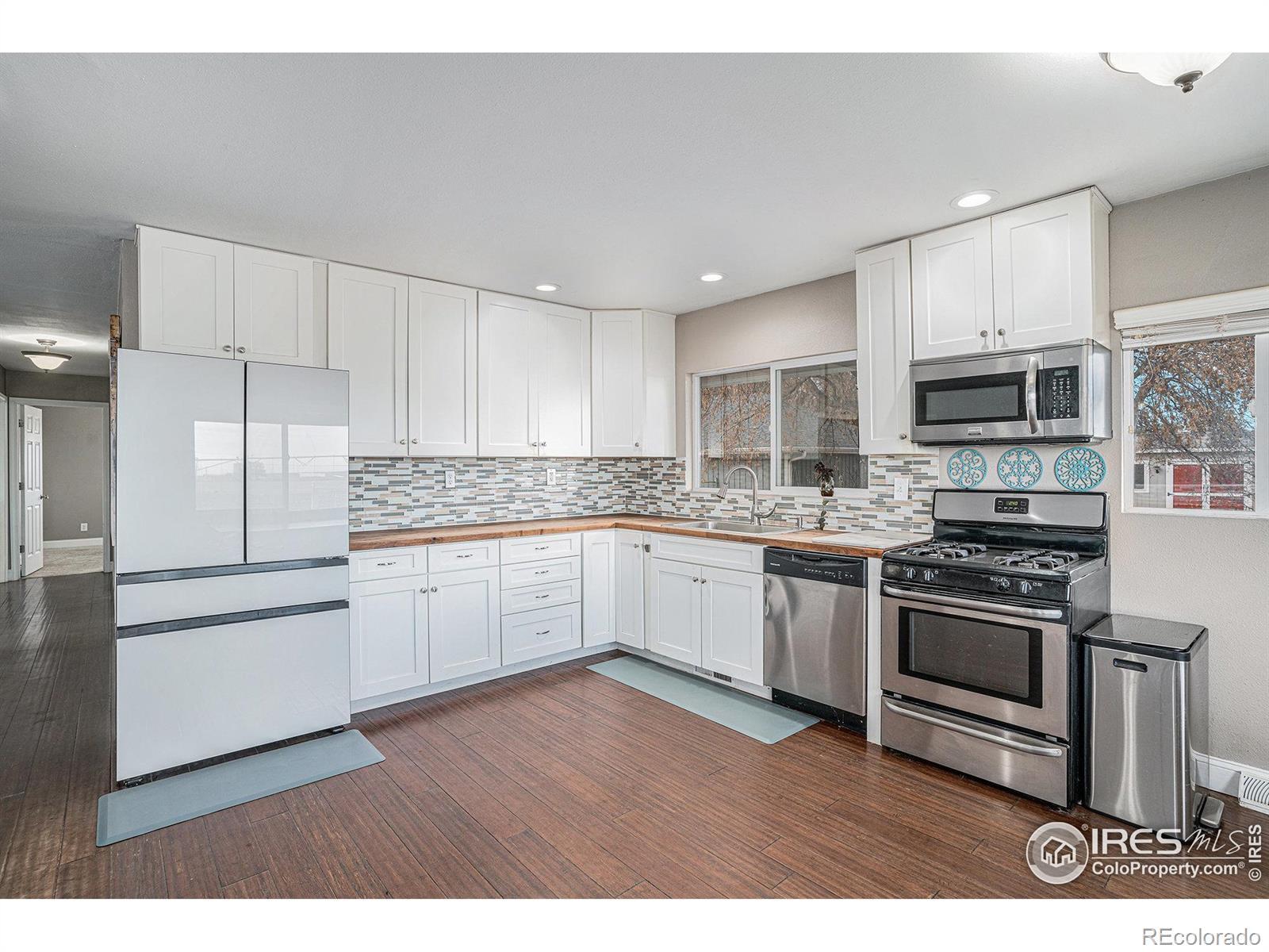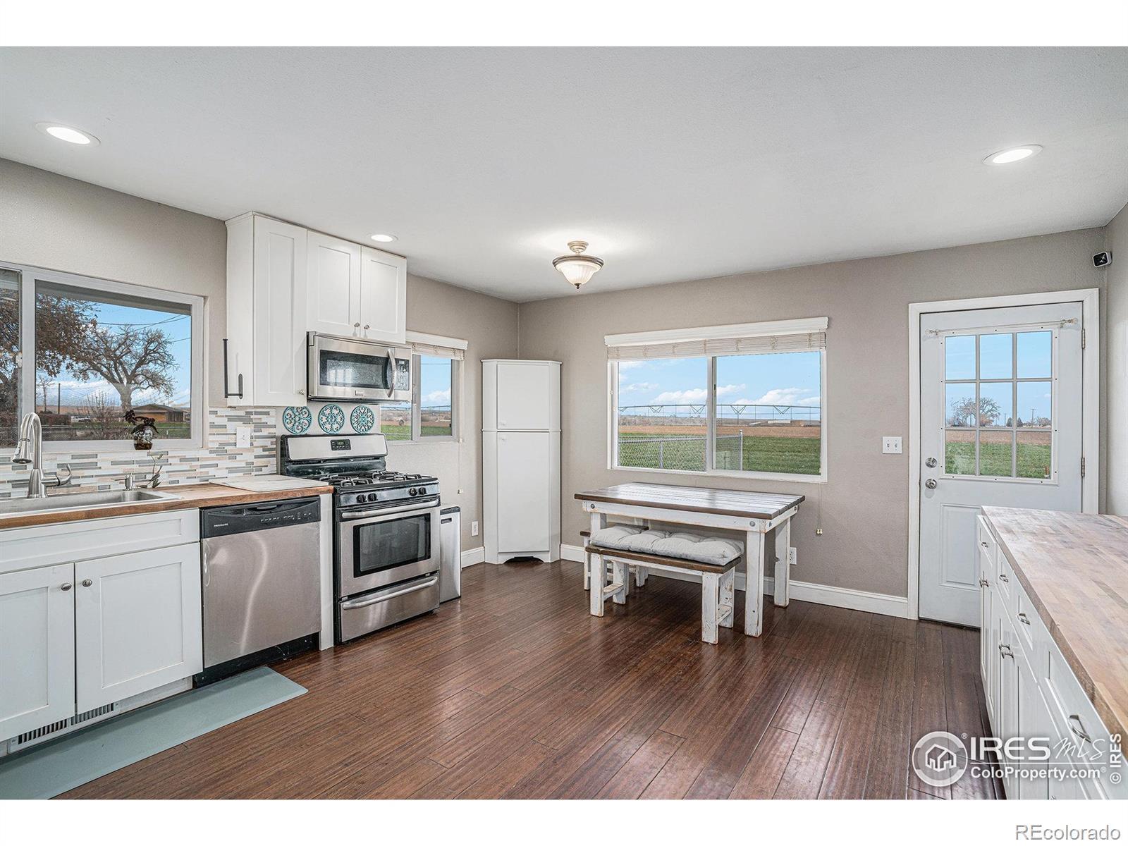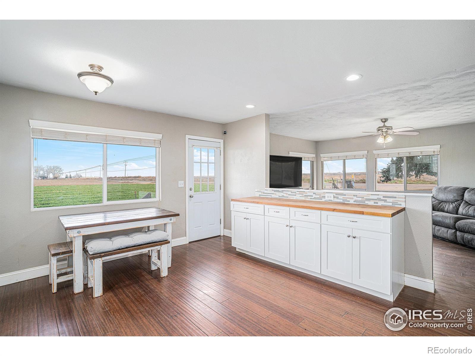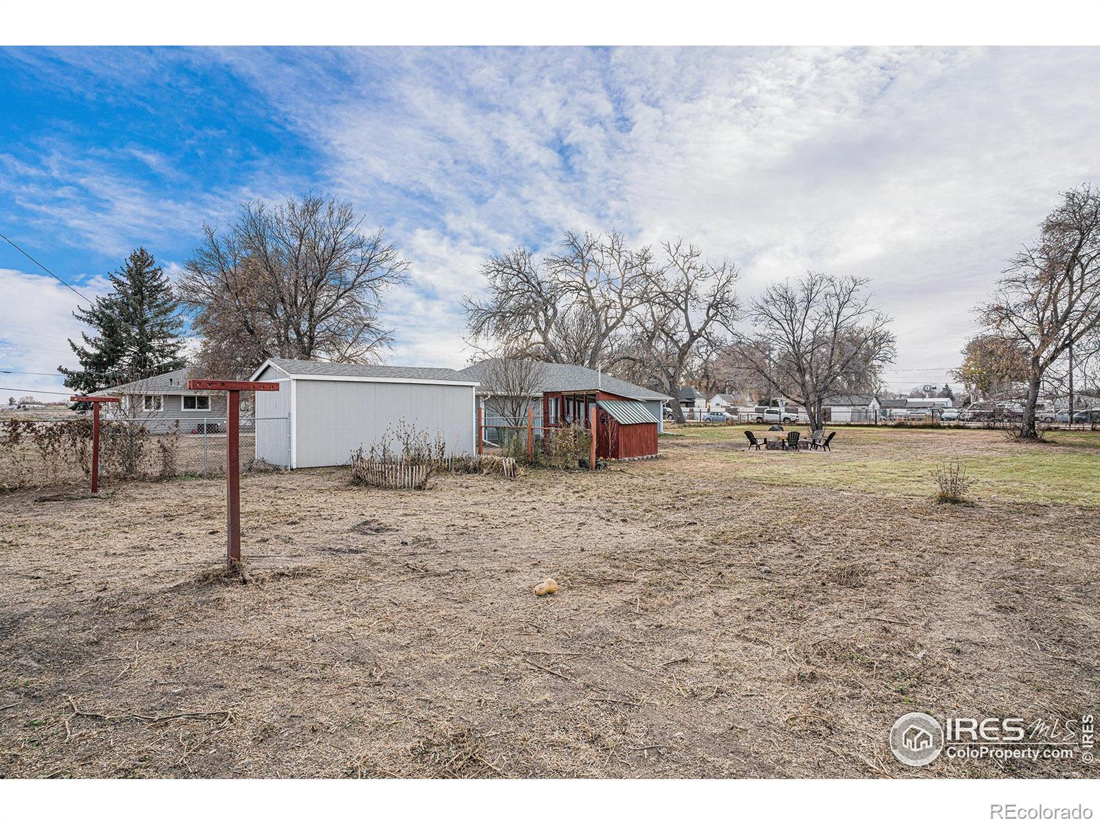 DETACHED HEATED SHOP. Updated ranch on 1.2 acres near historic downtown Johnstown. This well-maintained 3-bedroom, 2-bath home is situated on a quiet 1.2-acre lot with no HOA, offering flexibility for equipment, animals, hobbies, and outdoor use. The property provides both privacy and convenience with close proximity to schools, shopping, and downtown amenities. The home features an updated kitchen with laminate wood-plank flooring, stainless steel appliances, butcher block countertops, tile backsplash, and soft-close white cabinetry. The main living area offers an open layout with abundant natural light. Both bathrooms have modern updates, and the home provides comfortable, functional living throughout. A major highlight of the property is the approximately 1,700 sq. ft. heated detached garage/shop, designed for a wide range of uses. The shop includes epoxy flooring, full insulation, updated wiring, LED lighting, pellet stove heat source, and multiple additional rooms that work well for an office, storage, or hobby space. Exterior features include a spacious front porch, a large back deck overlooking the acreage, a separate storage/garden shed, and a chicken coop that remains with the property. Utility conveniences include city water and natural gas-no propane tank required. The home also benefits from a new roof and gutters installed in 2023. This property offers versatility, significant outbuilding space, and an ideal location near downtown Johnstown-suited for buyers seeking usable acreage with modern updates and excellent shop/garage facilities. May qualify for 100% USDA Financing. Call for details