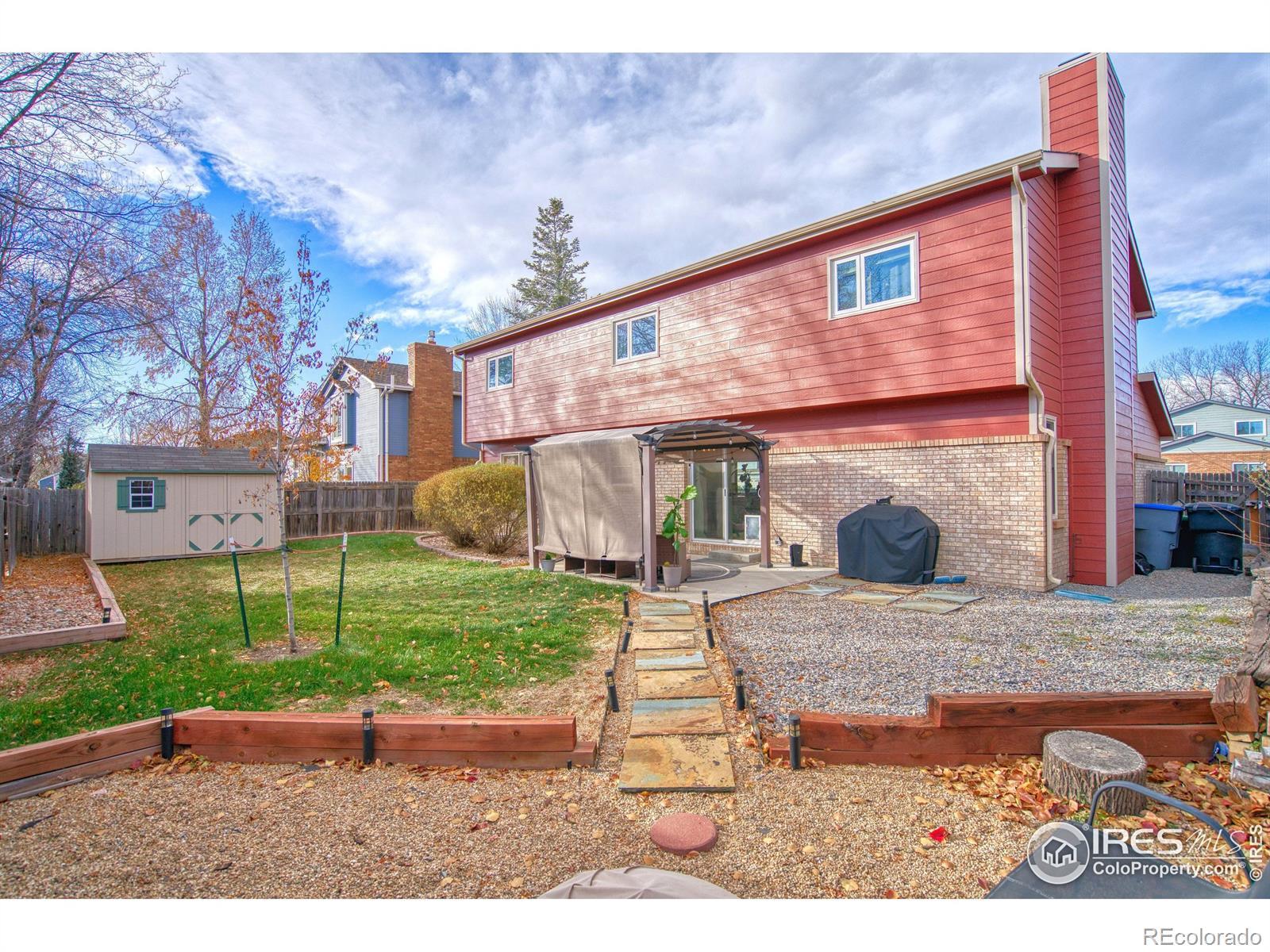 Updated home in highly desirable, established NW Longmont neighborhood. Walking distance to McIntosh Lake which has trails, parks, tennis & paddle boarding. Enjoy mountain views from the primary bedroom! Home is updated with contemporary kitchen, newer finishes, fixtures, flooring & paint. Beautifully updated large kitchen has a pantry, plenty of cabinet space, oversize island, newer cabinets, granite counters & newer appliances. Lots of light in the home with a bay window in the living room & skylights on the vaulted ceiling. Cozy family room off of the kitchen has a gas fireplace. Fully fenced yard has shed, sprinkler system, fire pit area, garden beds & is perfect for pets. Patio has a pergola & is great for grilling. 2 Car garage. No HOA. Most of the furniture including the patio furnishings and grill can be included in the sale. Buyers- get a $1500 concession from the sellers to use as you like! This home is move in ready!