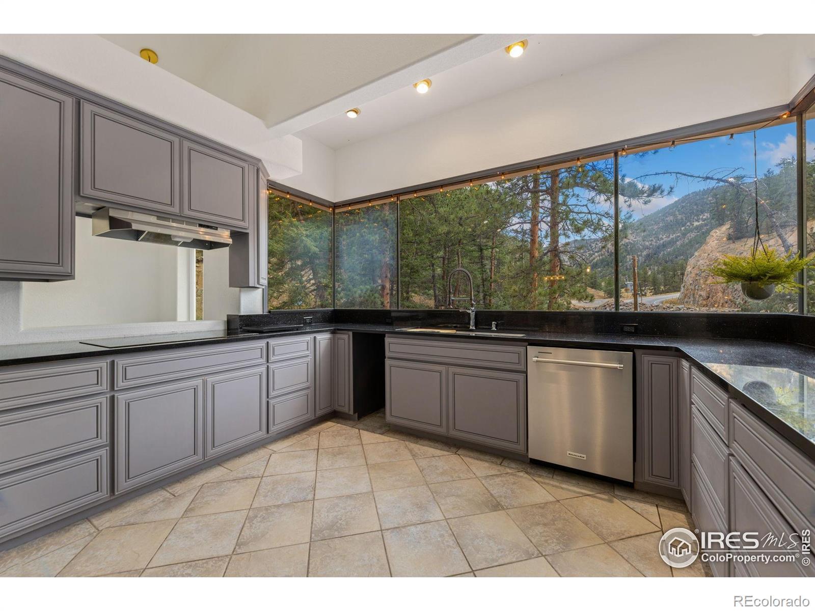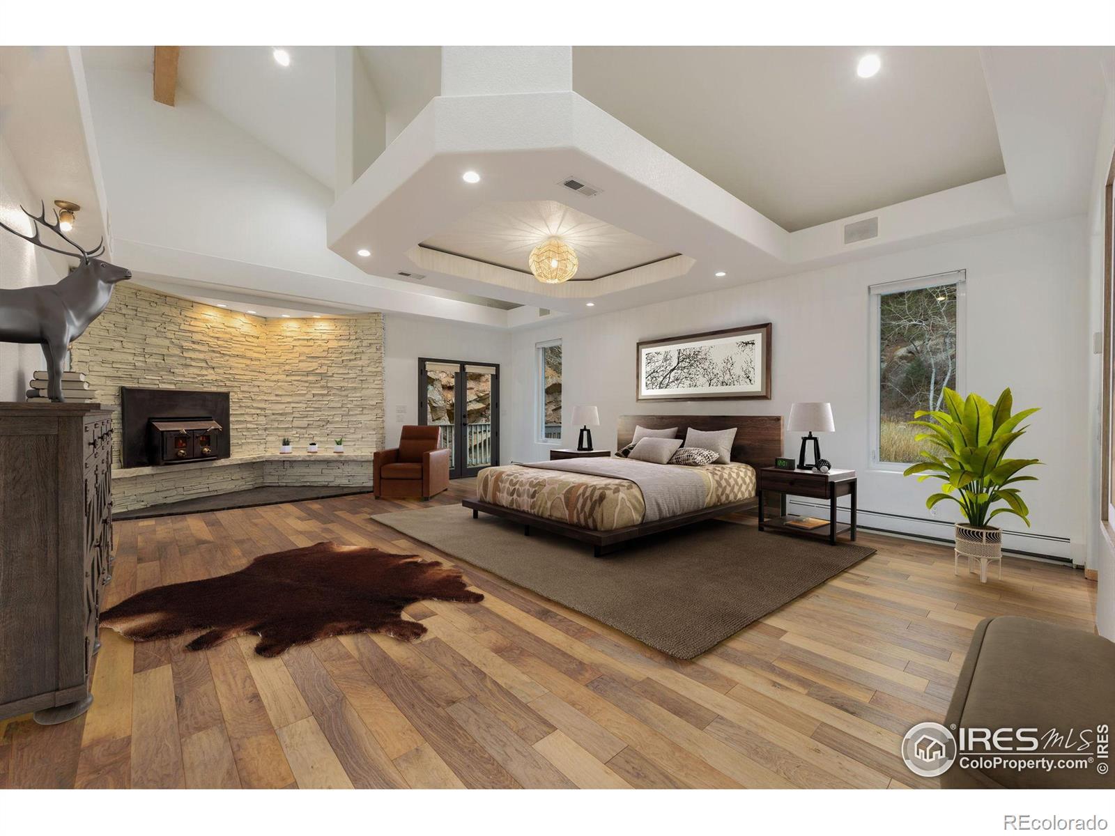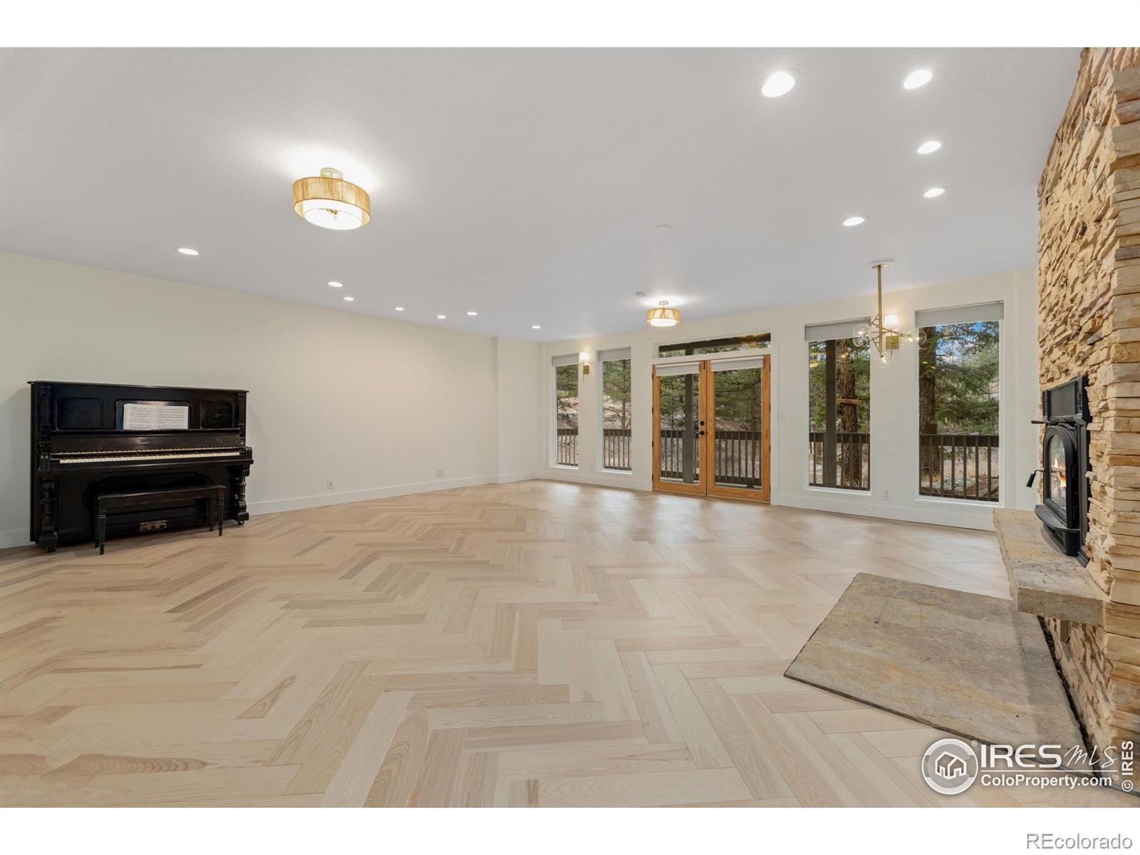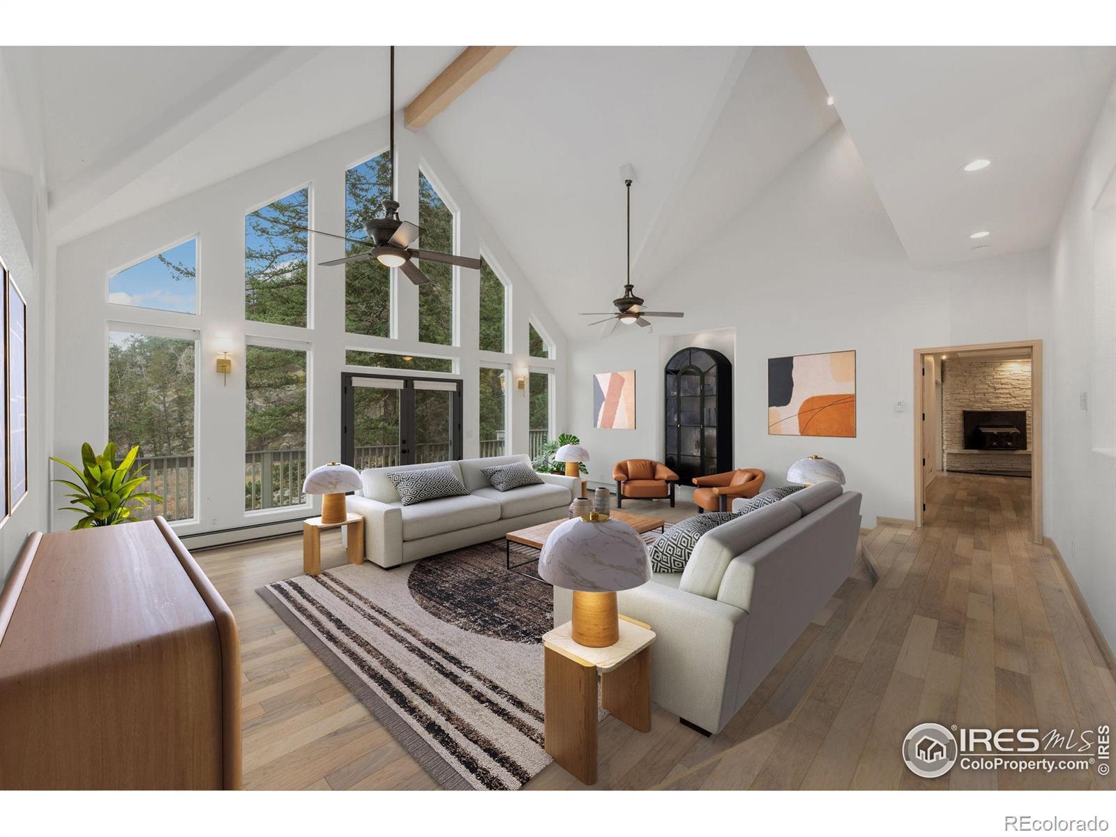 Wake up to the sound of water below and the calm of the trees around you. Set on almost 13 acres above the Little Thompson River, with a seasonal creek winding through the property, this custom home turns everyday life into a true Colorado retreat. Step out onto the decks with your morning coffee, watch birds move through the pines, and enjoy that feeling of being away from it all-without giving up convenience.Inside, the great room welcomes you with soaring ceilings, rich wood floors, and expansive windows that frame rock formations and trees from nearly every angle. The kitchen is a standout: double Wolf ovens, a large built-in GE Monogram series refrigerator and matching full-height freezer, granite countertops, and a wide wall of windows that keep the scenery in view while you cook and entertain. A thoughtfully designed dumbwaiter makes it easy to move groceries and supplies from the entry up to the main level.The primary suite feels like its own getaway, complete with a fireplace, tray ceiling detail, and an attached flex room that works beautifully as a home office, exercise space, studio, or reading room. Additional living areas and a lower level with a second kitchen and guest spaces offer plenty of flexibility for long visits, hobbies, or work-from-home options.Outside, a privacy gate at the entrance opens to a concrete driveway that crosses a custom stone bridge over the creek and leads up to the home. On nearly 13 acres, you'll find multiple wraparound decks, a pergola-lit outdoor dining area, a treehouse, and a tucked-away gathering spot above the home that's ideal for a fire pit and stargazing with friends.When you're ready to head out, you're about 1.6 miles from Pinewood Springs, 9.3 miles to Lyons, and just over 11 miles to Estes Park, giving you easy access to Front Range conveniences, local restaurants, and the gateway to Rocky Mountain National Park.