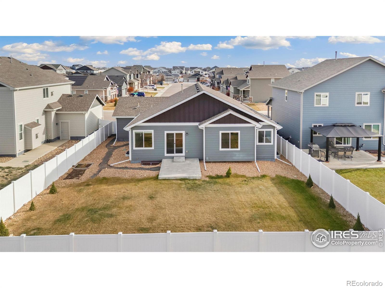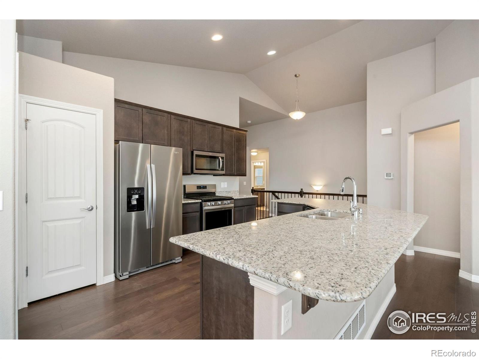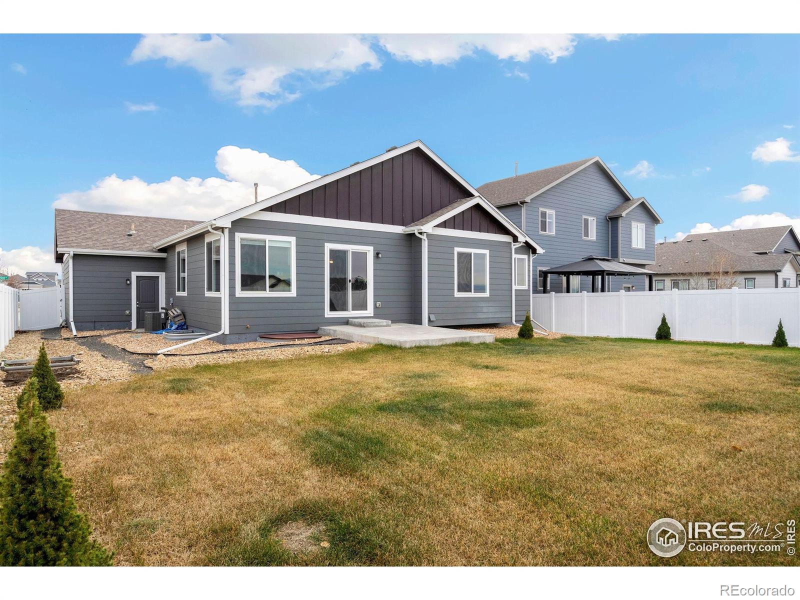 Beautifully designed ranch home the offers comfort, style, and convenience in all the right ways. This home enjoys a prime setting backing to a serene greenbelt, giving you added privacy, open space, and a natural backdrop that feels calm and inviting all year long. Step inside into a welcoming foyer that leads straight into the sun-filled main living area that features vaulted ceilings and engineered hardwood flooring throughout. The living, dining, and kitchen areas come together in one seamless layout, creating a bright gathering space that's perfect for relaxing, hosting, or simply just everyday living. The kitchen includes stainless steel appliances, granite countertops, and a center island with generous prep space for whipping up your favorite meals. Three bedrooms sit on the main floor, including a spacious primary suite featuring a 5-piece ensuite bathroom and a walk-in closet. The finished basement expands your living options even more. The large entertainment area can easily host movie nights, game days, fitness gear, or hobby spaces, while two additional bedrooms provide extra flexibility for guests or future customization. Outside, the fenced backyard adds another layer of Colorado living at its finest. A concrete patio offers a great hangout spot that is perfect for enjoying the fresh air and stunning Front Range views, complete with snow-capped mountains in the winter months. The 3-car garage and wide driveway provide all the space you need for vehicles, outdoor gear, or workshop projects. Convenience is always within reach, with a community park just minutes away and easy access to shopping and dining in Fort Collins, Timnath, and Windsor.