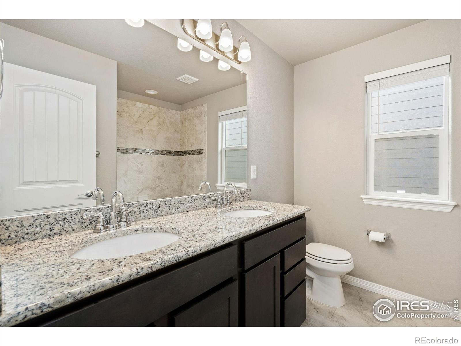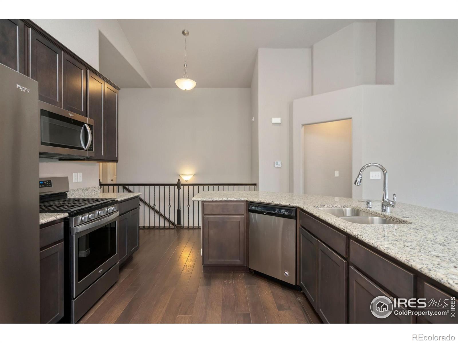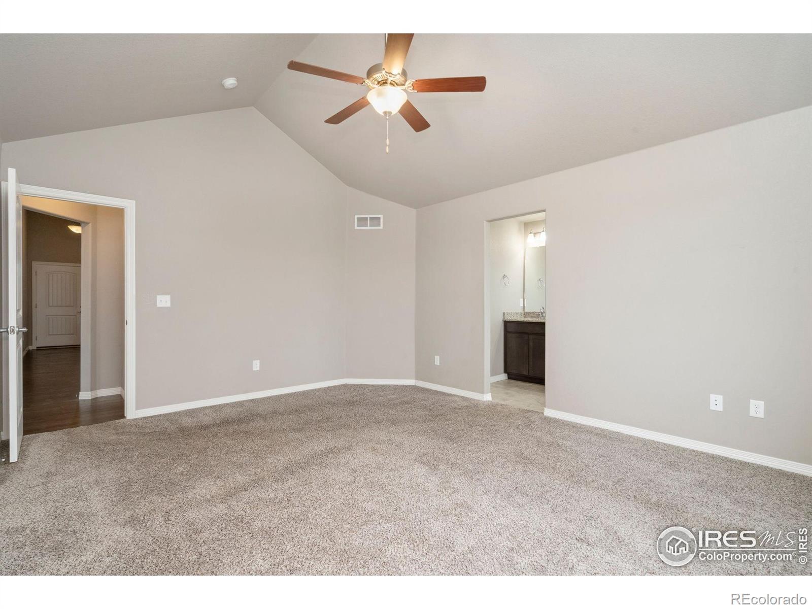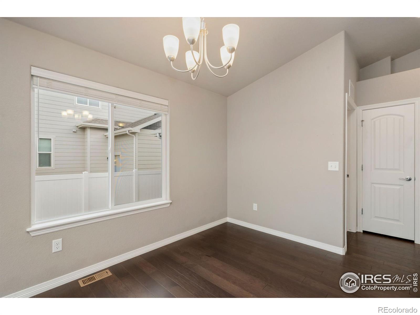 Beautifully designed ranch home the offers comfort, style, and convenience in all the right ways. This home enjoys a prime setting backing to a serene greenbelt, giving you added privacy, open space, and a natural backdrop that feels calm and inviting all year long. Step inside into a welcoming foyer that leads straight into the sun-filled main living area that features vaulted ceilings and engineered hardwood flooring throughout. The living, dining, and kitchen areas come together in one seamless layout, creating a bright gathering space that's perfect for relaxing, hosting, or simply just everyday living. The kitchen includes stainless steel appliances, granite countertops, and a center island with generous prep space for whipping up your favorite meals. Three bedrooms sit on the main floor, including a spacious primary suite featuring a 5-piece ensuite bathroom and a walk-in closet. The finished basement expands your living options even more. The large entertainment area can easily host movie nights, game days, fitness gear, or hobby spaces, while two additional bedrooms provide extra flexibility for guests or future customization. Outside, the fenced backyard adds another layer of Colorado living at its finest. A concrete patio offers a great hangout spot that is perfect for enjoying the fresh air and stunning Front Range views, complete with snow-capped mountains in the winter months. The 3-car garage and wide driveway provide all the space you need for vehicles, outdoor gear, or workshop projects. Convenience is always within reach, with a community park just minutes away and easy access to shopping and dining in Fort Collins, Timnath, and Windsor.