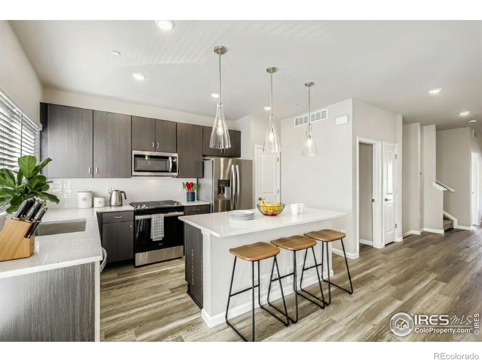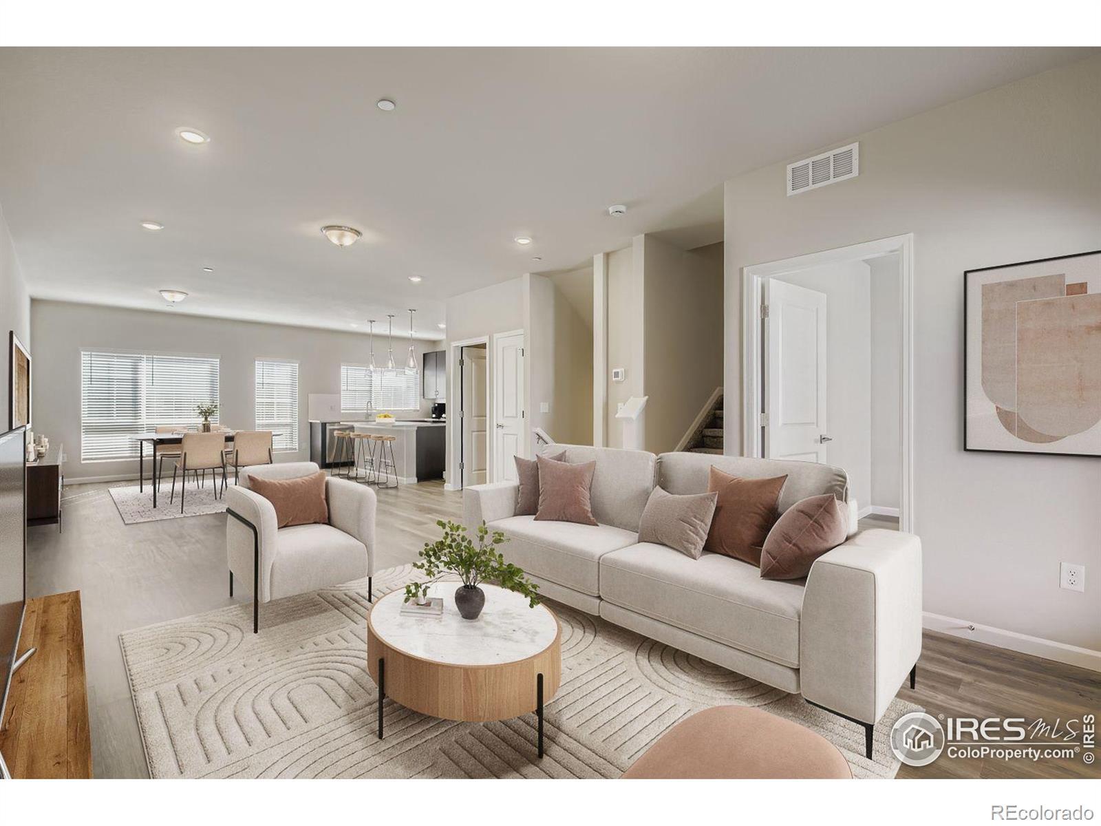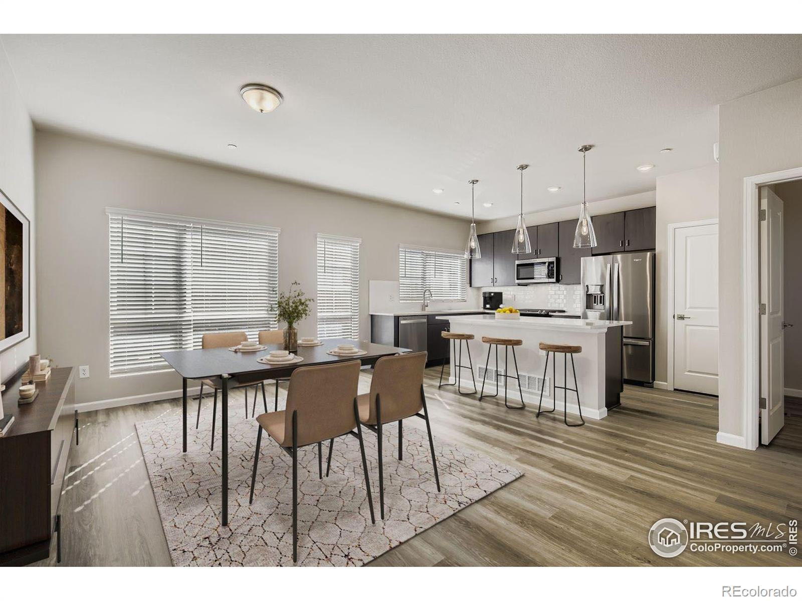 Welcome to a beautifully crafted Northfield townhome that feels instantly comforting the moment you step inside. Sunlight pours through thoughtfully placed windows, illuminating an open-concept living space designed for connection - whether you're hosting friends around the oversized kitchen island or enjoying a quiet morning coffee in the soft glow of the office. The modern kitchen shines with sleek soft-close cabinetry and stainless-steel finishes, setting the tone for effortless everyday living. Upstairs, the primary suite becomes your personal retreat, complete with a spa-inspired bathroom that invites you to unwind. Every corner of the home has been shaped with intention, from the convenient upper-level laundry to the peaceful private patio perfect for evening air and unhurried moments. With access to Northfield's resort-style amenities - a sparkling pool, a fitness center, a clubhouse, and miles of scenic paths - this home offers not just a place to live, but a lifestyle to love. All of it wrapped in the ease of energy-efficient systems, a two-car garage, and a location close to Old Town, CSU, breweries, and trails. This is where modern design meets true Fort Collins living.