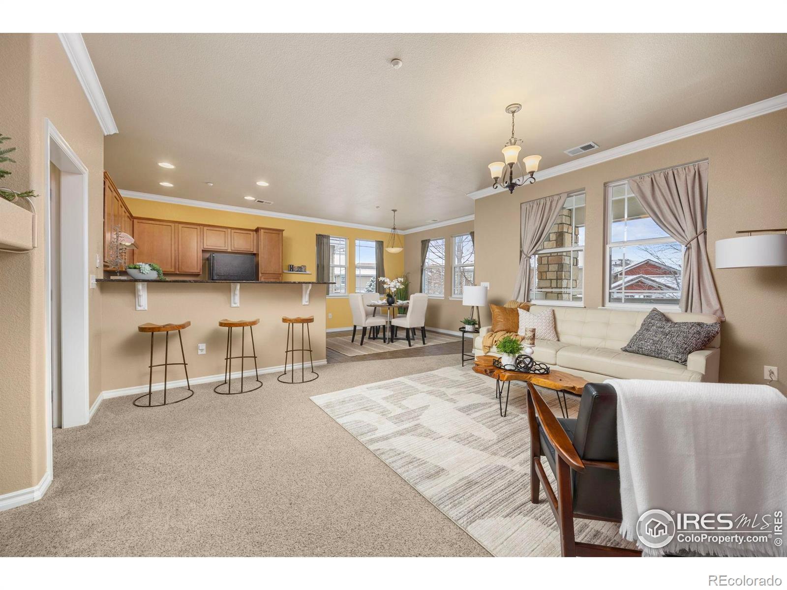 This terrific, well maintained condo is MOVE IN READY & located in the sought after BROADLANDS GOLF COMMUNITY. Desirable HOA inclusions are many-in addition to Insurance, the roof, patio, exterior & snow removal are MAINTAINED BY THE HOA! This 2nd level condo feels like a ranch home. You'll admire the open layout from the living room to the kitchen & dining area. The kitchen, designed w SLAB GRANITE counters, has plenty of countertops & MAPLE cabinets and looks out to the dining area & living room. Enjoy coffee on the covered deck - your private exterior living space. Down the hallway are your 2 SPACIOUS bedrooms w/ own bathroom and large laundry room. OTHER UNIQUE DESIGNS - custom built in shelves, study alcove, crown molding in main living areas, 2 CAR attached garage for security n safety & a gorgeous entrance courtyard with fountain. Windows look in all 4 directions. 3545 Molly Cir has a SPECIAL, CHARMING FEEL in a quiet location. Easy access to walking paths, outdoor swimming pool & parks. Safeway & other retail stores are walking distance on other side of Lowell. More shopping just 10 min away-lg King Soopers, Costco, Target & Top Golf PLUS the Orchard Town Center & a Premium Outlet Mall. HIGHLY RATED SCHOOLS are a 10 min drive - Coyote Ridge Elem, Westlake middle school & Legacy HS - Holy Family is 5 min away. Near C-470 & I-25. 30 min to Denver & 25 min to Boulder. See Documents Tab for more info per Seller.