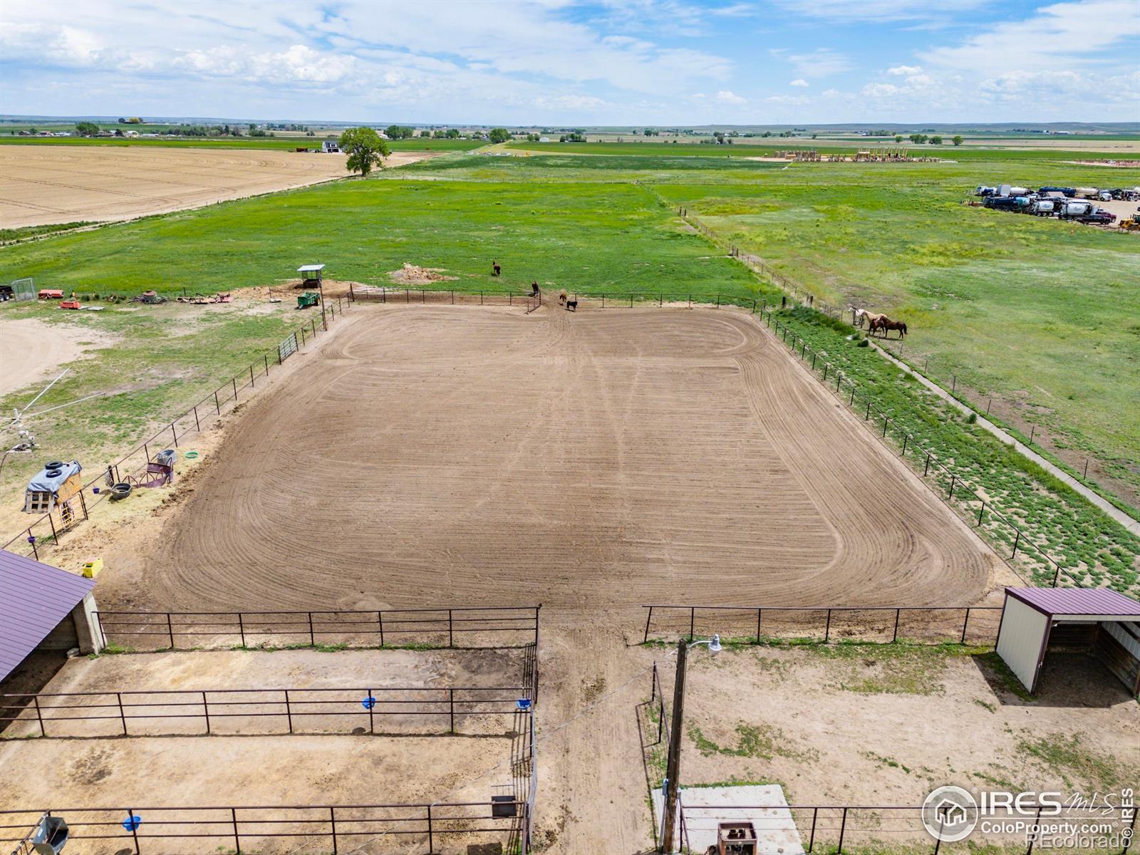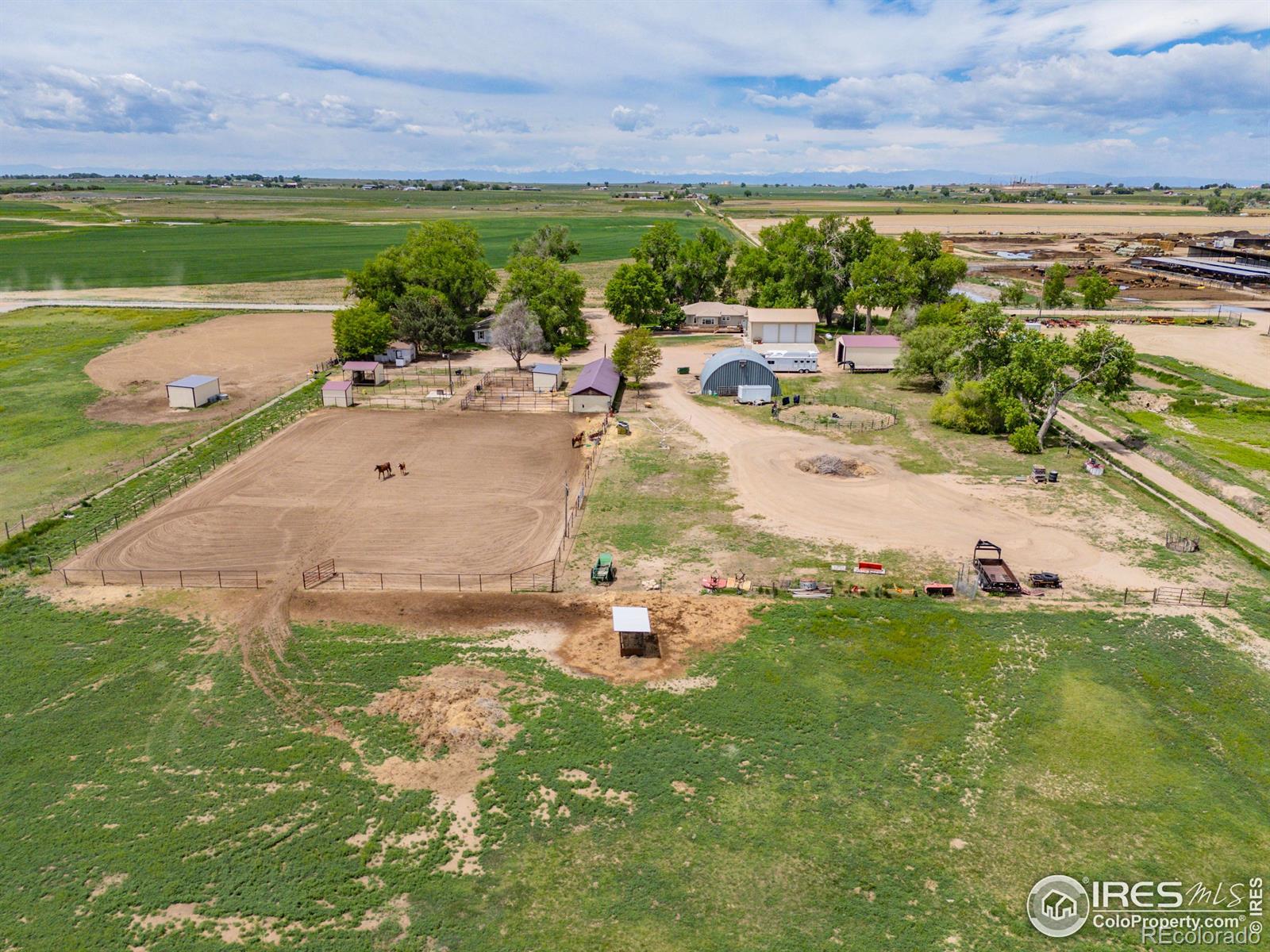Something for the entire family to enjoy! Incredible 9.77-acre horse property with lush mature landscaping just minutes from Kersey, located in the highly desirable Platte Valley School District. Fully fenced and ideal for multi-generational living or income potential, this unique property offers two move-in-ready homes. The Larger home is 2672 square feet, a split level with 4 bedroom, 3 1/2 Baths, house has been freshly painted and new carpet has been installed. The secondary home is a 2,048 sq ft ranch-style with 3 beds, 3 baths, updated chefs kitchen with stainless steel appliances, and a private hot tub. Equestrian amenities include a 6-acre pasture, outdoor riding arena, horse runs with shelters and automatic waterers, and a converted dairy barn that serves as a tack room and additional shelter. The dedicated hay barn provides ample covered storage. The property includes Milton Reservoir irrigation rights and Bailey Ditch carrying rights, with potential to irrigate the pasture with some improvements. Additional features: a 1200 sqft oversized 3-bay garage, 1520 sqft Quonset hut shop, and multiple outbuildings-ideal for horses, livestock, or hobby farming. Just a short drive to Kersey, Greeley, Denver and DIA, this is true Colorado country living with space, comfort, and versatility.