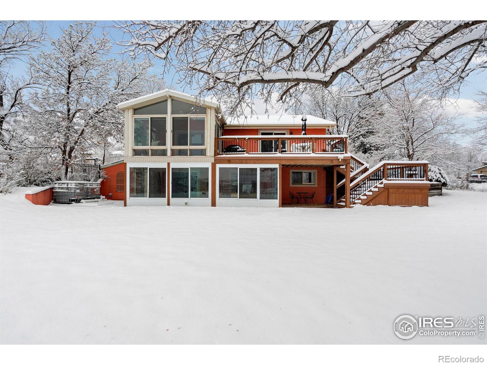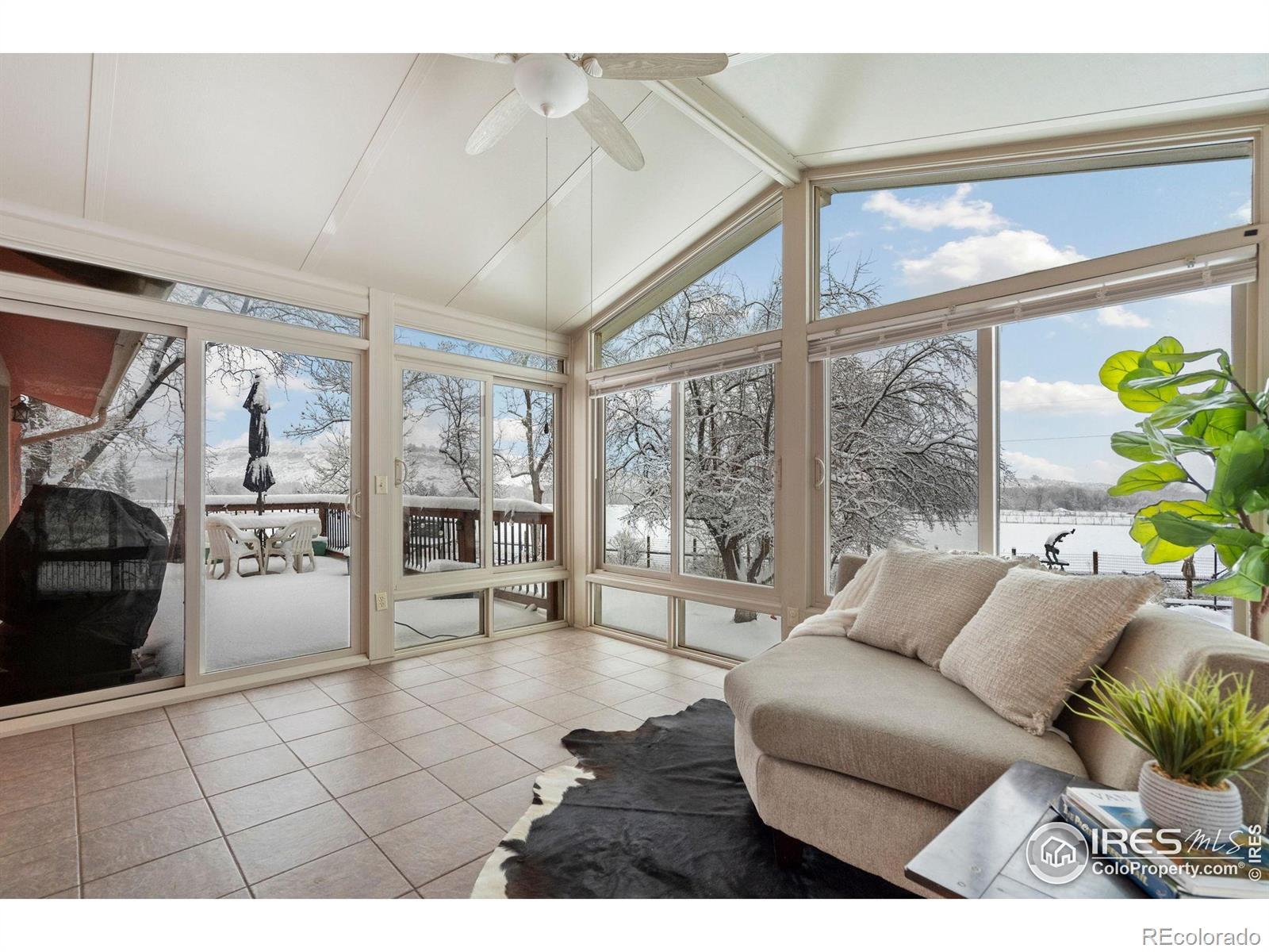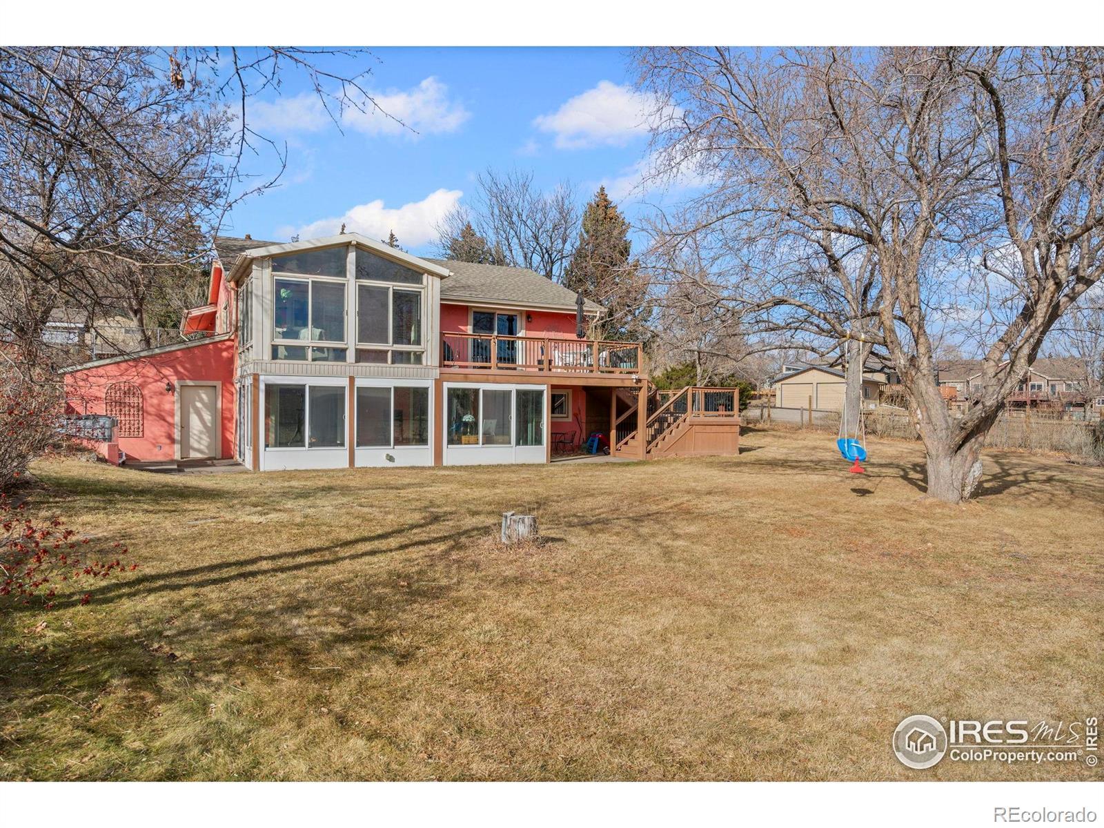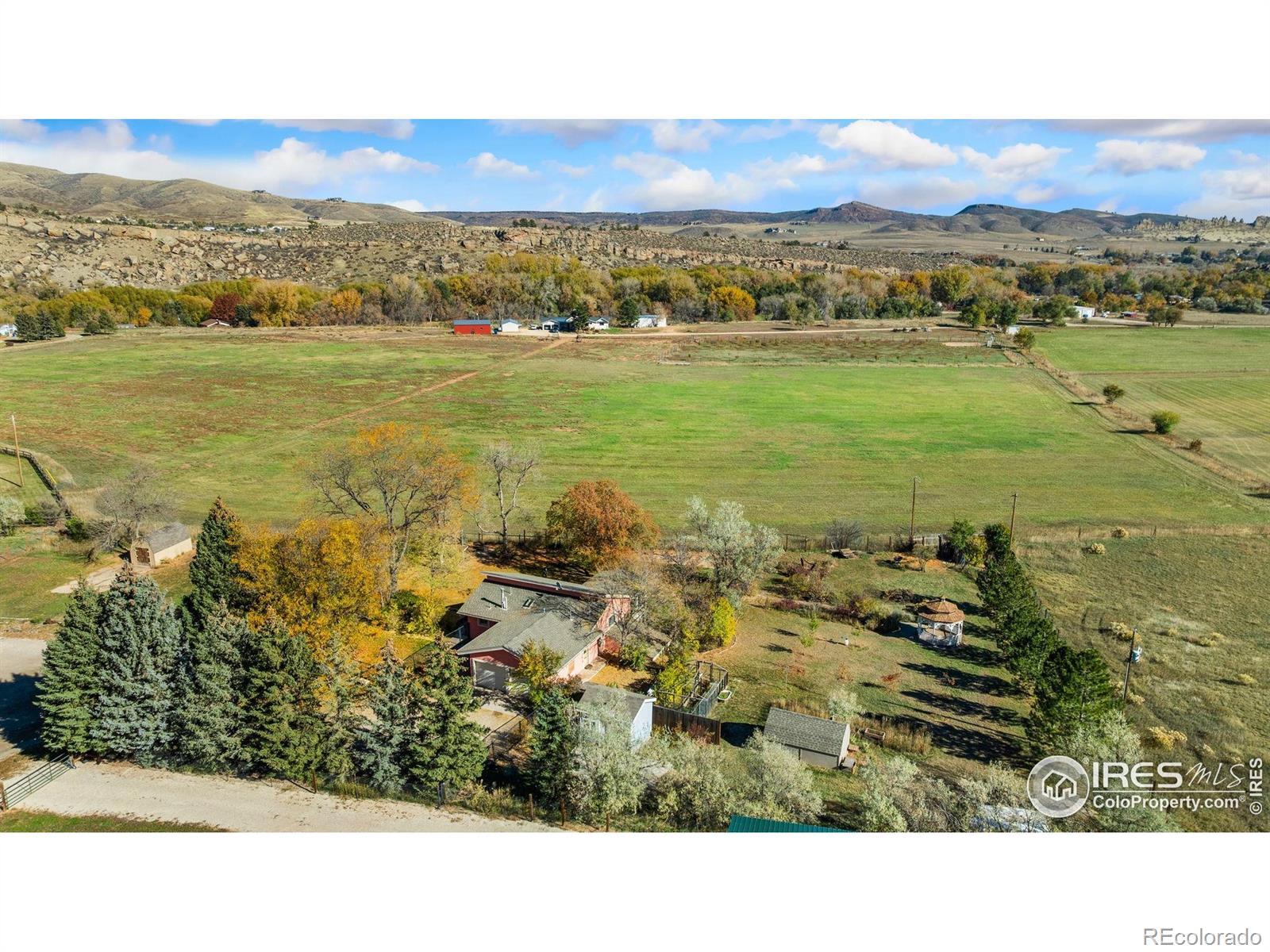 Welcome to a home where Colorado's natural beauty takes center stage. Perched on nearly an acre and surrounded by open pastures, this property offers a rare blend of privacy, quiet, and panoramic foothills views. Every west-facing living space was intentionally designed to capture the dramatic silhouette of Devil's Backbone your daily backdrop from sunrise to sunset. The main level flows with warm hardwood floors and an airy layout that connects the living, dining, and upgraded kitchen. Granite counters, a mosaic backsplash, stainless steel appliances, and newly refreshed cabinetry bring both style and functionality to the heart of the home.Retreat to either level and find thoughtfully updated bathrooms with designer selections. The walkout primary suite is its own haven with a private enclosed sunroom, your personal escape for morning coffee, plant sanctuary, or soaking in the sculpture garden and gazebo just outside. With 436 square feet of additional sunroom space not included in the official square footage, you gain two bright, flexible spaces perfect for relaxing, hobbies, dining, or year-round enjoyment.This is more than a home, it's a serene lifestyle framed by some of the most iconic views Northern Colorado offers.