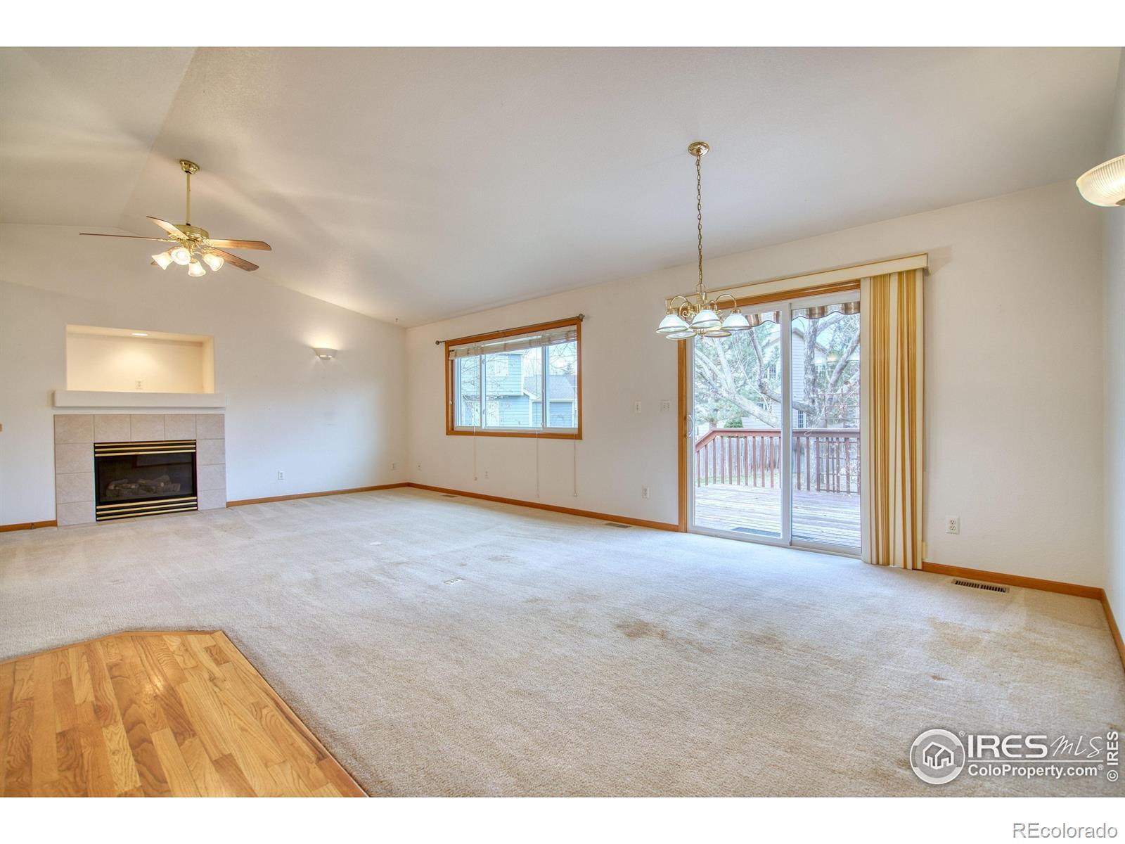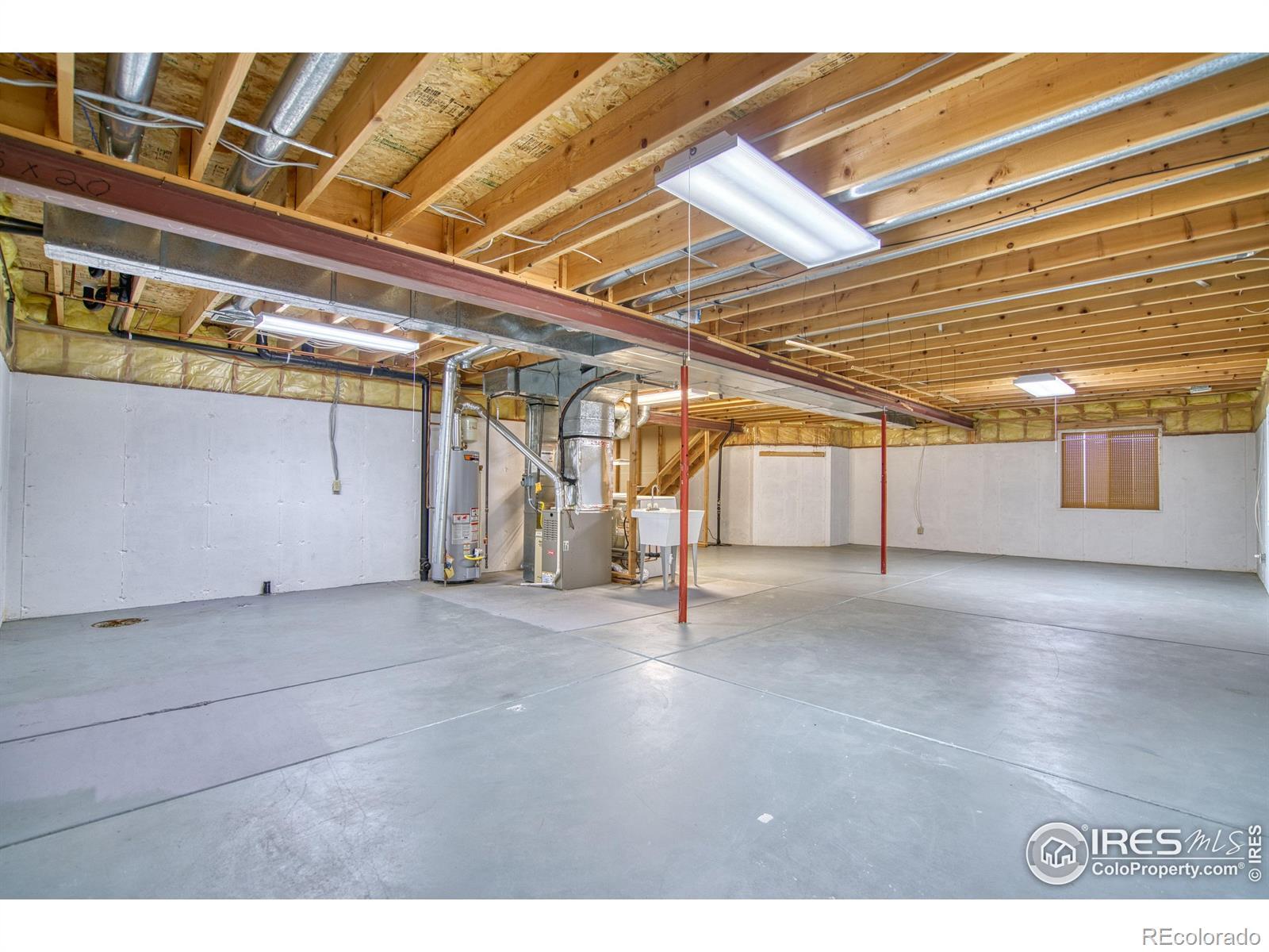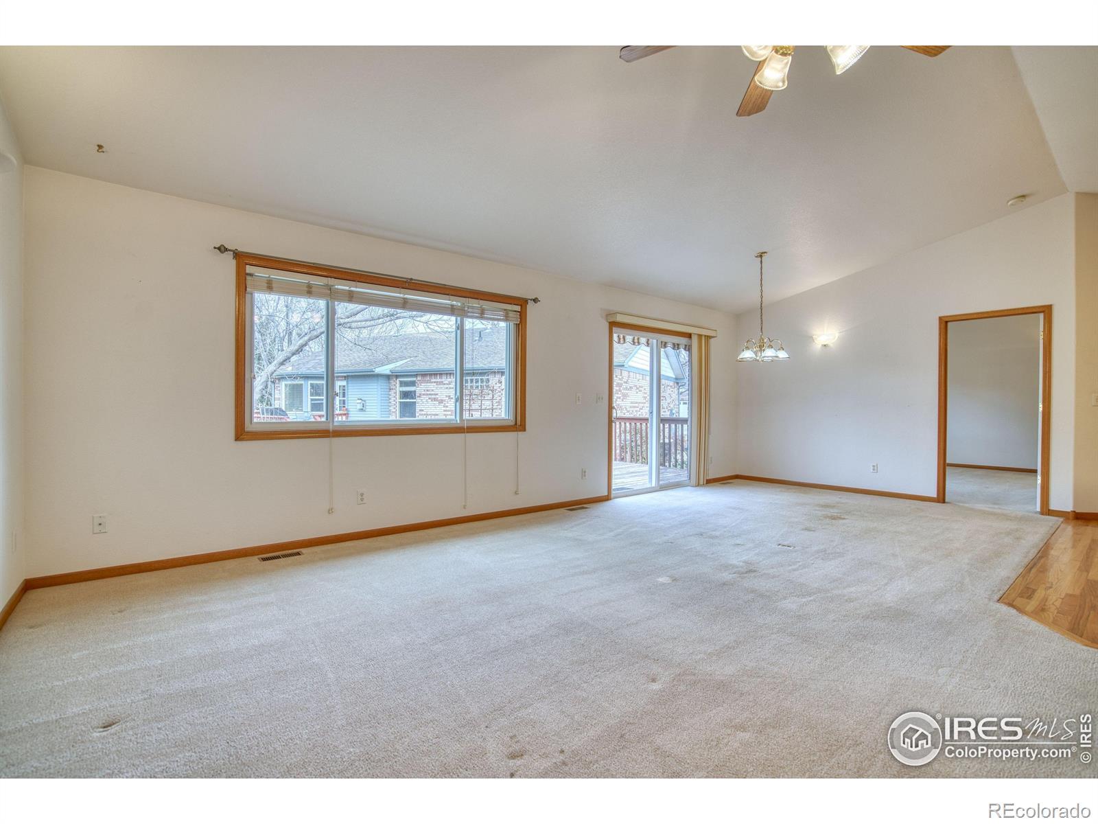Welcome to this charming all brick ranch home tucked away on a quiet cul-de-sac in one of Loveland's most desirable neighborhoods! This spacious residence offers an inviting open-concept living area highlighted by abundant natural light, soaring cathedral ceilings and a comfortable layout. Generous great room presents a gas fireplace for cozy evenings & art niche with lighting. Kitchen features wood flooring, generous cabinet storage, pantry (with pull-outs) & counter space, a snack bar for additional stool seating and dining room with access to deck for everyday living or entertaining. Generous primary suite provides a peaceful retreat with a 5-piece bath and walk-in closet. Bedroom 2 is located at the front of the home and offers flexibility for guests, work-from-home space or hobbies. Linen closet/additional laundry closet for stackable washer & dryer & 3/4 bath are nearby. Unfinished full basement is huge and is ready to finish with additional bedrooms, bath, recreation space, workshop or for storage. Laundry with tub sink & utility room are here. Newer furnace, A/C & water heater. Oversized 2-car garage has a side service door & workbench. Enjoy Colorado's beautiful weather from the backyard, complete with mature landscaping (maintained by the HOA), and a deck for outdoor dining. Visitor parking is nearby. With its close proximity to Boyd Lake for water activities, parks, walking/biking trails, shopping, and top-rated schools, this home combines comfort, convenience and appeal. Don't miss the opportunity to make this property your own! Quick closing possible!