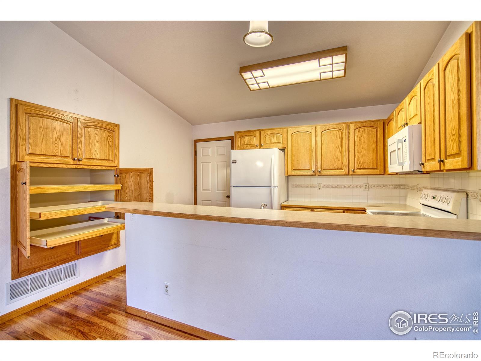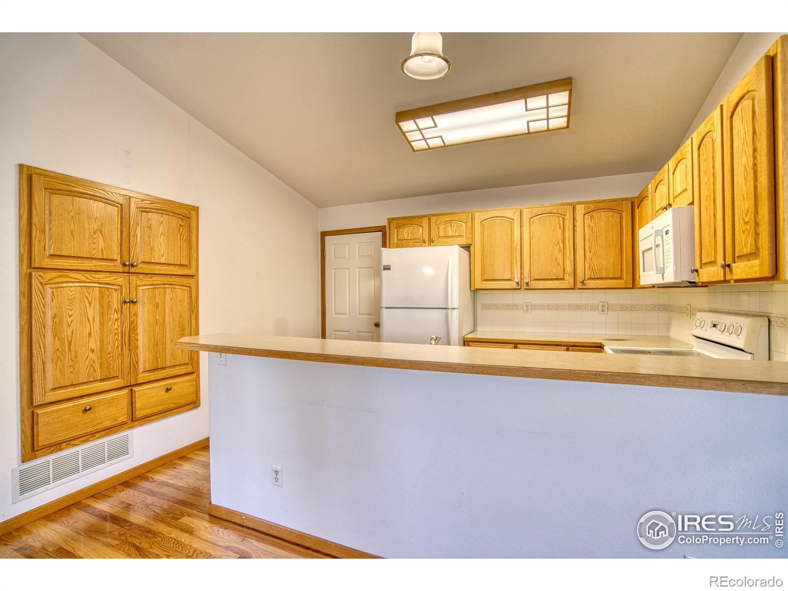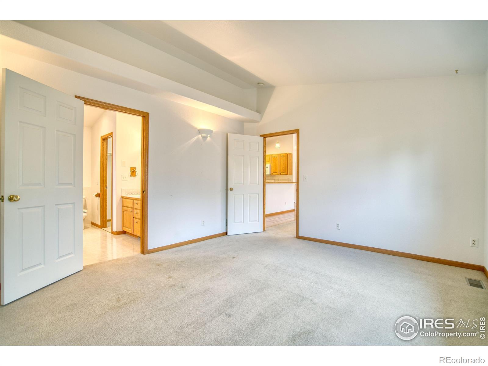 Welcome to this charming all brick ranch home tucked away on a quiet cul-de-sac in one of Loveland's most desirable neighborhoods! This spacious residence offers an inviting open-concept living area highlighted by abundant natural light, soaring cathedral ceilings and a comfortable layout. Generous great room presents a gas fireplace for cozy evenings & art niche with lighting. Kitchen features wood flooring, generous cabinet storage, pantry (with pull-outs) & counter space, a snack bar for additional stool seating and dining room with access to deck for everyday living or entertaining. Generous primary suite provides a peaceful retreat with a 5-piece bath and walk-in closet. Bedroom 2 is located at the front of the home and offers flexibility for guests, work-from-home space or hobbies. Linen closet/additional laundry closet for stackable washer & dryer & 3/4 bath are nearby. Unfinished full basement is huge and is ready to finish with additional bedrooms, bath, recreation space, workshop or for storage. Laundry with tub sink & utility room are here. Newer furnace, A/C & water heater. Oversized 2-car garage has a side service door & workbench. Enjoy Colorado's beautiful weather from the backyard, complete with mature landscaping (maintained by the HOA), and a deck for outdoor dining. Visitor parking is nearby. With its close proximity to Boyd Lake for water activities, parks, walking/biking trails, shopping, and top-rated schools, this home combines comfort, convenience and appeal. Don't miss the opportunity to make this property your own! Quick closing possible!