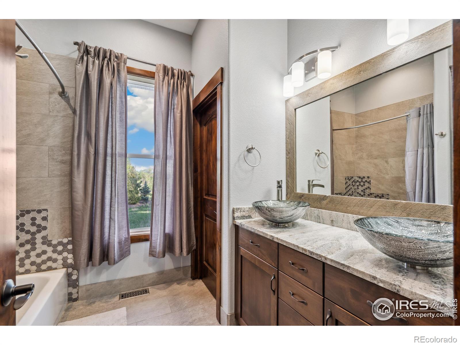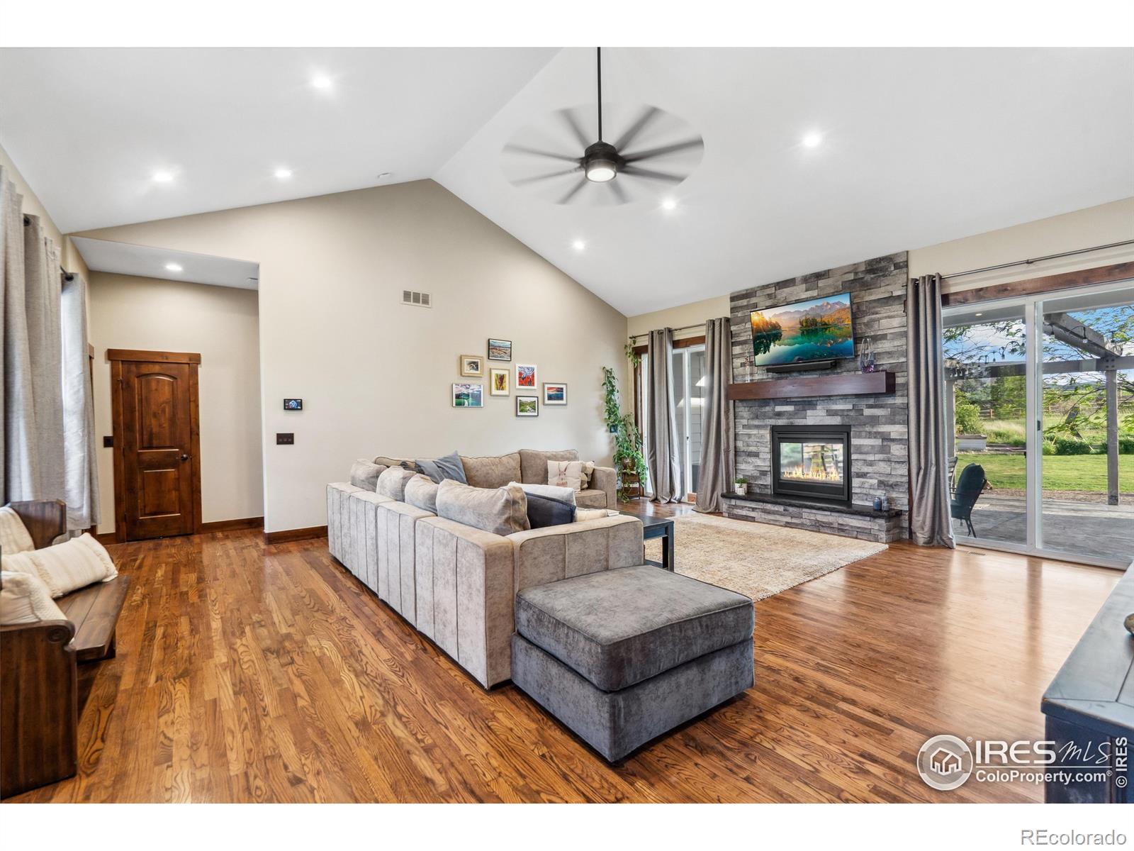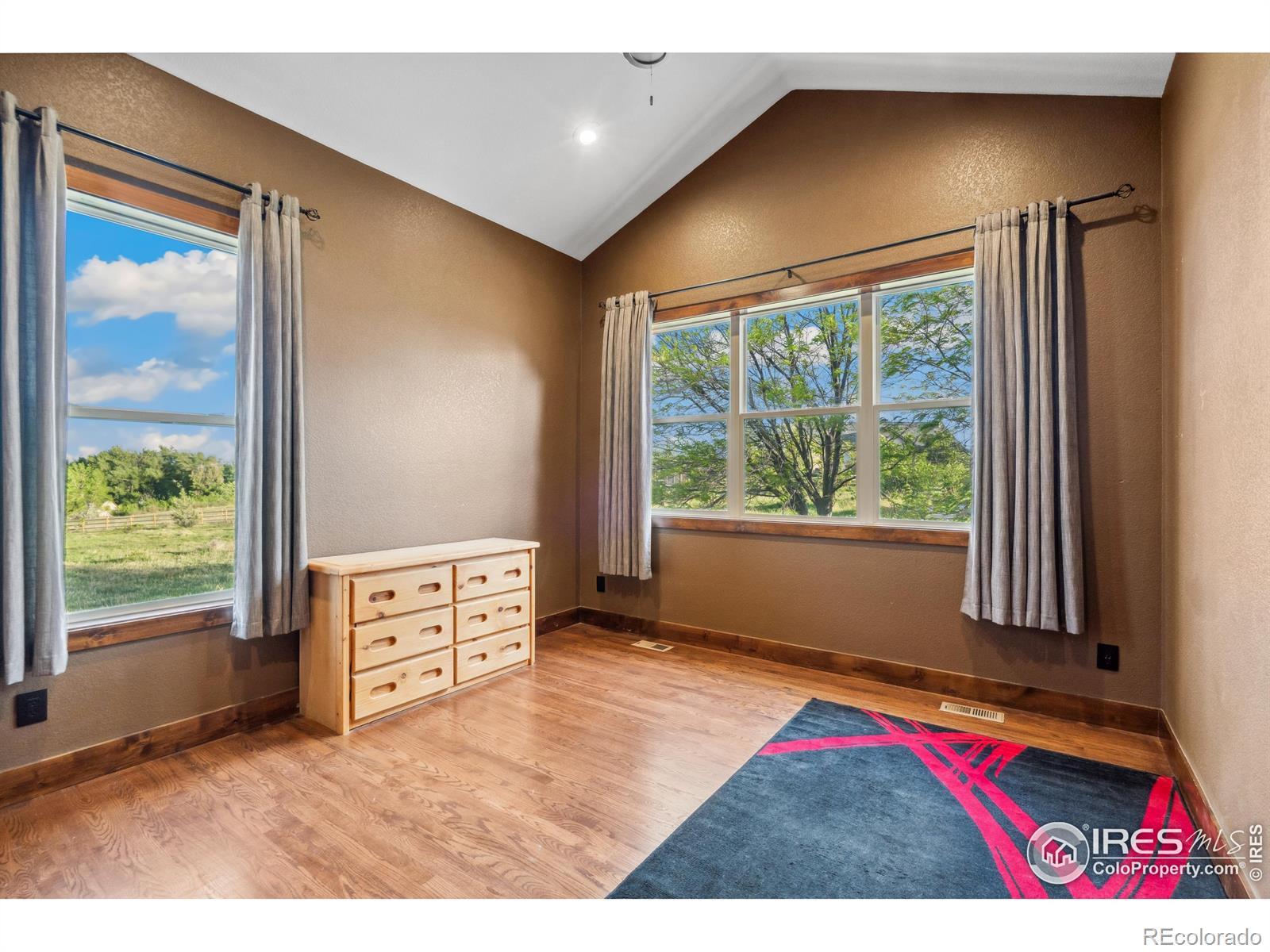 UNDER CONTRACT. HORSE ZONES property on 2.92 acres. This 3,754 finished square foot ranch style home is a one of a kind with outdoor space to fit all your gardening, animal, and entertainment needs, as well as a spacious home to accommodate all your family's activities. You will appreciate the openness of the floor plan and the attention to detail put into the updates in every room, including the basement and then outdoor space design. The basement features a large family/rec room, two bedrooms separated by a Jack and Jill bathroom, and a home theater. The main floor you will find the master suite with a large walk-in closet and a 5-piece master bath. Also on the main floor, you will find two more bedrooms, laundry room, living room with a gas fireplace (double sided), dining room and a breakfast nook. The living room has a double-sided gas fireplace which shares the stamped concrete patio space. Other highlights to this well design property are, attached finished 3 bay car garage, steam humidifier, 200Amp and tankless water heater. This home is indeed for everyone looking for a blend of comfort, style, and functionality, with ample space for for all your two legs and 4 legs family members. The location also offers a variety of pluses to this home. It is only 17 miles to Colorado State University, 25 miles to Estes Park, an hour to Denver International and 16 miles to Loveland Regional Airport. For those who travel or have family out of state coming in to visit, Loveland reginal Airport offers shuttles every hour to and from Denver international. Travel couldn't be any easier! The school district is also a plus here. The property is not set for horses, giving you a clean slate to design your one horse set up needs or just keep as it is and enjoy the privacy this almost 3 acres lot can offer. Buyers to verify all information.