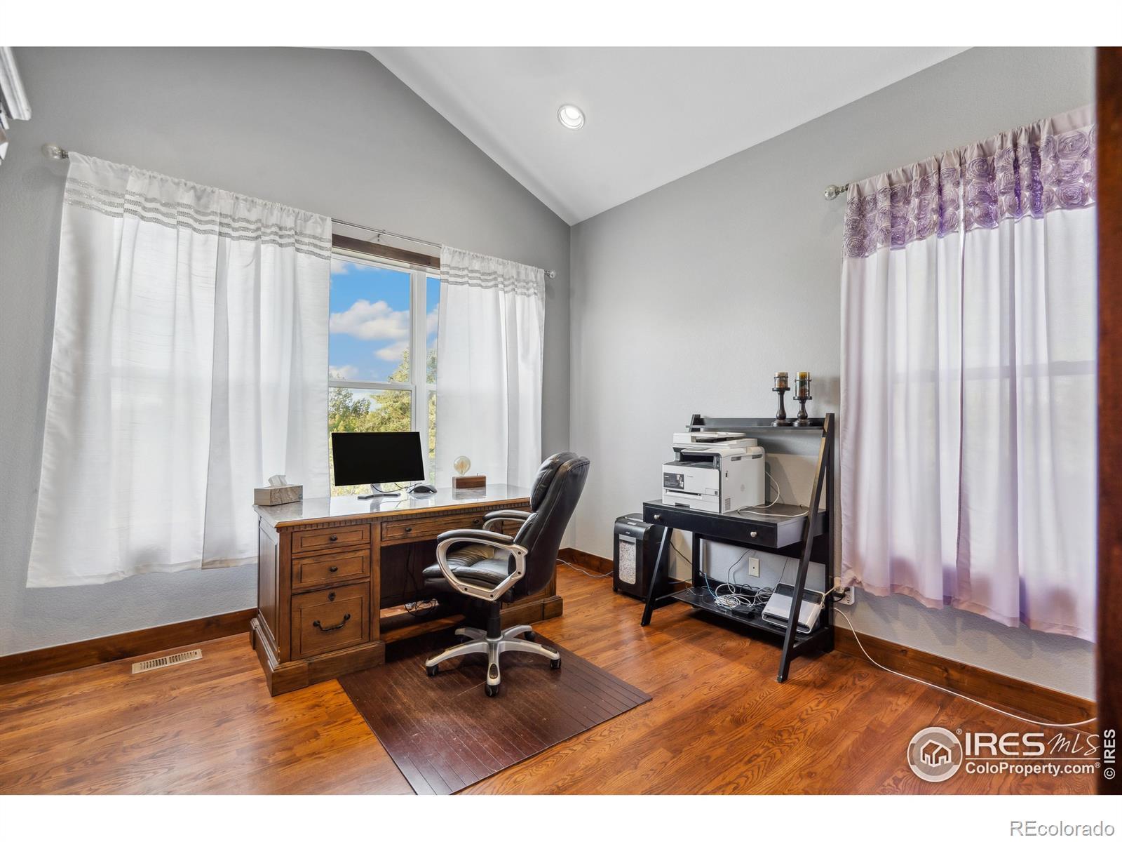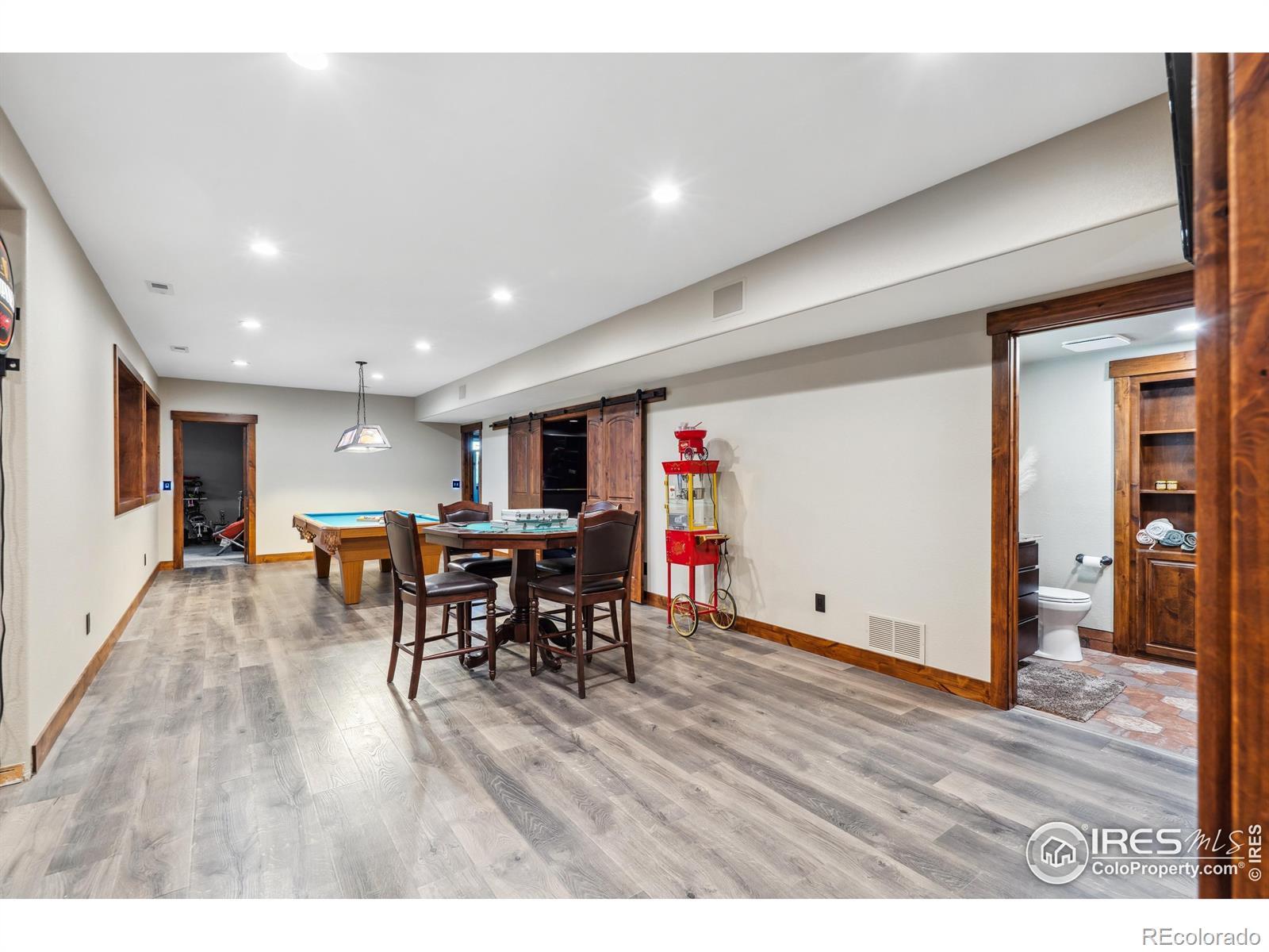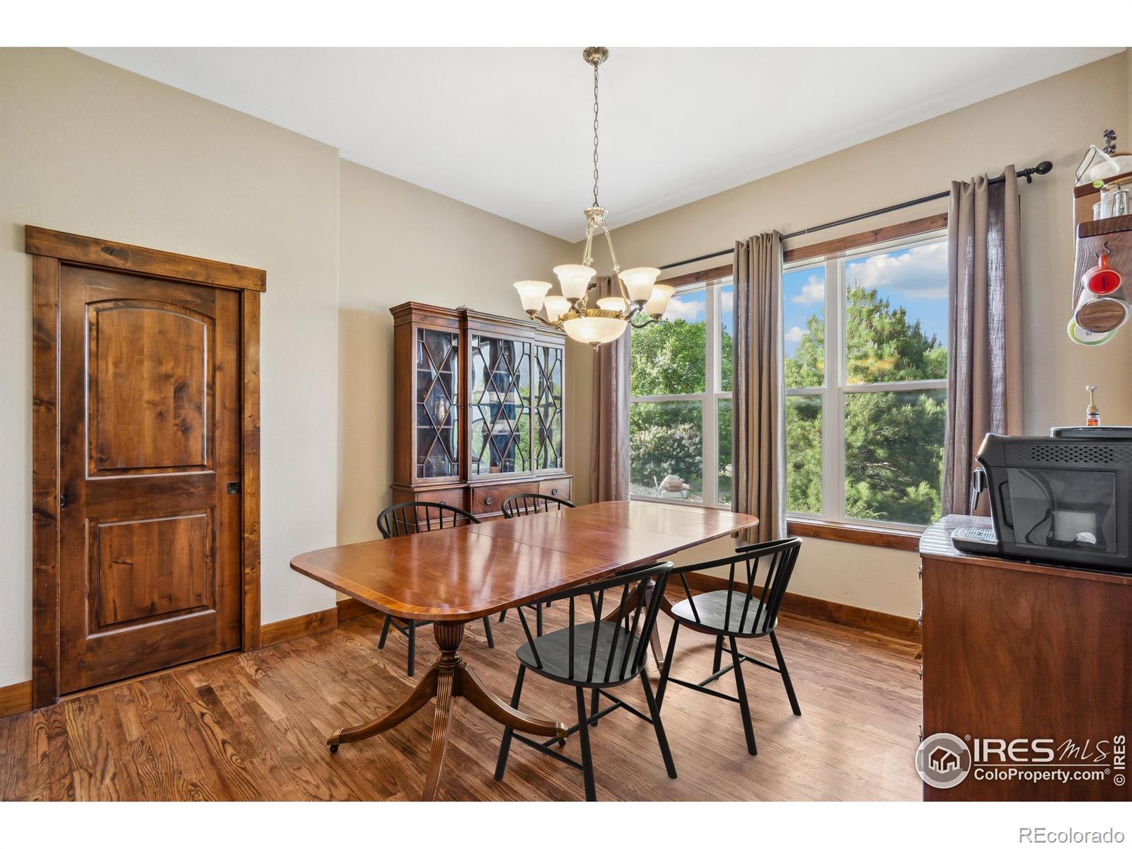 UNDER CONTRACT. HORSE ZONES property on 2.92 acres. This 3,754 finished square foot ranch style home is a one of a kind with outdoor space to fit all your gardening, animal, and entertainment needs, as well as a spacious home to accommodate all your family's activities. You will appreciate the openness of the floor plan and the attention to detail put into the updates in every room, including the basement and then outdoor space design. The basement features a large family/rec room, two bedrooms separated by a Jack and Jill bathroom, and a home theater. The main floor you will find the master suite with a large walk-in closet and a 5-piece master bath. Also on the main floor, you will find two more bedrooms, laundry room, living room with a gas fireplace (double sided), dining room and a breakfast nook. The living room has a double-sided gas fireplace which shares the stamped concrete patio space. Other highlights to this well design property are, attached finished 3 bay car garage, steam humidifier, 200Amp and tankless water heater. This home is indeed for everyone looking for a blend of comfort, style, and functionality, with ample space for for all your two legs and 4 legs family members. The location also offers a variety of pluses to this home. It is only 17 miles to Colorado State University, 25 miles to Estes Park, an hour to Denver International and 16 miles to Loveland Regional Airport. For those who travel or have family out of state coming in to visit, Loveland reginal Airport offers shuttles every hour to and from Denver international. Travel couldn't be any easier! The school district is also a plus here. The property is not set for horses, giving you a clean slate to design your one horse set up needs or just keep as it is and enjoy the privacy this almost 3 acres lot can offer. Buyers to verify all information.