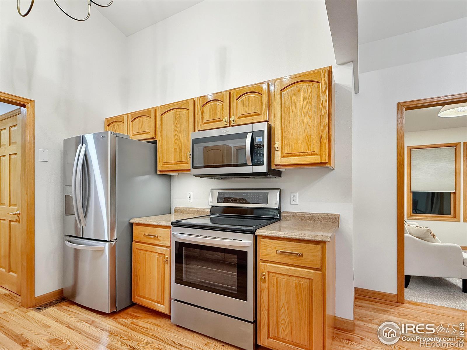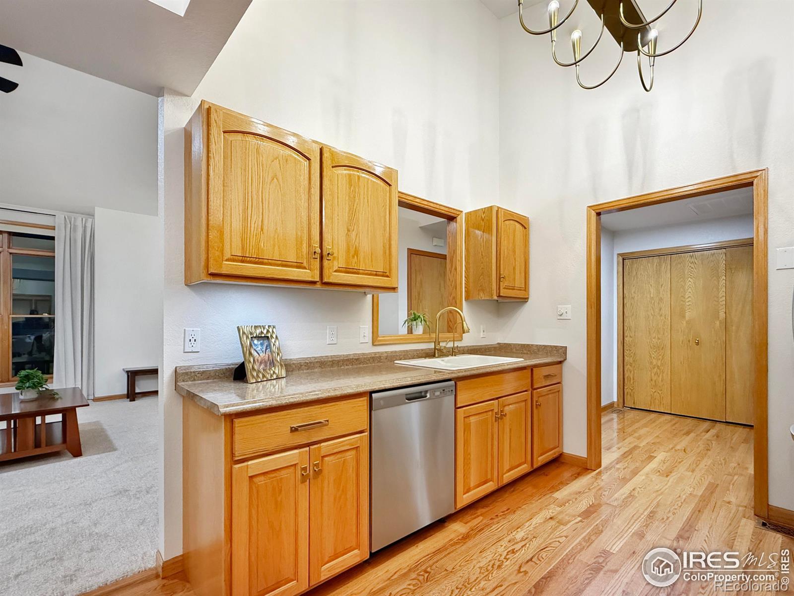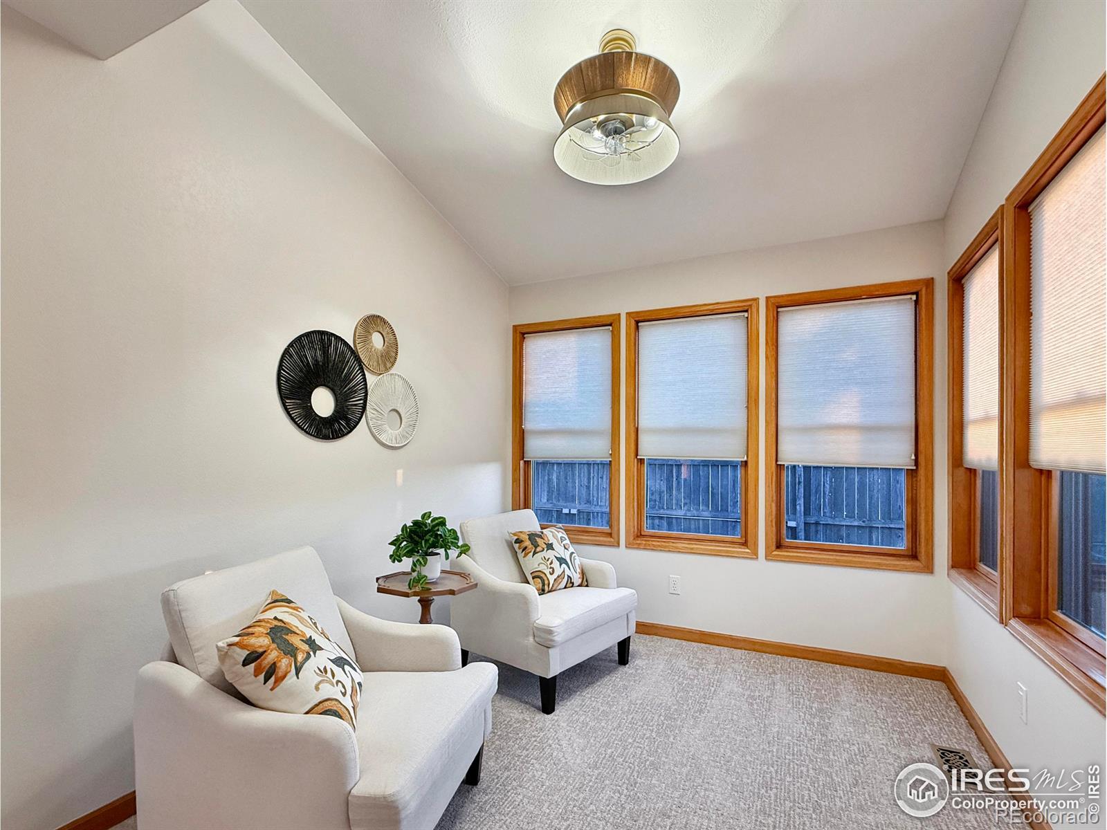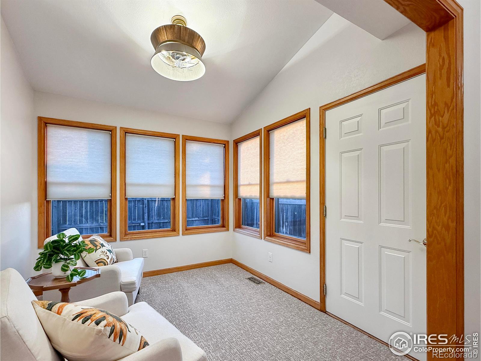 Beautifully Updated Paired Home with Sunset View. Welcome to this exceptionally maintained 2-bedroom, 2-bath paired home, offering the perfect blend of comfort, style, and low-maintenance living. This one-owner home sits in a unique end location with open space beside it-ideal for enjoying unobstructed Colorado sunsets. Inside, you'll find a bright and inviting layout featuring an open-concept design, high vaulted ceilings, and quality Pella windows throughout. A versatile sunroom/office provides the perfect spot for work, hobbies, or relaxation. Some of the recent updates include: Fresh interior paint throughout the entire home and garage. Modern interior and exterior light fixtures & ceiling fans. New carpet in the living room, bedrooms, and sunroom. New plumbing fixtures in the kitchen and bathrooms. New exterior steps at all doorways. The home showcases beautiful oak woodwork, solid-core doors, and hardwood flooring in the kitchen and hall. The backyard features a low-maintenance patio, ideal for outdoor dining or peaceful mornings. Community amenities include a gazebo, overflow parking, and a cluster mailbox. Truly turnkey and move-in ready, this charming home offers comfort, convenience, and a prime location.