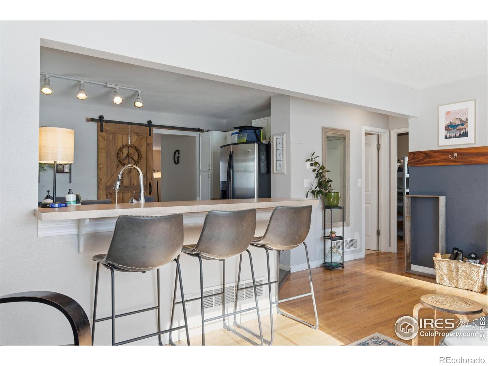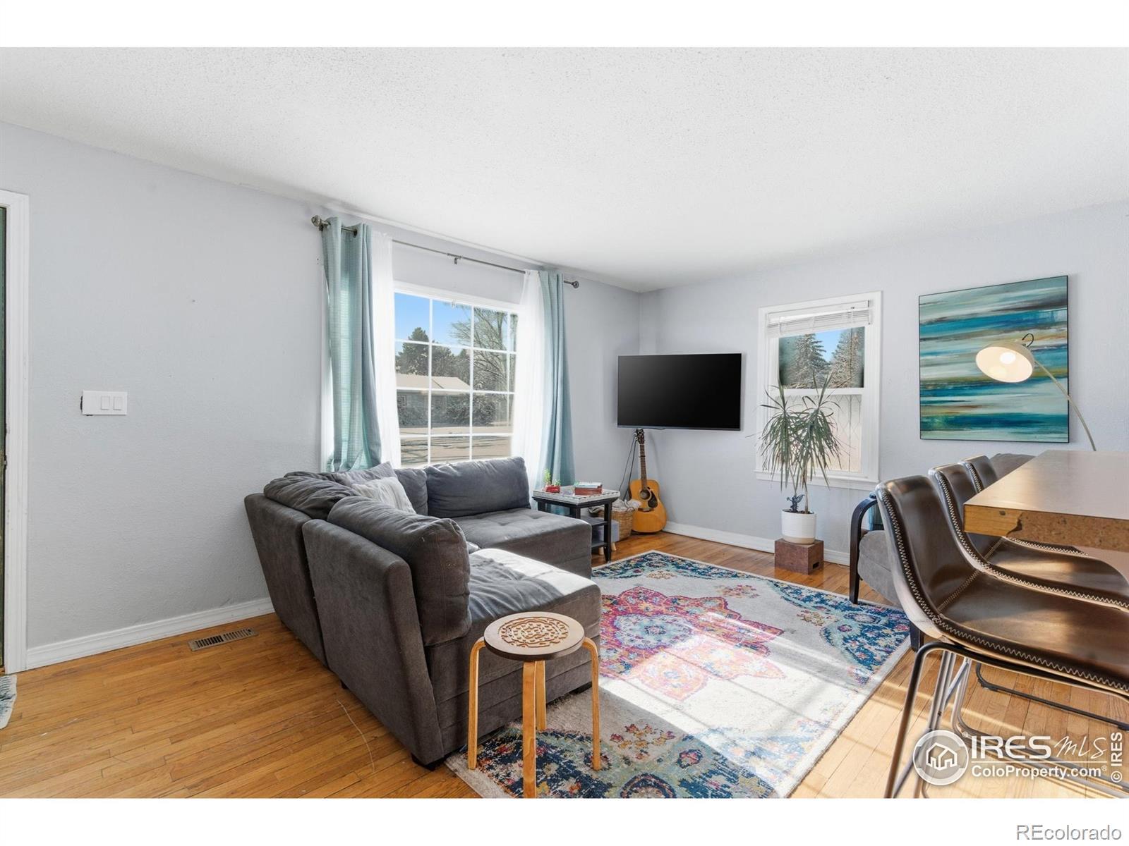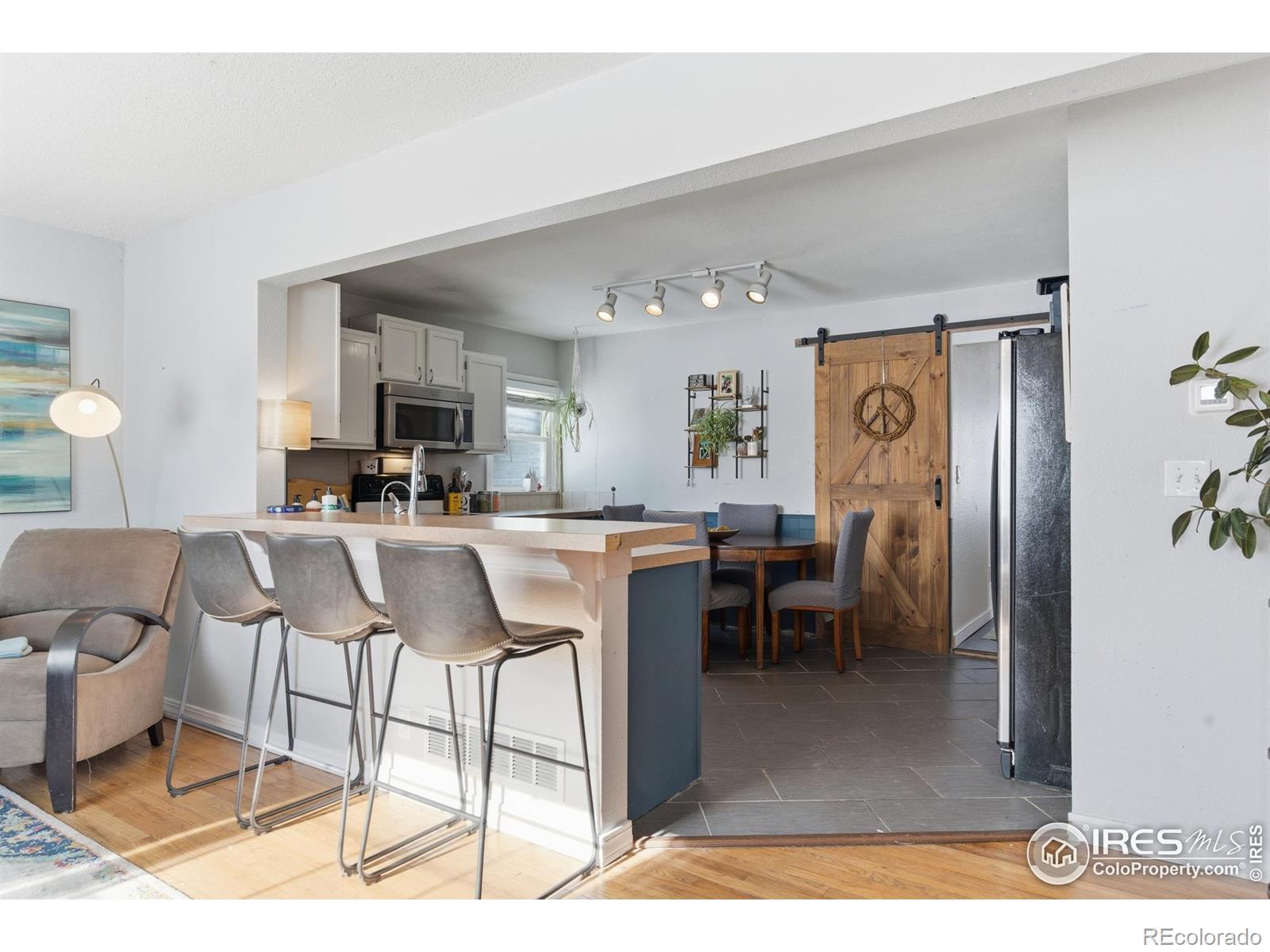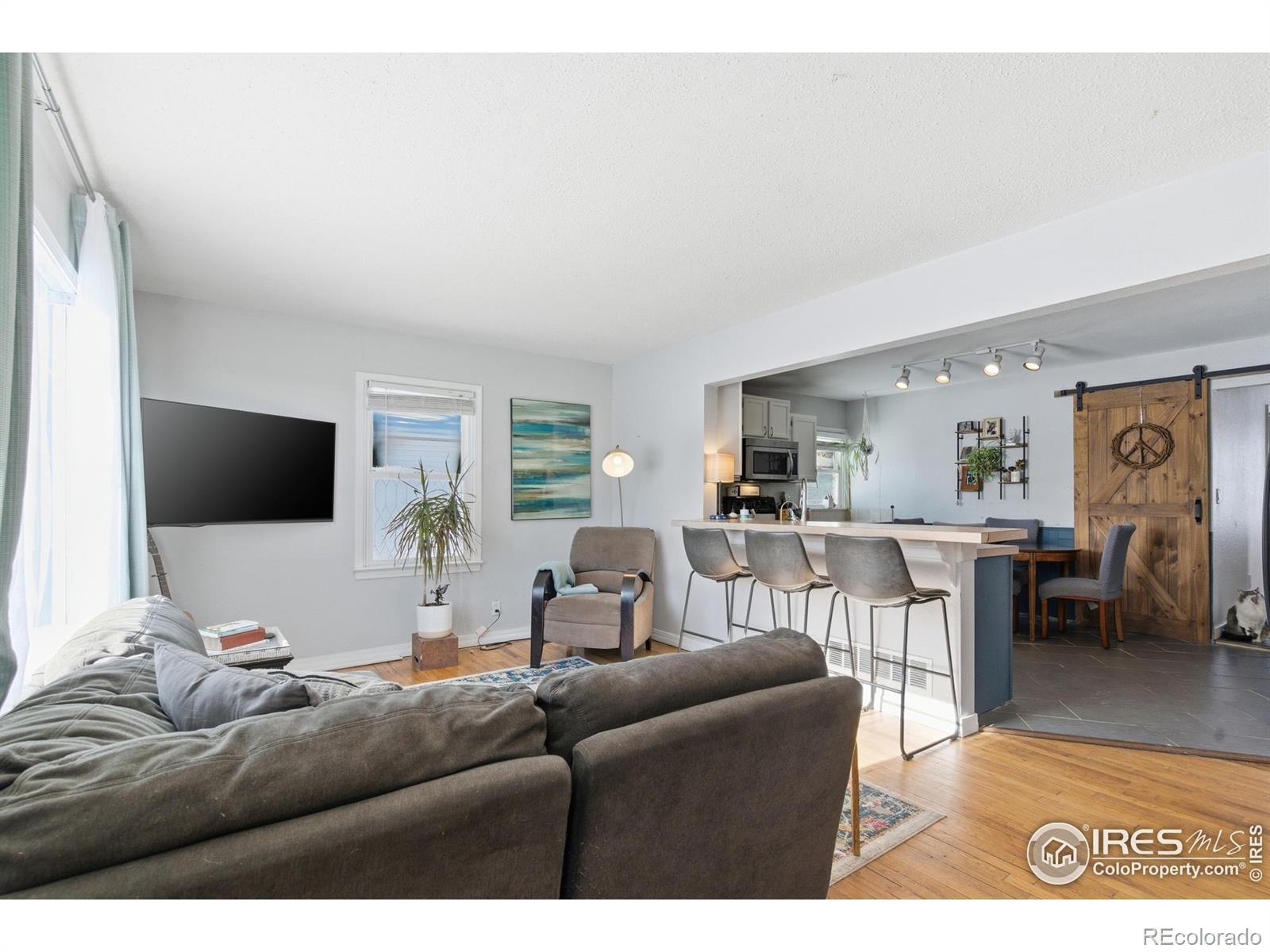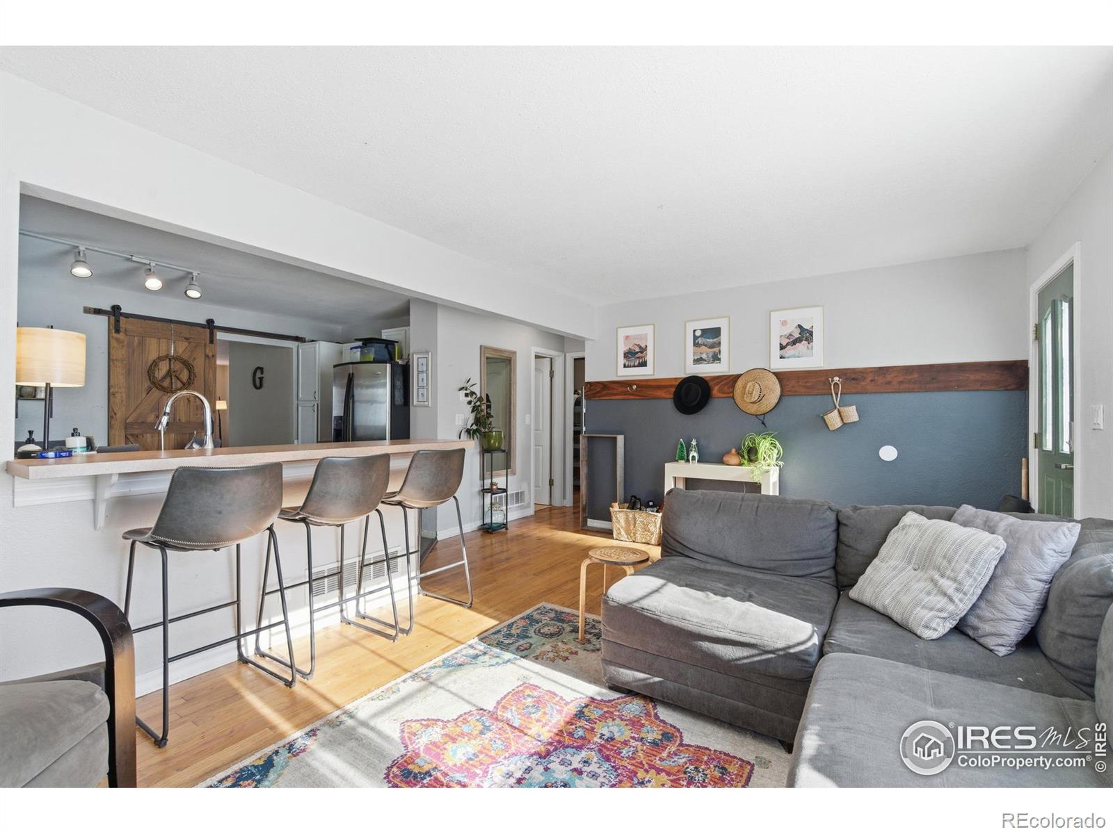 I am thrilled to announce this fantastic new listing that is move-in ready and perfect for a first-time homebuyer, investor, or anyone seeking a comfortable ranch-style residence located perfectly in the heart of Loveland. This charming, open-concept, single-level home offers a highly functional split floor plan and numerous recent updates. The interior boasts hardwood floors, an electric fireplace set into a custom built-in wall, a stylish sliding barn door accent, and two separate living spaces. The eat-in kitchen features a breakfast bar, pantry, and multiple dining options, offering ample room for entertaining and relaxation. The primary suite includes a large bedroom and an ensuite bath with a walk-in shower. Recent updates include newer great room flooring, newer exterior paint, a newly sealed crawl space, and a new roof installed in 2019. Outside, you can enjoy the large backyard with multiple patios, ideal for grilling, and a dedicated firepit area perfect for outdoor gatherings. The front yard is zero-scaped with new mulch and trees and features a beautiful path leading to the inviting front porch. Parking is abundant with a long driveway, RV parking option, and an oversized detached one-car garage that includes valuable shop space. Enjoy the benefits of no HOA or Metro District. This property is perfectly located near Loveland's most popular lakes, extensive hiking and biking trails, shopping centers, restaurants, and downtown amenities. Please let me know if you would like to schedule a private showing or come join our open house this Saturday from 11:30 AM to 1:30 PM. This property won't last long- don't miss this opportunity!