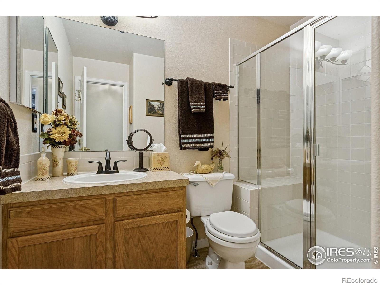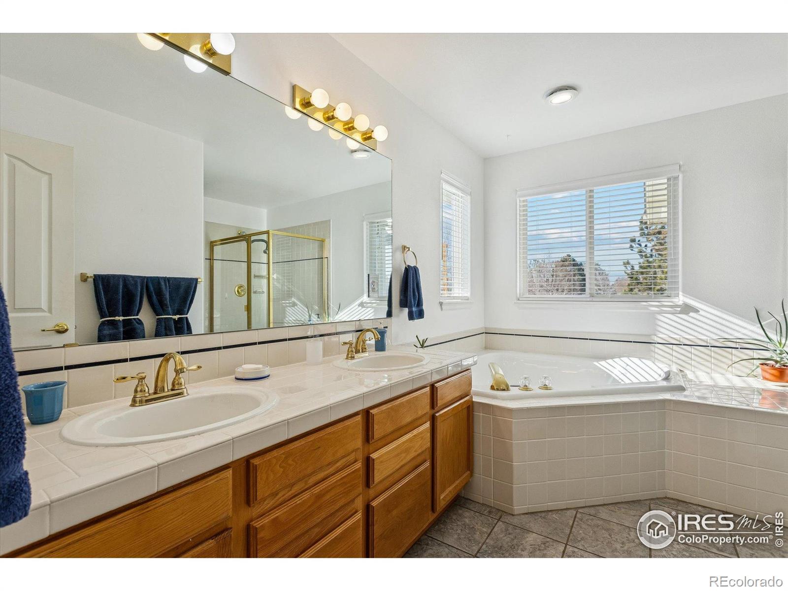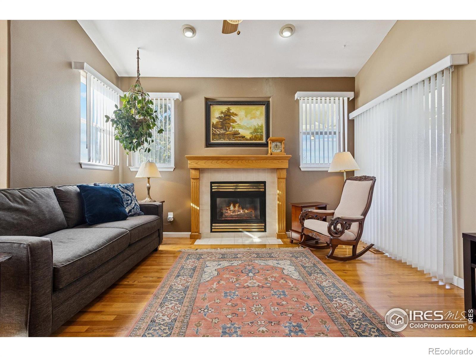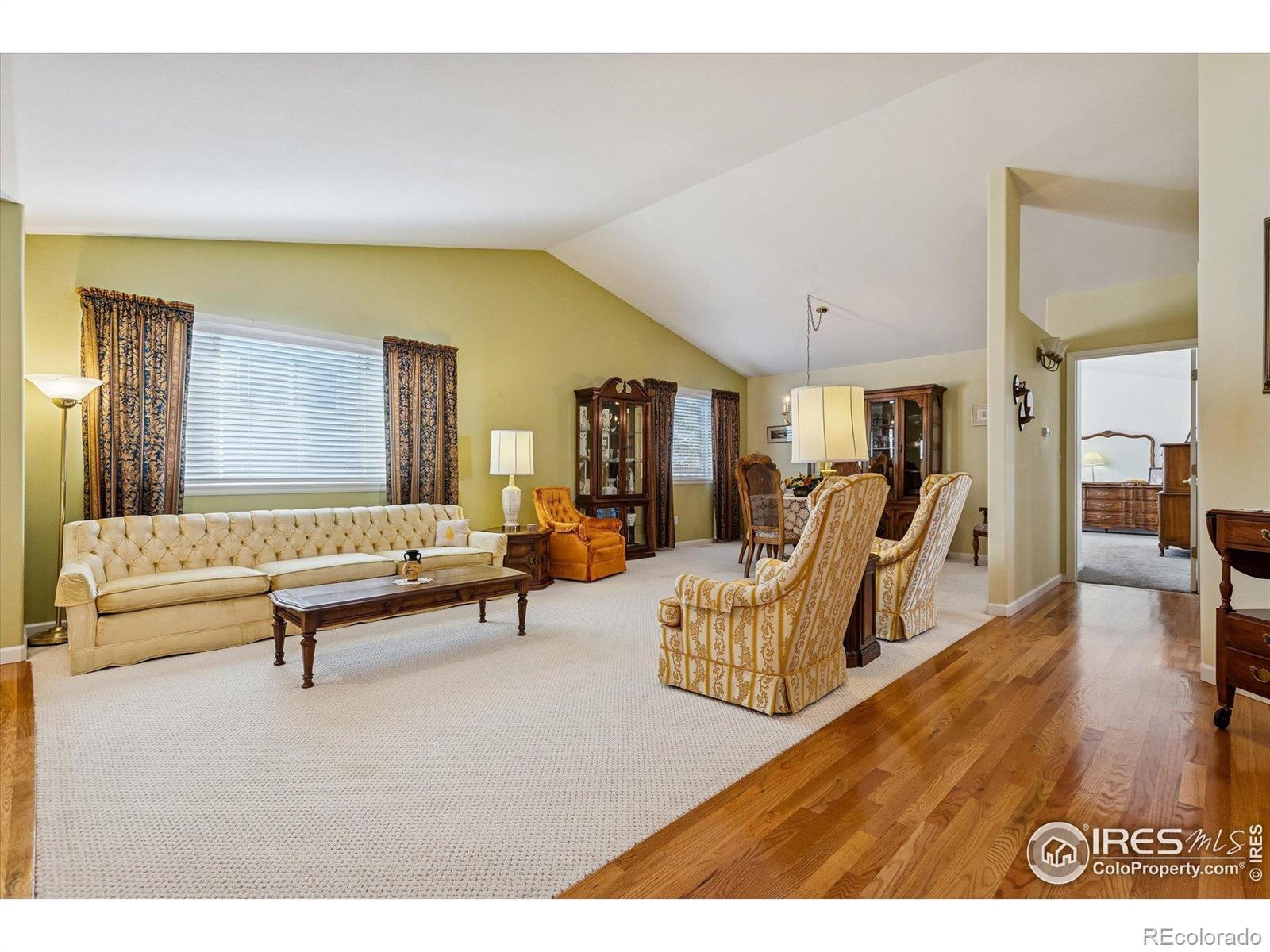 WELCOME TO THIS BEAUTIFUL RANCH HOME ON A .25 ACRE CORNER LOT IN LONGMONT'S SUGARMILL FARMS WITH GORGEOUS MOUNTAIN VIEWS! A white picket fence leads to an ample yard boasting mature trees, scented lilacs, tulips & roses galore. You'll especially love the beautiful scenery while relaxing on the amazing wrap-around TREX deck. Across the street is a greenbelt area/retention basin used as a park, with picnic tables & nearby trails. Upon entering you'll find a thoughtfully designed floor plan with extra builder touches providing comfort & functionality including tall vaulted ceilings, plentiful windows, nice hardwoods, and a fantastic fully finished basement. Every nook of this home is filled with natural light! You have a desirable main floor Primary bedroom (very spacious) with ensuite 5-piece bath fitted with dual vanity, corner soaking tub, tiled shower & walk-in closet. There are two more bedrooms on the main & 3/4 bath. The vaulted kitchen & family room are the heart of the home where a gas fireplace warms the space. You have an eat in nook with access to the deck, kitchen with Corian counters, roll-out shelves in all lower cupboards, white appliances & large pantry, ideal for hosting family and friends. The living room + formal dining room offer more space for entertaining. The standout finished basement features a top-notch entertainment/rec room, three bedrooms (one currently used as a workroom fitted with 220V), a pristine 3/4 bath with dual Quartz vanity & tiled shower, two storage rooms & a crawl space. Big ticket items of note: basement improvement 2022, new roof 2023, gutter guards 2025. Enjoy a quiet neighborhood with excellent schools and close-in amenities. You're a short distance to town to find shopping & King Supers; the fire station is within a mile. Don't miss the opportunity to own this exceptional home!