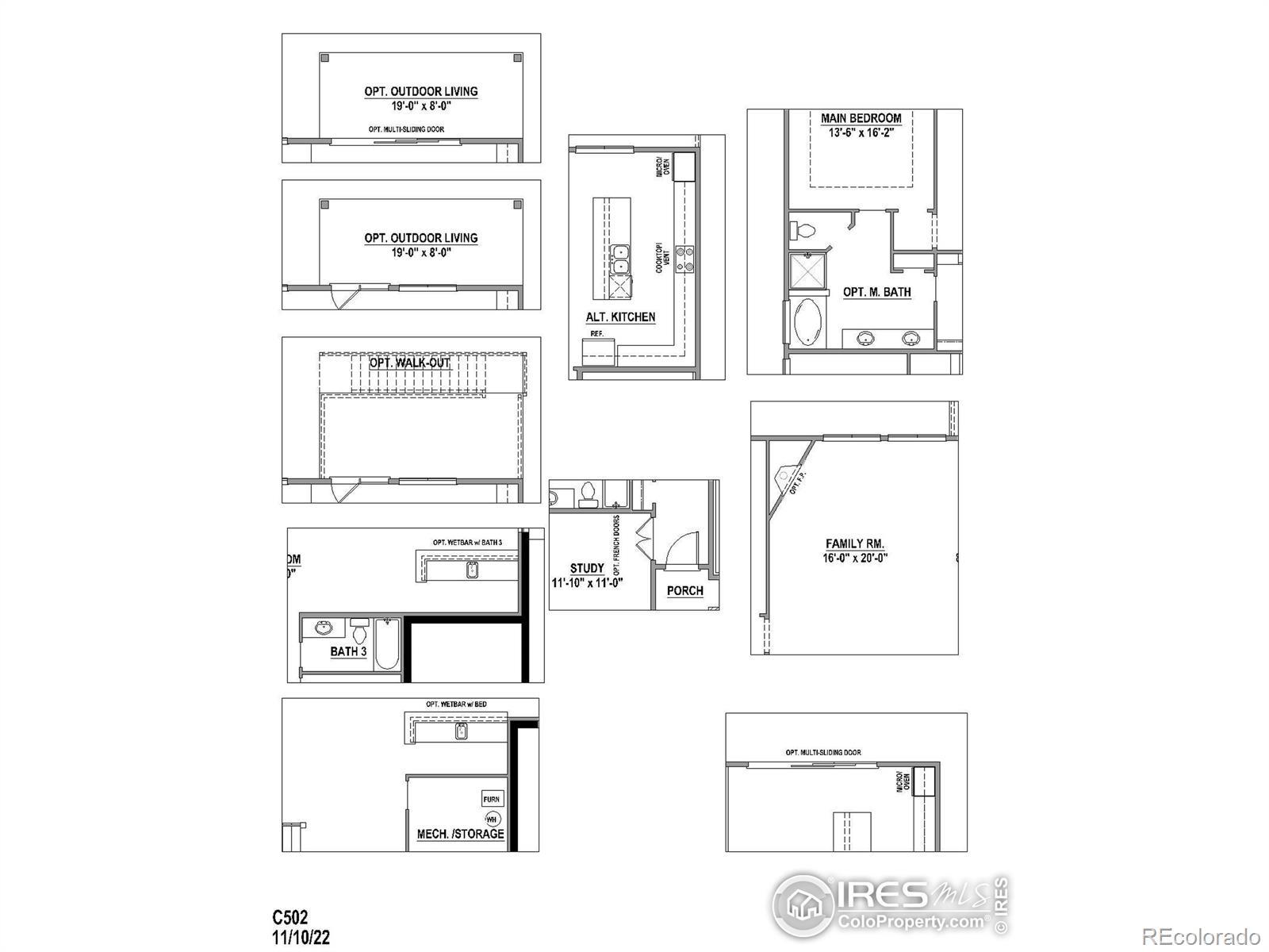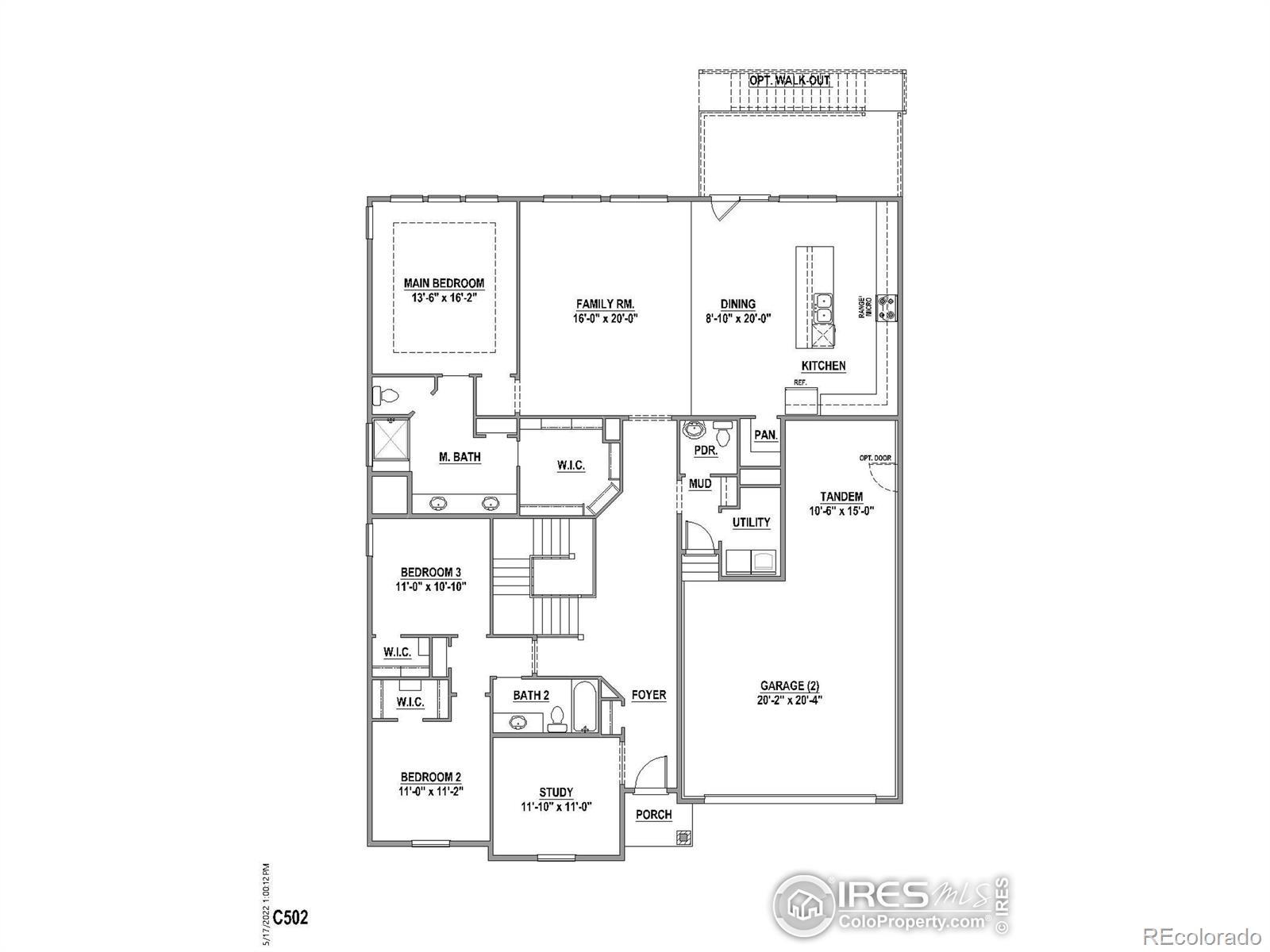 The C502 plan features a single-story, open-concept design with walls of windows and a spacious living area, ideal for entertaining family and friends. The kitchen features stained Almond soft close cabinets, Kitchen Aid appliances, built-in double ovens, a large 3cm Quartzite island with an overhang, providing seating for guests or for a quick meal. Relax in your central family room with a cozy fireplace that is tiled to the 11' ceiling. Your spacious owner's suite will feature a large walk-in closet, as well as a private bath retreat with a double-bowl vanity, free standing tub, and linen closet. An additional two bedrooms and study with French doors are included. With a thoughtful layout and a charming exterior, the C502 is an exceptional floor plan. This home comes with an unfinished basement with 9' ceilings. There is plenty of room for the whole family in this American Legend Home located next to RainDance National Golf Course.