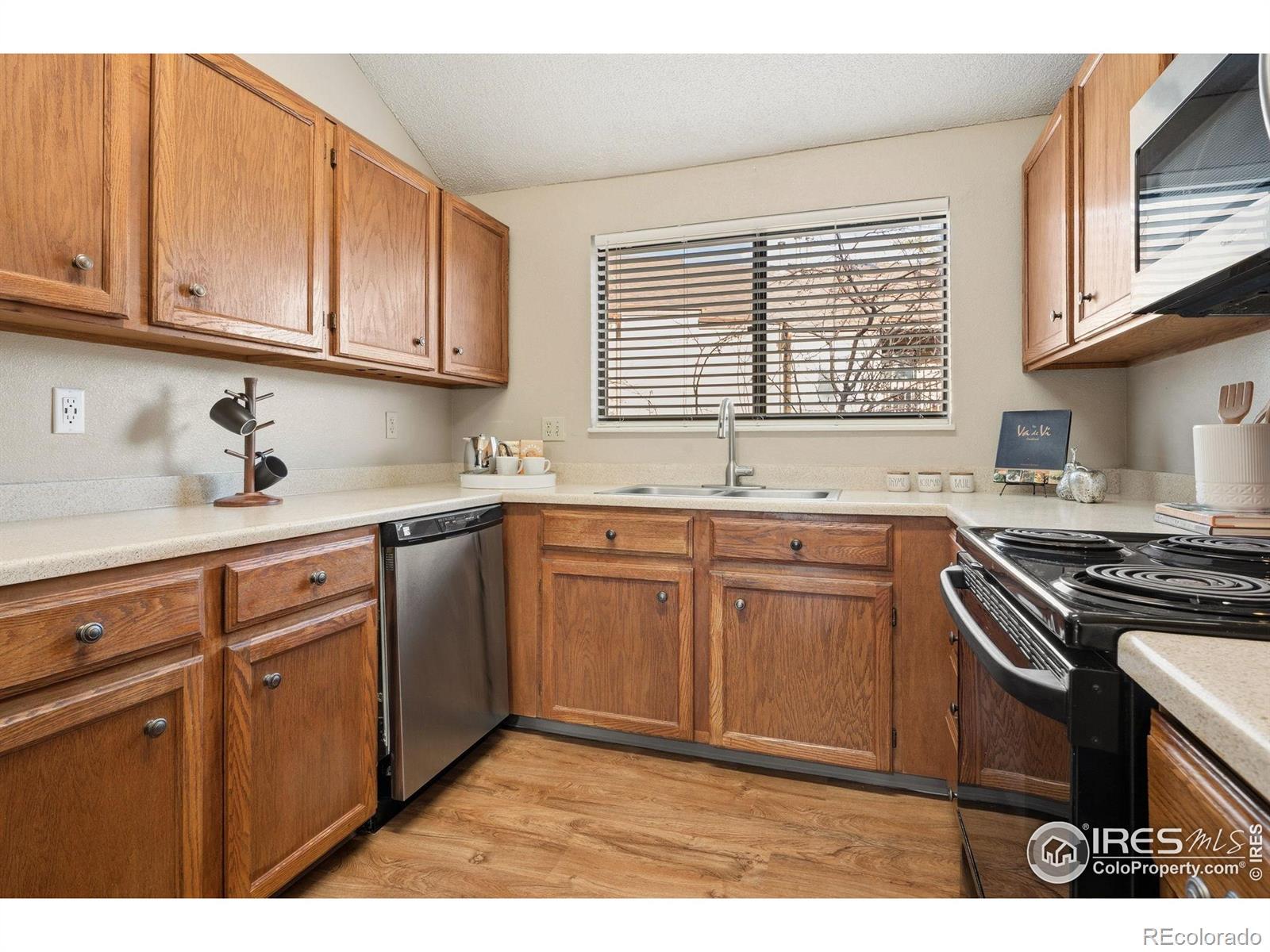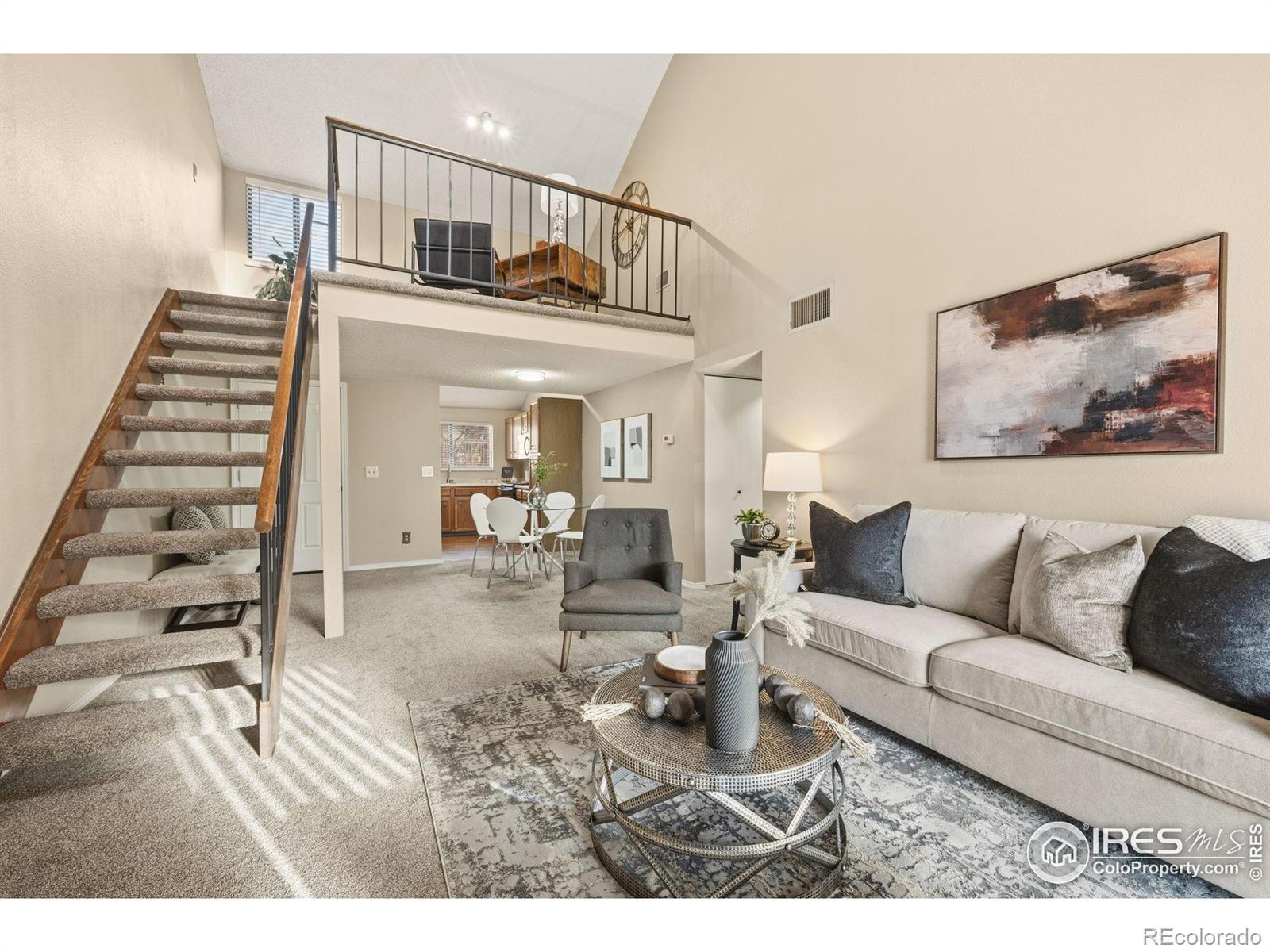 Welcome to your new home in the desirable Telluride West Condos community in Lakewood! This charming 2-bedroom, 1-bath penthouse condo with a detached 1-car garage is truly move-in ready. The beautiful kitchen features beautiful oak cabinetry, neutral paint, a self-cleaning oven, a garbage disposal, and a refrigerator, creating a warm and functional space for everyday living. The inviting living room boasts vaulted ceilings, a cozy wood-burning fireplace, and direct access to a private balcony overlooking the peaceful grassy commons-perfect for relaxing mornings or evening sunsets. Upstairs, a spacious loft area offers flexibility for an office, reading nook, or additional living space. The primary bedroom is generously sized, filled with natural light, and includes a walk-in closet. The secondary bedroom features like-new carpet, neutral paint, and ample closet space for easy organization. A full bathroom offers a white vanity, cabinet storage, and a tub/shower combination. Additional updates include a newer A/C unit and a newer water heater. Enjoy the benefits of penthouse living with no unit above you and added privacy from ground-level activity. The home is conveniently located within walking distance to the community pool. Residents also enjoy access to a gazebo with grassy seating areas and tennis courts, making this community ideal for both relaxation and recreation. This Lakewood location has so much to offer, from a brand new Wright Park (coming soon), close to Red Rocks Community College, and the light rail. Don't miss this wonderful opportunity to own a beautifully maintained condo in a prime Lakewood location!
