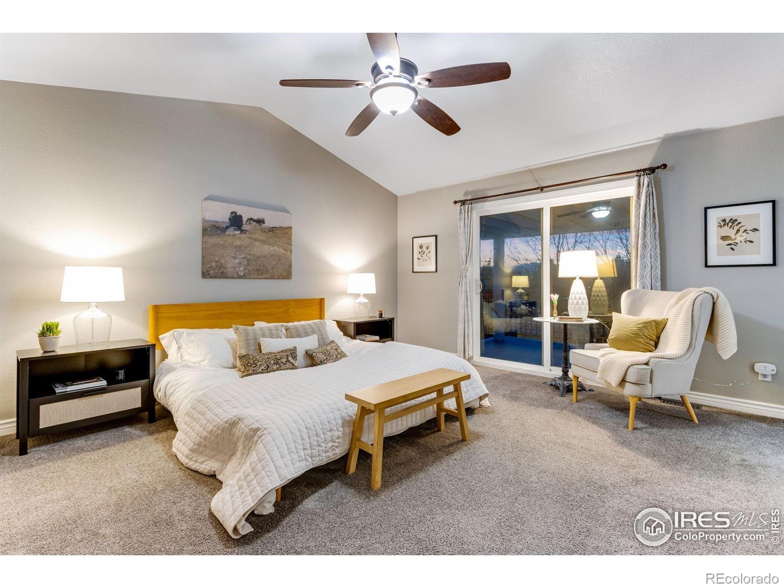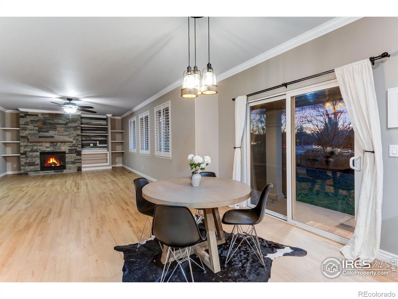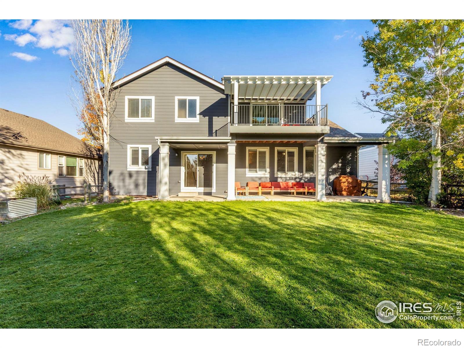 Welcome to Highland Meadows- perfectly positioned for easy access to Fort Collins, Loveland, Windsor, and located within the Poudre School District. This modern two-story home has no neighbor behind. The kitchen features tall cabinets, granite countertops, center island, table space, pantry, gas range, brand-new microwave, and sleek touch faucet. The expansive living room with a cozy gas fireplace and separate dining room provide additional inviting areas for gathering. Wood floors and plantation shutters add timeless charm throughout the main level. Enjoy outdoor living on the covered back patio or in the spacious yard with mature landscaping maintained by a fully automated sprinkler system. Convenience abounds with main-floor laundry and washer/dryer included. The finished basement offers a private bedroom and bath, wet bar, recreation room, large unfinished storage, and crawl space. Upstairs, the primary suite boasts a private balcony, vaulted ceilings, luxurious bath with heated floors, walk-in shower with electronic temperature control, and walk-in closet. Three additional bedrooms and an updated bath complete the upper level, making this home ideal for both everyday living and entertaining.