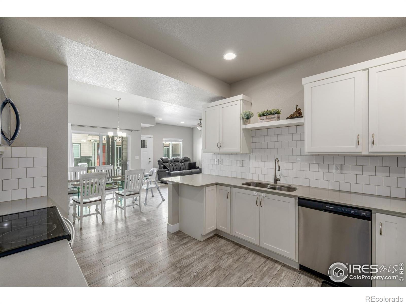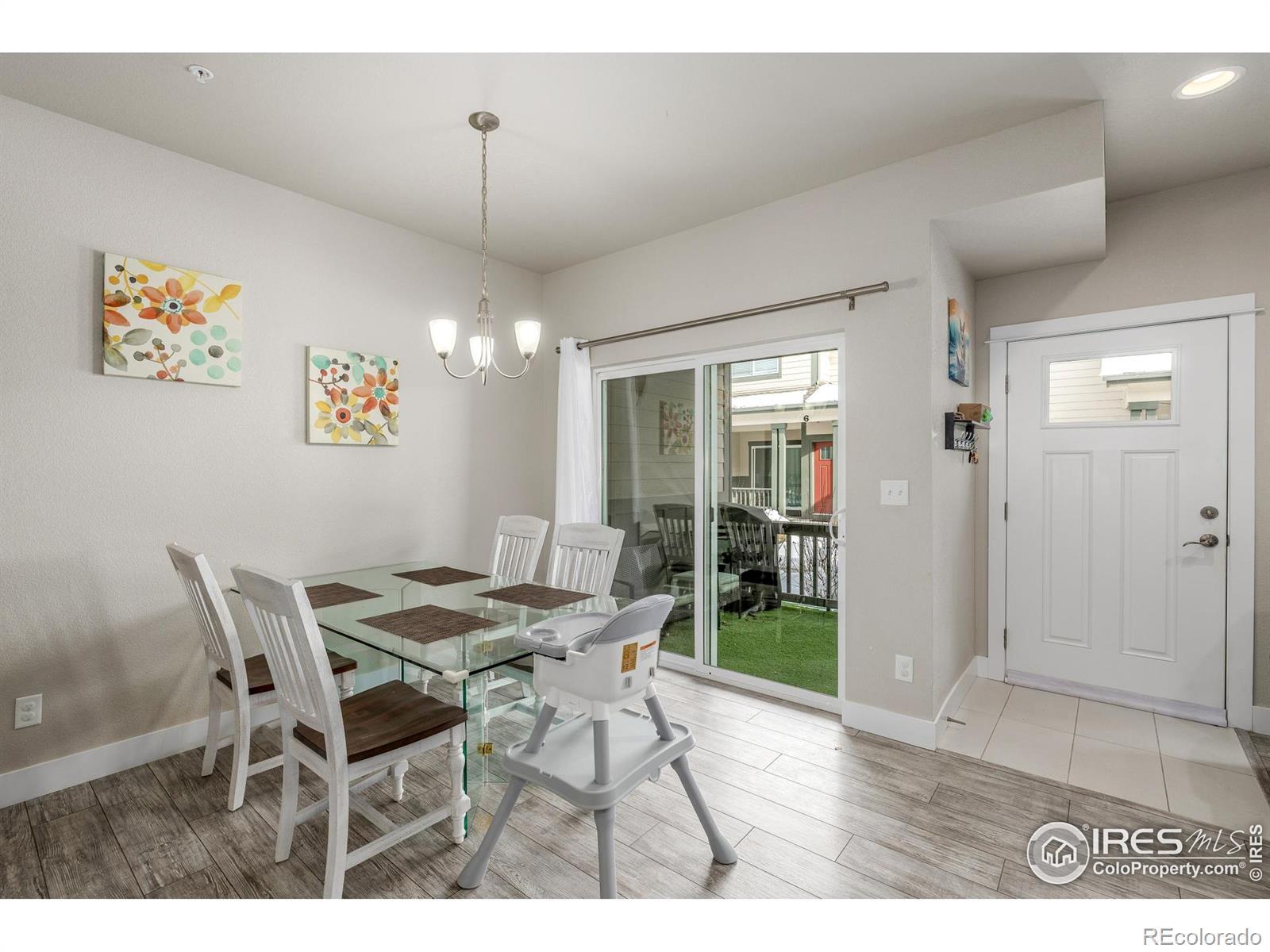 A sense of quiet sophistication defines this chic townhome built in 2019. Modern wide plank flooring sets an elegant tone from the first steps inside, drawing visitors toward an open concept main floor that feels both refined and inviting. The living room forms a graceful focal point with its corner fireplace, recessed lighting, ceiling fan and a broad picture window that fills the space with soft natural light. The dining room sits charmingly between the kitchen and the patio doors, creating a bright transitional space that flows easily toward the covered porch. It is a thoughtful layout that enhances everyday living and welcomes conversation and connection. The kitchen presents a fresh and stylish aesthetic with timeless subway tile, iconic white cabinetry and cool grey counters. Stainless steel appliances complete the look, while a breakfast bar provides an intuitive bridge between kitchen and dining areas. The upper level offers two serene bedrooms that are generously scaled. The primary suite features an airy layout with a private ensuite that creates a quiet retreat. The secondary bedroom offers excellent closet storage and abundant natural light, making it equally comfortable and functional. An in unit laundry space adds daily ease, while the unfinished basement presents future possibility for added living space or storage. An attached one car garage provides convenience year round. Beyond the townhome itself, the community features a welcoming clubhouse and pool, creating opportunities for recreation and gathering. With modern design elements, an intuitive floor plan and room to grow, this property blends comfort and style in a way that feels both elevated and refreshingly uncomplicated.