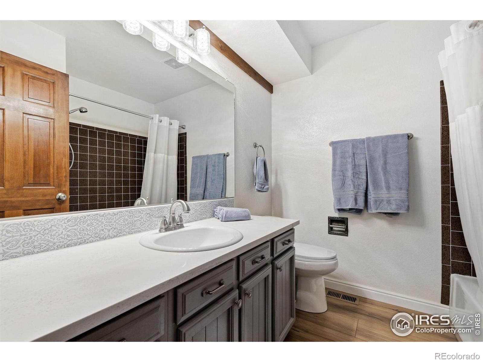 Nestled in the prestigious Ranch Country Club golf community, this beautifully updated 4-bedroom, 3-bath home offers 2,700 sq. ft. of modern comfort just a quick golf-cart ride from The Ranch Country Club. Bright and inviting, the home showcases newer Andersen windows, soaring vaulted ceilings, and all-new laminate wood flooring. The main level features two generous living spaces including a living room with a wet bar and a newly tiled fireplace that leads to the backyard, a sunlit kitchen with cooktop and double ovens, and a formal dining room. Upstairs, the expansive primary suite impresses with a remodeled bathroom with a stand-alone tub, custom walk-in closet, and access to a newer deck overlooking the private backyard with a large patio-perfect for relaxing. Two additional spacious bedrooms with mountain views! The finished basement adds exceptional versatility with space ideal for guests (including a Murphy bed option), a home office, or recreation area, plus a sizable storage room. Thoughtful upgrades include a newer roof, new carpet, popcorn ceiling removal, and a full interior repaint in 2025. Smart sprinklers keep the lawn pristine, and the home's west-facing orientation fills the front rooms with natural light and mountain views. Surrounded by open space, trails, Ranch Park, and a nearby creek, this turnkey home is the perfect blend of comfort, convenience, and community-just move in and enjoy.