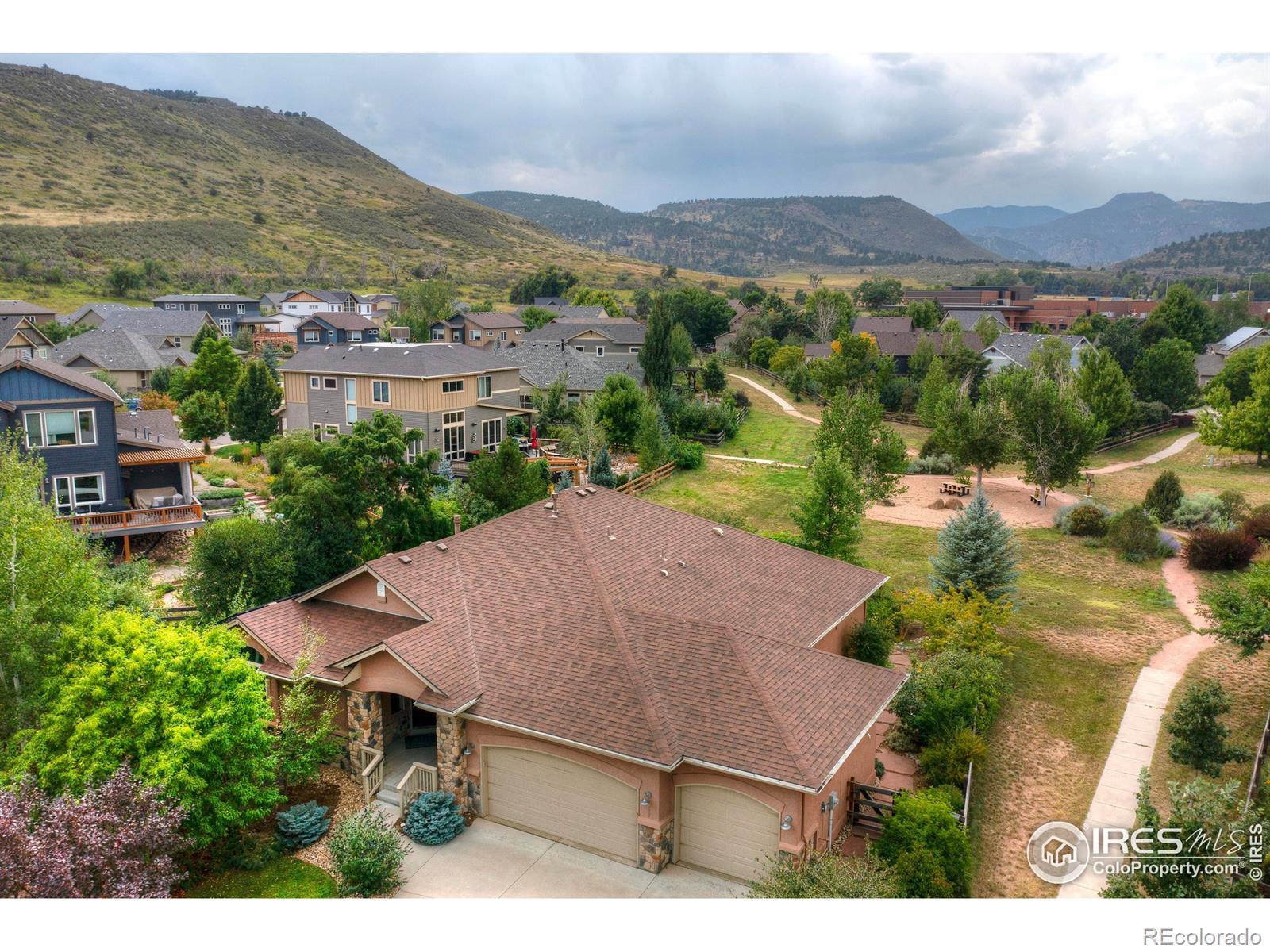 New on the market in one of the most coveted spots in Lyons Valley Park. This rare ranch is one of the largest floor plans in the community and backs to the neighborhood pocket park and opens to quiet foothill views that come alive with the seasons. The layout delivers true one level living with a generous lower level that adds a second living area, bedrooms and more than six hundred square feet of unfinished space ready for storage or future expansion. The kitchen is anchored by rich cherry cabinetry and wide stretches of counter space that make cooking feel effortless. The adjoining breakfast nook looks out to the gardens and the west facing patio. Step outside in the afternoon and you feel the sun drop behind the ridgeline. It is a peaceful backdrop for evenings at home. Inside, the main floor flows easily from the dining room to the family room to the primary suite. The lower level opens into a large family room with space to relax, work or host overnight guests. Three car garage for gear, golf cart, bikes and all the pieces of a Colorado life. This home also includes owned solar panels which means lower monthly energy costs.From here you can walk everywhere. Lyons Middle Senior School is just around the corner. Downtown is a quick ride on your golf cart, beautiful hiking trails are nearby and Boulder is only fifteen minutes away with Longmont even closer. This is an ideal Boulder County location in one of Colorado's most beloved small towns.