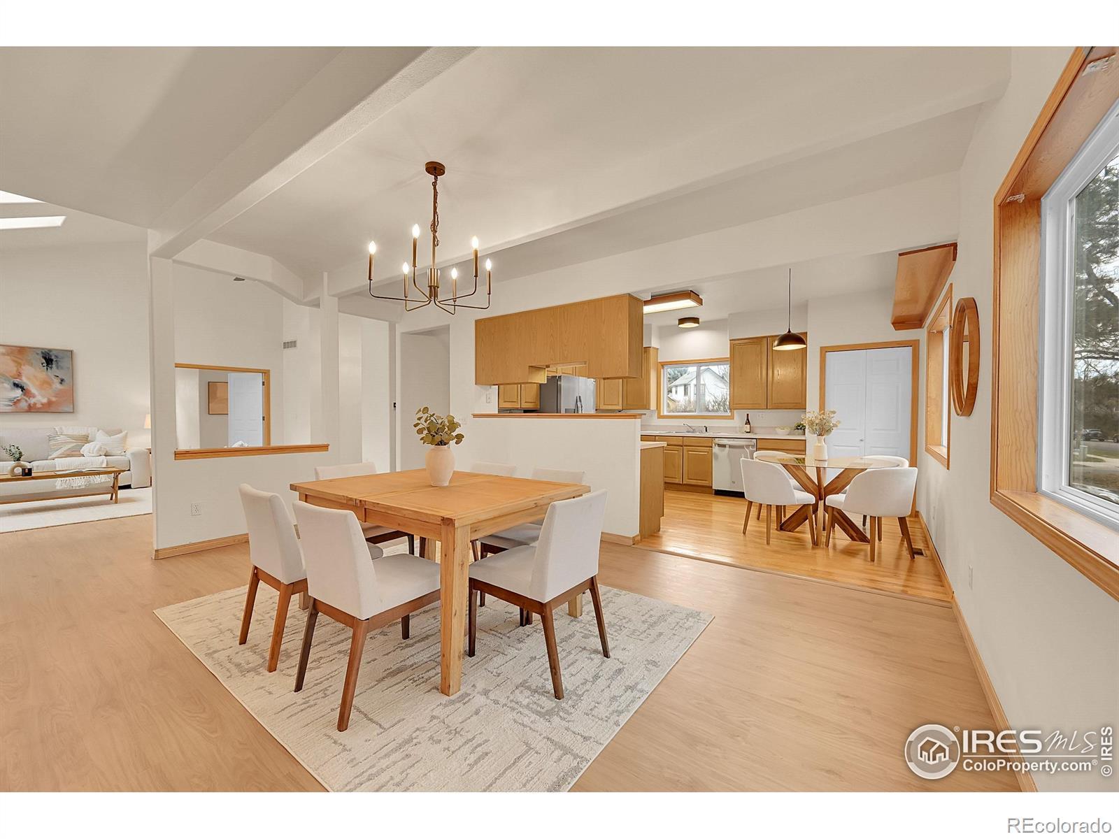 In a peaceful, tree-lined neighborhood, this home presents itself with undeniable warmth, its inviting front porch setting the stage for what's inside. Inside, sun-drenched interiors feature vaulted ceilings, skylights, and brand-new flooring, creating a sense of effortless sophistication. The main-level living flows smoothly, culminating in a private primary suite tucked behind French doors. Here, volume ceilings, a generous window seat, a refreshed five-piece bath with new tile, and a generous walk-in closet offer a retreat that feels both serene and intentional. The kitchen seamlessly blends warmth and functionality with refinished hardwood floors, new appliances, and a dedicated pantry, perfect for everyday living or effortless entertaining. A formal dining room and fresh interior paint elevate the home's modern, turn-key appeal. Upstairs, two spacious secondary bedrooms feature soaring ceilings and abundant light, creating inviting spaces for guests, work, or play. The lower level remains unfinished and expansive-ready for your vision, whether that's a recreation space, gym, or added bedrooms. Outside, the shady backyard is anchored by a mature tree. Additional highlights include an alley-access two-car garage, NEW furnace and AC, and an unbeatable location near Valmont Bike Park, trails, and Boulder's everyday conveniences. A home that combines character, comfort, and opportunity-all in a setting that celebrates Colorado living.