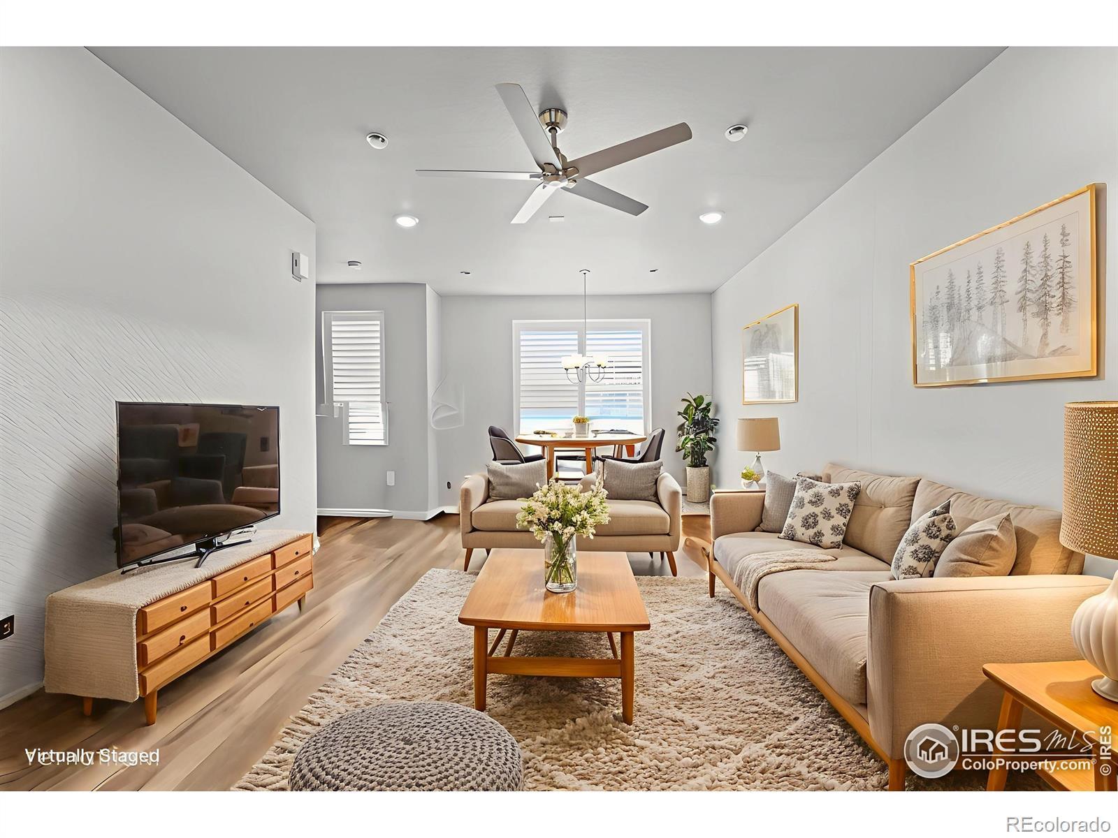 Welcome to this bright and beautifully maintained 2-bedroom, 3-bathroom Townhome built in 2022. Featuring an open-concept main level, this home is filled with natural light and offers a clean, modern interior perfect for comfortable living and entertaining. Hang out on the balcony right off the kitchen to enjoy a morning cup of coffee or tea, or unwind with a book in the evening as the sunsets to the west. Recently added gorgeous plantation shutters elevate the space and add privacy as needed. Upstairs, you'll find a spacious primary bedroom along with a versatile second room-ideal as a guest room, home office, or additional bedroom. The oversized washer and dryer are included and can be found in the hallway in between the bedrooms for easy access. Ceiling fans have been added to the bedrooms to assist with heating/cooling and provide additional lighting. The attached 2-car tandem garage includes an extra large storage closet for all your gear and seasonal items. The roof was upgraded to a class 4 resistant roof which will provide superior harsh weather protection and can help lower your home owners insurance cost. Located just minutes from Santa Fe Drive, I-25, and C-470, commuting is a breeze whether you're heading to work or out to the mountains. Outdoor enthusiasts will love the proximity to Chatfield Reservoir, scenic bike trails, and countless opportunities for hiking, biking, and dog walking. The neighborhood itself features walking paths, outdoor workout stations, and even an on-site dog park-everything you need for an active Colorado lifestyle. Shopping is just minutes away at the Aspen Grove shopping center, which features plenty of shops, restaurants and a Drafthouse style movie theater. Just a few minutes down the road you will find downtown Littleton which features all kinds of local shops and hosts local events. Don't miss the chance to make this newer, low-maintenance Townhome your own!!