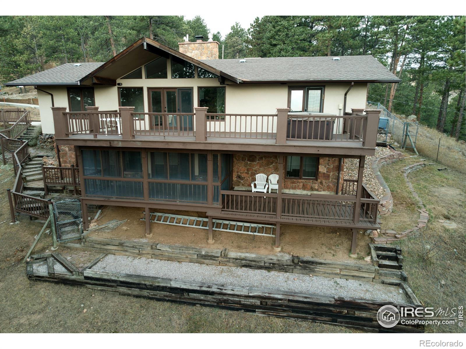 Welcome to Fox Hollow, set on just over an acre in the sought-after Pine Brook Hills community. Inspired by its namesake statue and regular fox sightings, this property appeals to those who value accessibility, intelligent comfort, and peaceful solitude. Offering a perfect blend of modern design, breathtaking views, and convenience-just minutes from downtown Boulder-it feels like a private mountain retreat.Updated finishes complement the serene foothills setting, surrounded by mature evergreens, native landscaping, and sweeping valley, plains, and North Boulder views. Wildlife including foxes, deer, turkey, and birds of prey visit often, creating a true nature-rich living experience with easy access to the city.The light-filled main level features an open layout with vaulted ceilings, skylights, a stone fireplace, and modern updates that preserve the home's mountain character. Living and dining areas flow into the remodeled kitchen, creating a warm and functional space for everyday living and entertaining.The primary suite offers a remodeled 3/4 bath and walkout access to the upper deck. The main level also includes another bedroom. The refreshed walk-out lower level adds flexibility with two additional bedrooms-one with valley and plains views-and a large family/rec room with a fireplace.Outdoor living shines with two decks totaling roughly 1,000 sq ft. The lower deck is screened, while the upper deck features a private hot tub off the primary suite. The sloping, partly fenced lot offers classic mountain living with county-maintained roads. Additional highlights include an attached 2-car garage, extra parking by the lower entrance, updated systems, efficient baseboard hot-water heat, paid-off solar panels, and inclusion in the Pine Brook Hills water district. Recently remodeled and move-in ready, Fox Hollow is a rare opportunity to enjoy modern comfort in a stunning Boulder foothills setting.