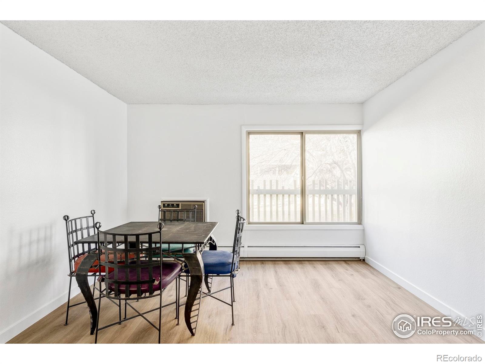 This refreshed one bedroom, one bathroom condo offers a bright and functional setting in the conveniently located Two Mile Creek community. New flooring and fresh paint give the home a clean, inviting feel, while large windows bring in soft natural light throughout the main living area. The layout is simple and efficient. The living and dining space provides room to relax or work, with a serving window connecting directly to the kitchen. In the kitchen, new butcher block countertops and a new sink add warmth and utility alongside freshly painted cabinetry and practical appliances. A hallway linen closet offers extra storage, and the bedroom features a wide closet and peaceful views toward the treetops. The bathroom includes a new composite laminate countertop and a full tub and shower. As a resident of Two Mile Creek, you'll enjoy a community pool and two off street parking spots. The HOA covers heat, water, sewer, trash, recycling, and exterior maintenance, which helps keep ownership straightforward and low maintenance. This central Boulder location places groceries, restaurants, bars, climbing gyms, fitness centers, bus lines, and the Elmer Two Mile Park and Goose Creek path within minutes of your door. The popular Rayback Collective is basically in your backyard, making evenings out easy and enjoyable. With its recent updates, practical layout, and close proximity to everyday essentials, this condo is a comfortable and convenient place to call home or a smart opportunity for an investor.