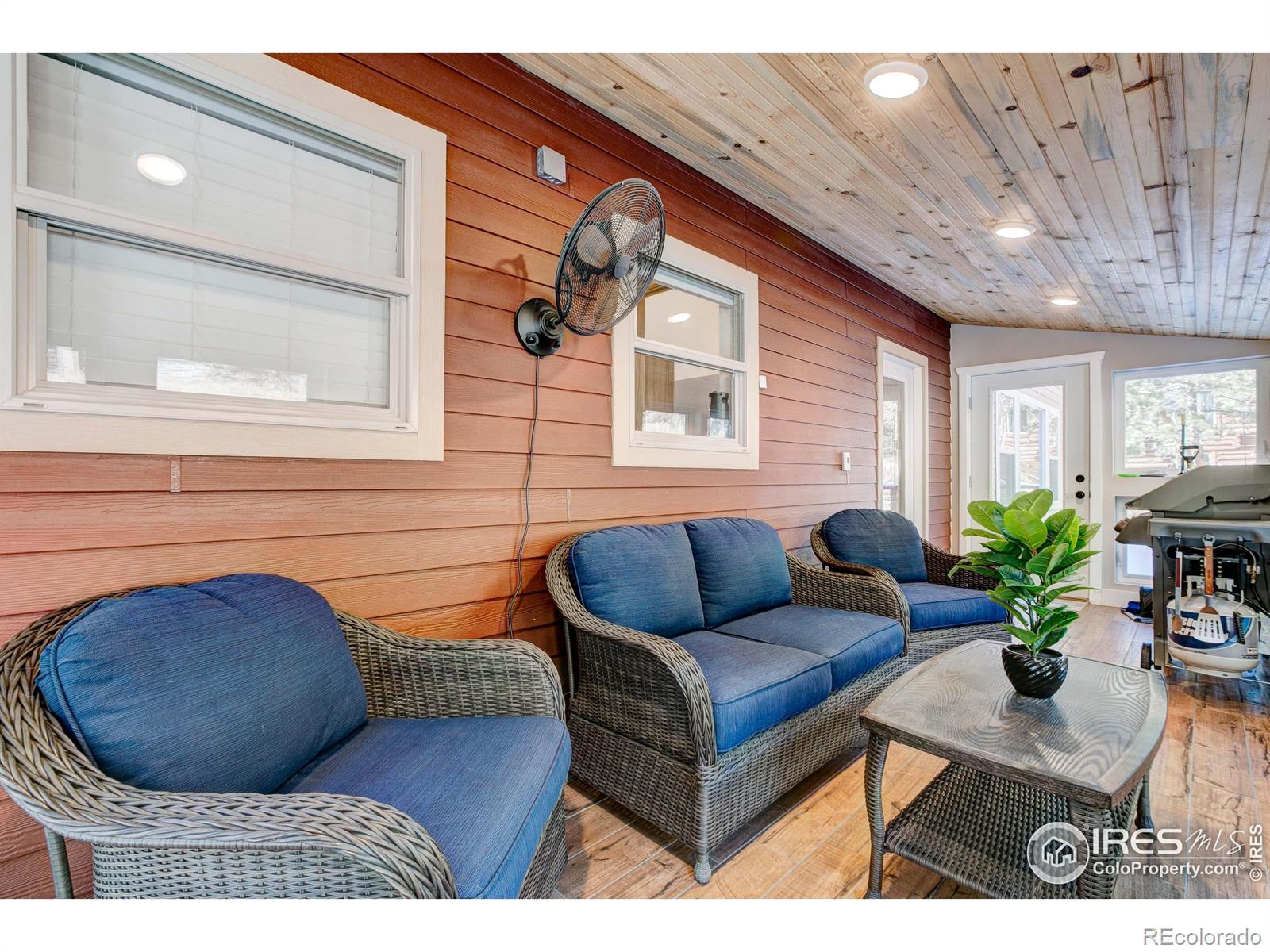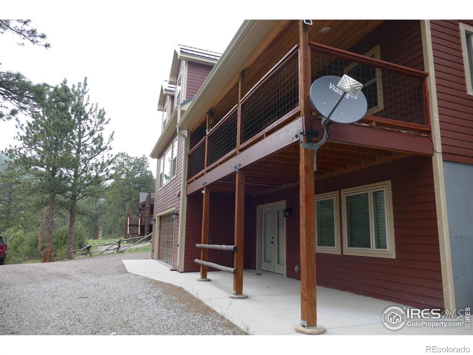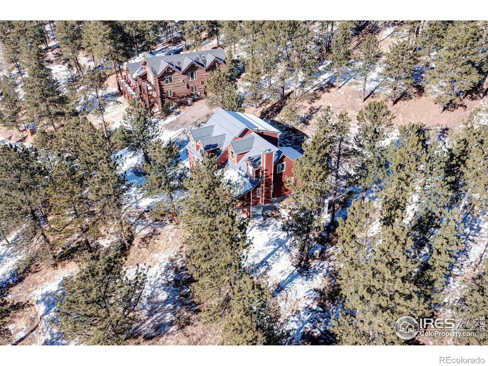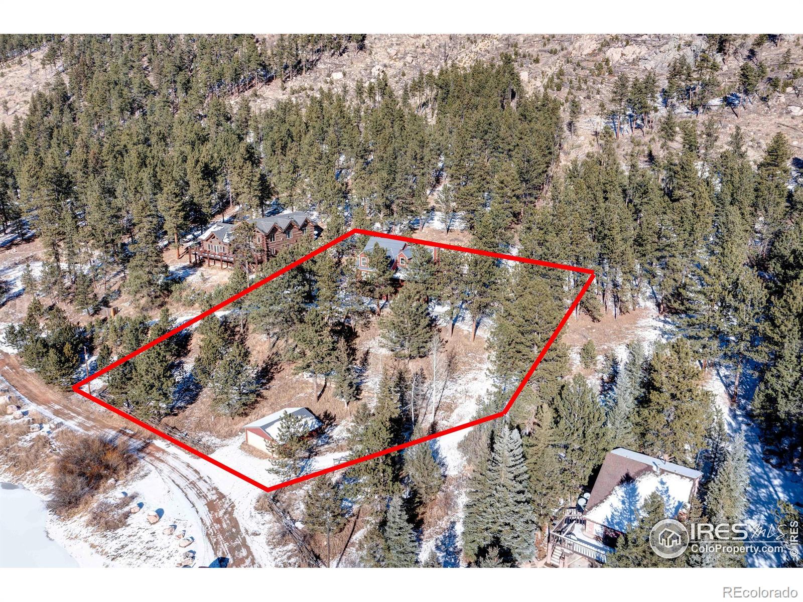 Available furnished, this beautifully crafted 5-bedroom mountain cabin sits in the heart of Big Elk Meadows and is surrounded by Roosevelt National Forest, offering exceptional privacy, dramatic views, and year-round wildlife sightings. Built in 2018-2019 with energy-efficient construction, the home features geothermal heating and cooling, spray-foam insulation, smart thermostats, and a high-efficiency wood fireplace for cozy winter nights. Thoughtful details include knotty pine floors, doors, and trim; live-edge accents; recessed LED lighting; and a four-season sunroom with heated floors and mountain views.The main level offers a welcoming great room, dining area opening to a covered deck, sitting room with a brick-and-log fireplace, a full bath, and well-appointed kitchen with knotty pine cabinetry, walk-in pantry, pot filler, instant hot water, and a live-edge island. The private primary suite is also located on the main level.The walkout lower level features a bedroom suite with washer/dryer hookup, large shower with dual heads, and a recreation room with access to the chairlift to the main level. Upstairs are three additional bedrooms, charming dormer windows, custom log railing, shared bath, and flexible living area.Exterior features include fiber-cement siding, steel roof with snow guards, Trex deck, enclosed dog run, Generac whole-house generator, radon mitigation, 50-amp RV outlet, buck-rail fencing, and 2-car garage with a hydrant.Big Elk Meadows offers five stocked lakes, a heated pool, tennis and pickleball courts, playground, hiking trails, horse pasture, canoeing, fishing, and a volunteer fire department. Estes Park, Lyons, and RMNP are just a short drive away.