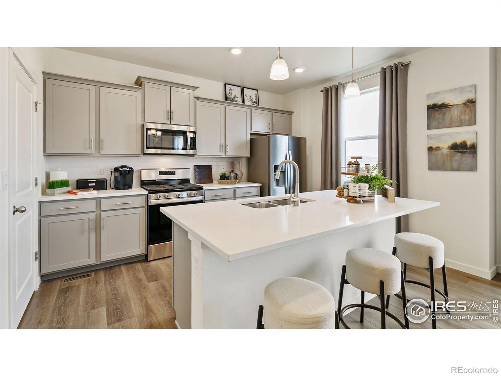 Wow completed and ready to go! You have to see this one! Superb 3 bedroom with a study/flex space, loft and full loaded! This home includes the front and backyard landscaping, all stainless-steel Kitchen appliances, blinds throughout and the front load washer/dryer! That's not all, it also has smart home technology, tankless hot water heater, 9' ceilings and a front porch to enjoy the Colorado evenings on. The Kitchen has contemporary white cabinetry, a large island, quartz countertops and a walk-in pantry! The primary bedroom is a dream! Super spacious with a big walk-in closet and a 3/4 bath. Need more elbow room, how about a loft upstairs for a second living area or gaming set up! All that and in a great location with quick access to Mead/Firestone/Longmont and miles of trails! ***Photos are representative and not of actual property***
