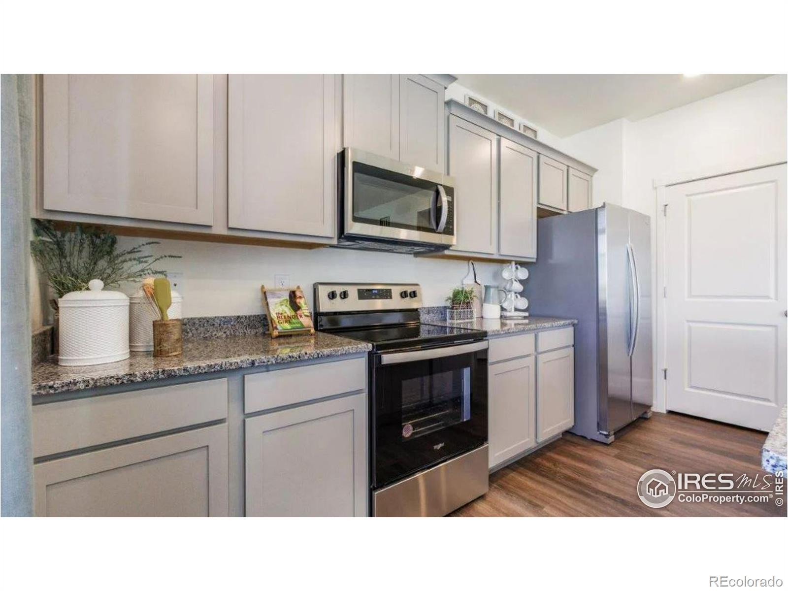 Excellent, open designed 4 bedroom floorplan included with a main floor Study/Flex Space. Contemporary white cabinetry, quartz countertops, a large island for entertaining and a walk-in pantry. This home comes fully loaded with front and backyard landscaping, a complete suite of Stainless-steel appliances, blinds throughout and front load washer/dryer. This home is also equipped with smart home technology, tankless hot water heater, 9' ceilings, cement fiber board exterior siding and complete radon mitigation system. Strategically located in the Mead/Firestone/Longmont area, offering quick access to I 25, shopping and entertainment. Lakeside Canyon has a large central park/playground area, 2 dog parks and miles of trails. Just steps away from the Peninsula state park! Come live playfully at Lakeside Canyon! ***Estimated Delivery Date: March. Photos are representative and not of actual property***