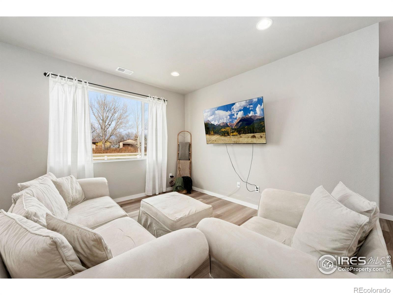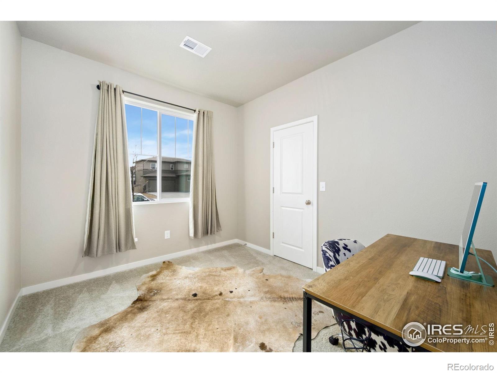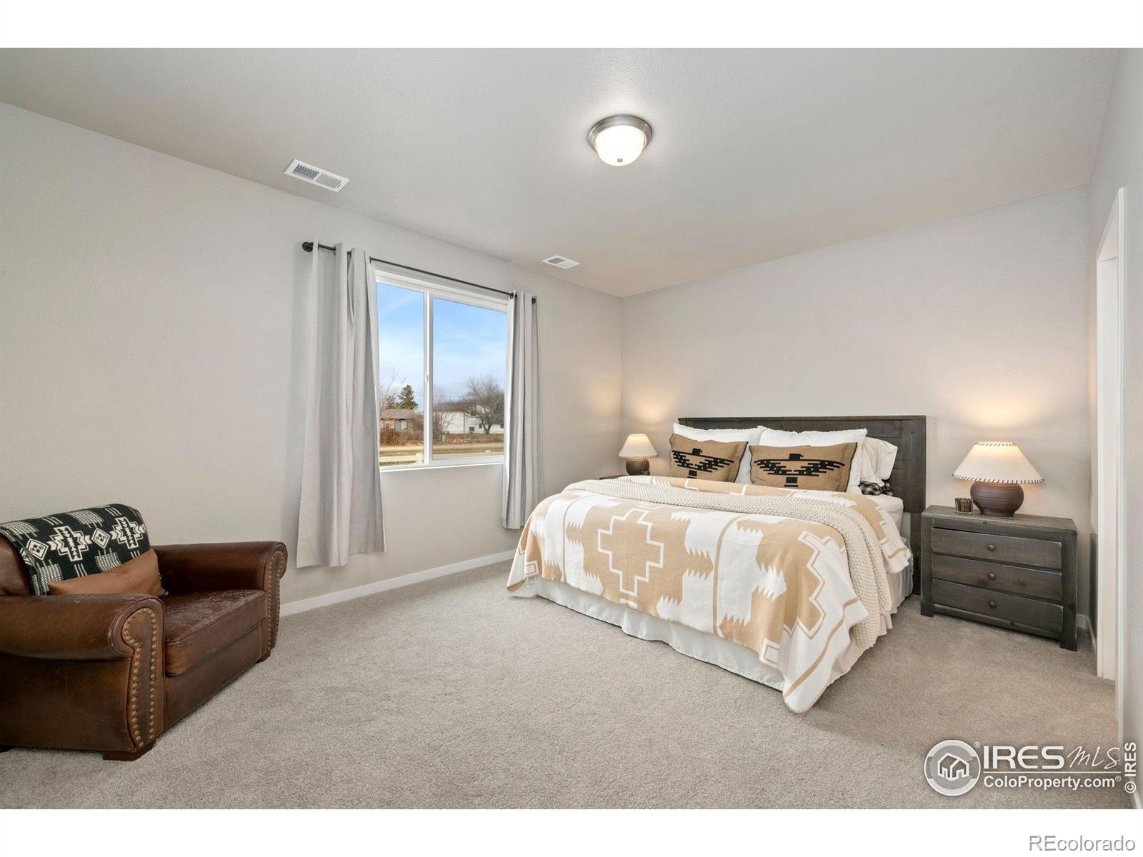 You'll fall in love with this easy-living, modern-style ranch home in nearly new condition with brand new carpeting in the primary bedroom and closet, all kitchen appliances included plus washer & dryer, backing to a greenbelt so no back yard neighbor and a feeling of spaciousness in the back yard. Great option for those upsizing from a condo or downsizing into one level living. Easy care luxury vinyl plank throughout the main living areas, crisp white trim and stylish two-panel interior doors make everything light and bright. Chef's delight in the kitchen featuring stainless appliances, granite counter tops, abundant cabinetry plus a pantry. The kitchen is illuminated with numerous can lights and the dining room has a fun light fixture. Retreat to your primary suite after a long day and unwind in the oversized shower. The large back patio overlooks the plush greenbelt and is a perfect spot for summer barbecues or relaxing with your favorite beverage. Full sprinkler system front and back with drip system serviced by non-potable water provided by the HOA. No back-yard neighbor is such a benefit! Three-car garage is 659 sqft and offers plenty of storage space along with room for two cars. This popular floor plan by Hartford was very well built and has been lightly lived in. You'll enjoy the easy access to Old Town Fort Collins, I-25 for commuting and exploring the great local shops and breweries popping up in Wellington! Home warranty included for added value and extra peace of mind.