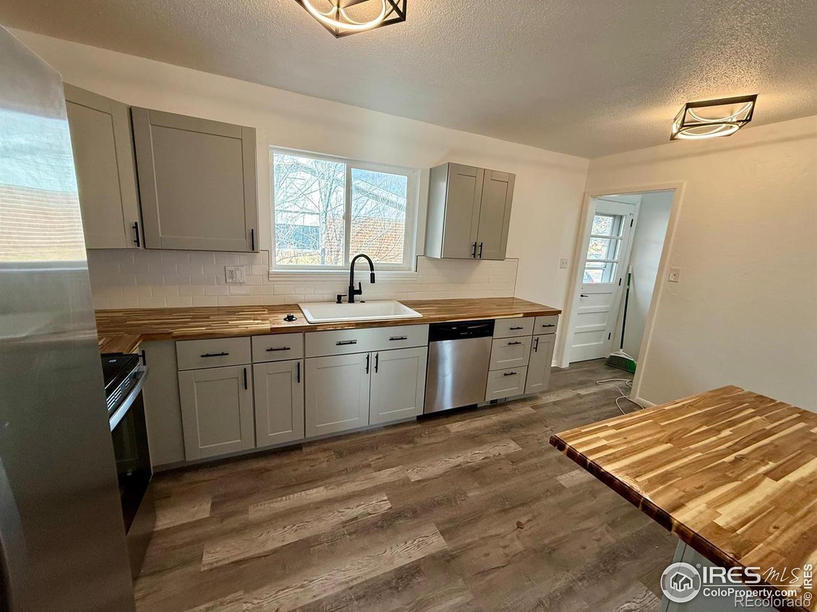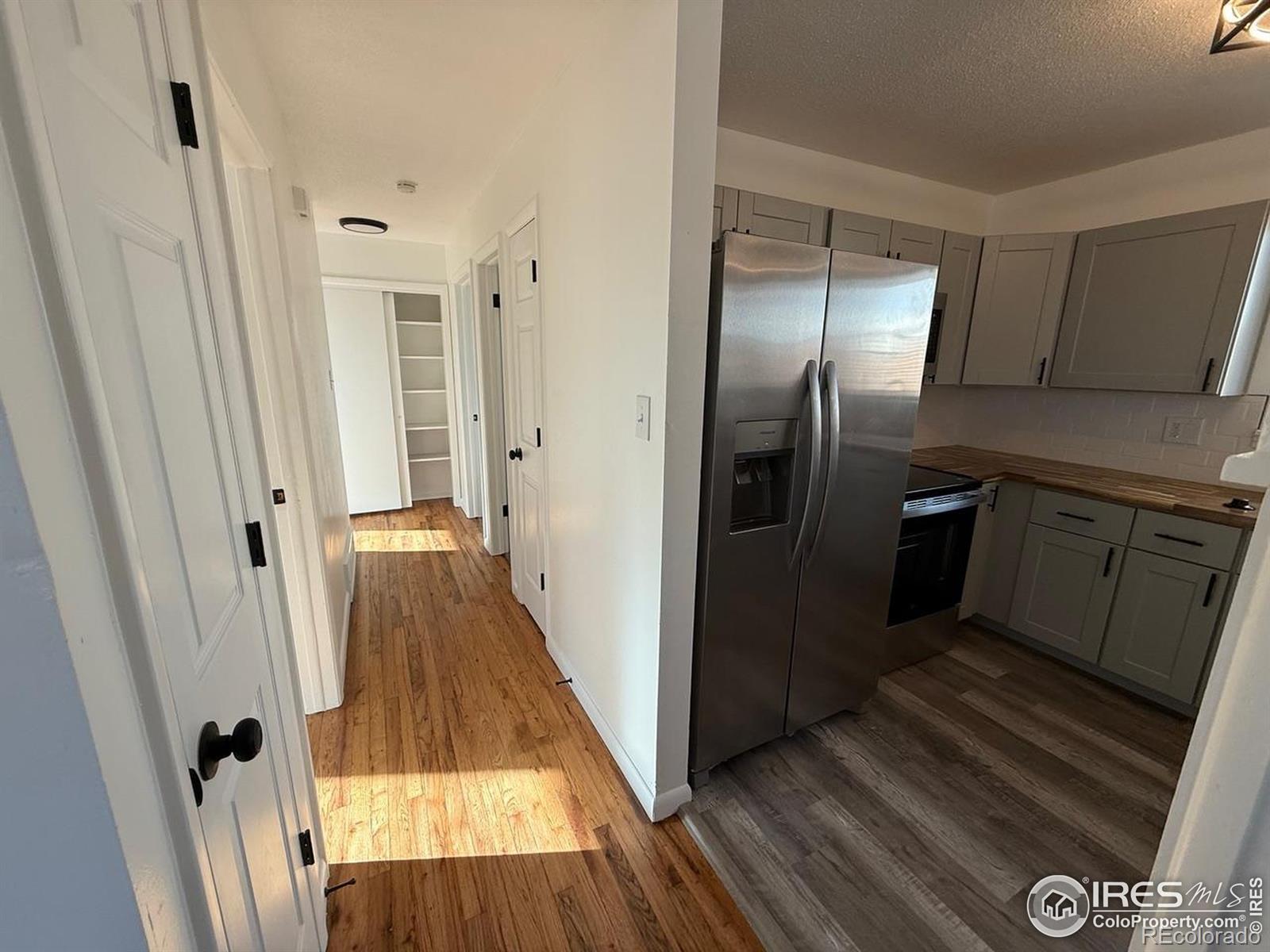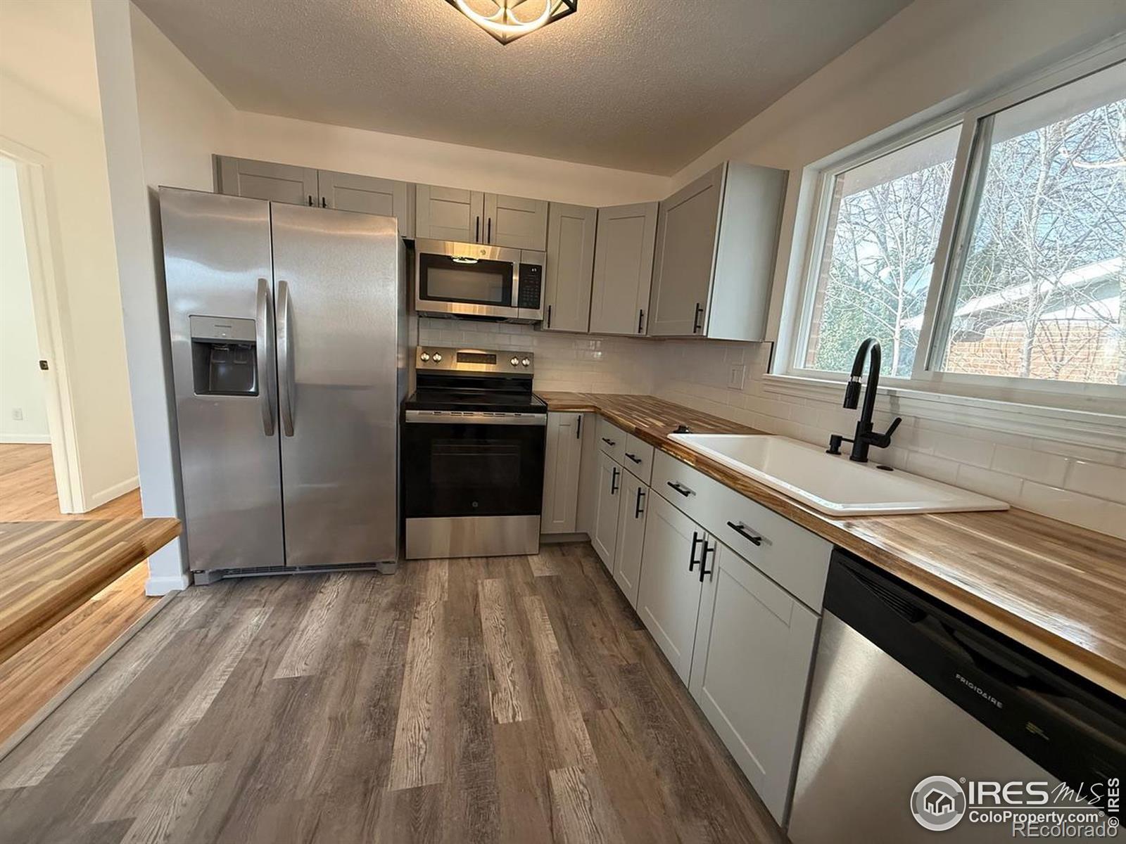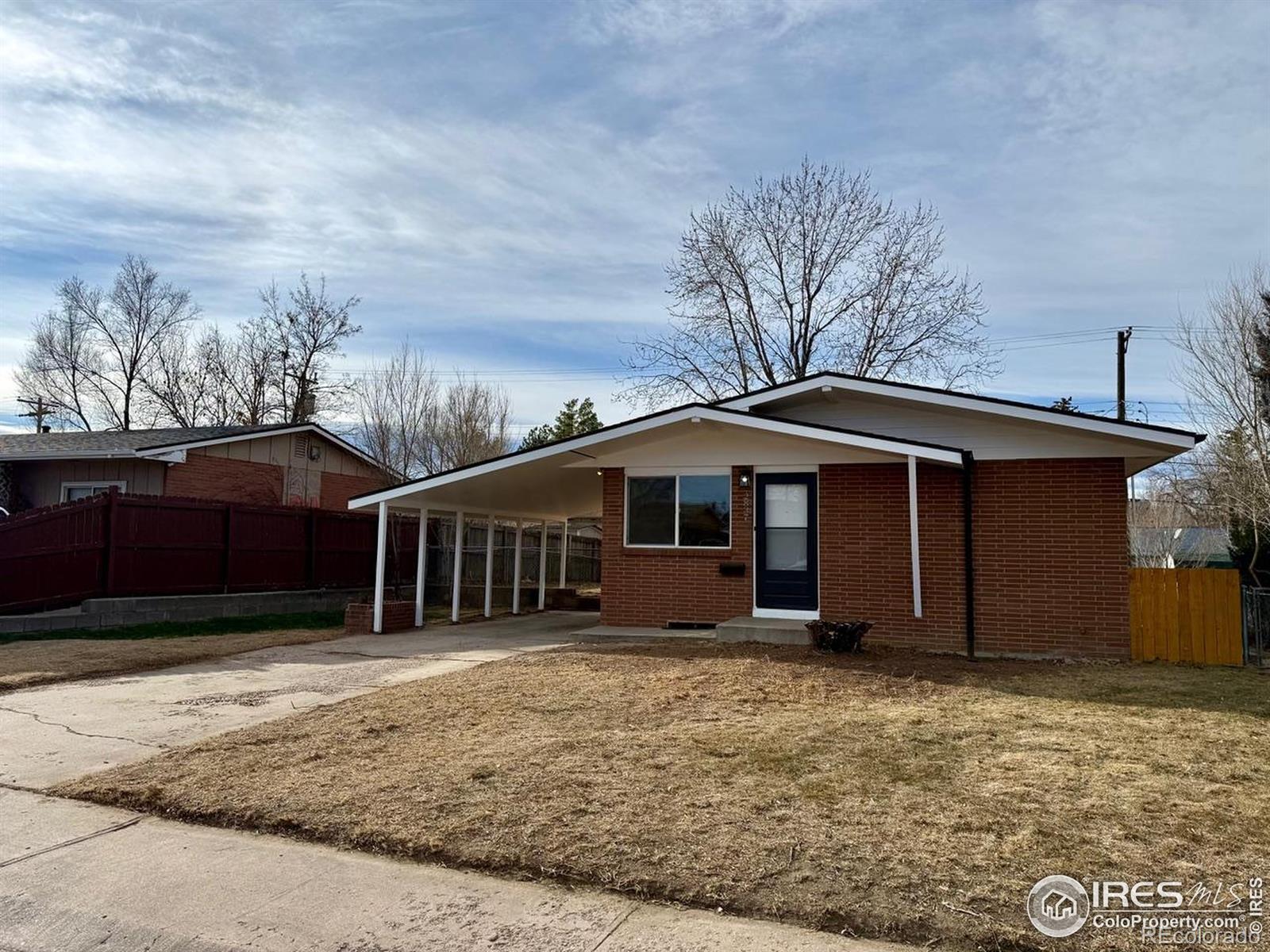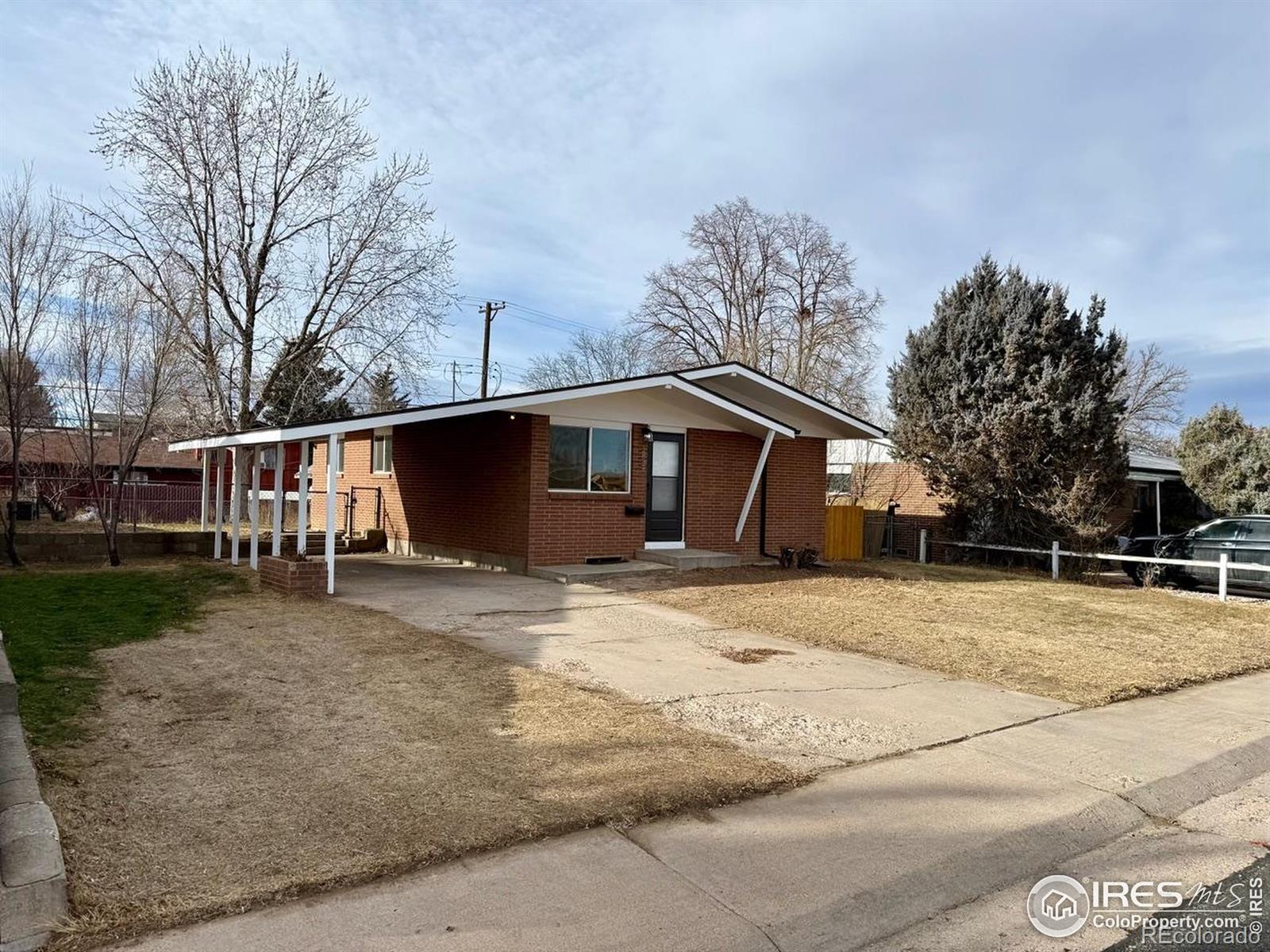 Fully remodeled mid century modern brick ranch in Greeley. New Kitchen cabinets, butcher block countertops and sink along with refinished hardwood floors. Updated bathrooms. New paint inside and out, new appliances, new light fixtures, new plumbing fixtures and updated flooring through out. Finished basement with large bedroom suite. This home is very clean and functional and located near parks, shopping and schools . Fully fenced in back yard with extra large carport for your vehicles. Seller is a licensed real estate agent in CO. Buyer should rely on their own school and measurement information.