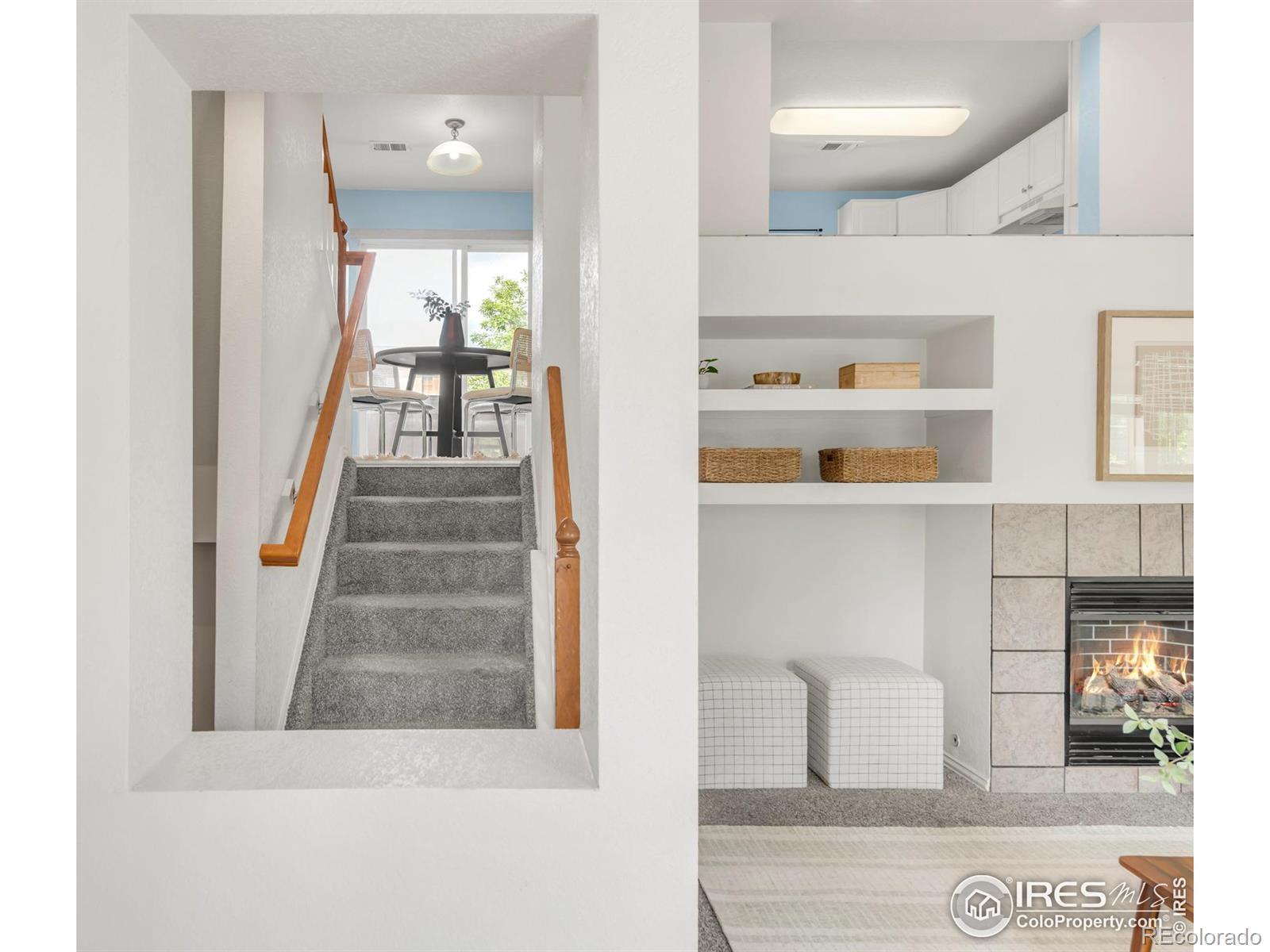LENDER INCENTIVE 1% YEAR RATE BUY DOWN // Beaming with inviting serenity, this townhome is perfectly positioned across from Town Square Park. Enjoy Colorado's sunshine from a spacious front patio with lush park views. Enter into a light-filled living room featuring soaring ceilings, tall windows and a cozy tiled fireplace. The bright dining area flows into a charming kitchen with crisp white cabinetry, generous counter space and sliding glass doors that lead to an expansive private patio - ideal for outdoor dining and relaxing evenings. The upper level offers a serene primary bedroom with an en-suite bath and a versatile secondary bedroom perfect for guests or a home office. A convenient laundry area with a washer and dryer set adds ease to daily routines on the same floor as the bedrooms. An attached 2-car garage provides ample storage space and an additional workshop. With easy access to neighborhood shops, the Belle Creek Family Center, community garden and just moments from dining and outdoor recreation, this townhome offers comfort, charm and connection in equal measure. **Lender incentive - This property includes a 1-year temporary interest rate buydown, reducing the buyer's interest rate by 1% for the first year (subject to acceptable offer terms). Buyer is not required to use of to purchase the home, but must use her services to receive the buydown incentive. Offer subject to lender qualification and program availability.
