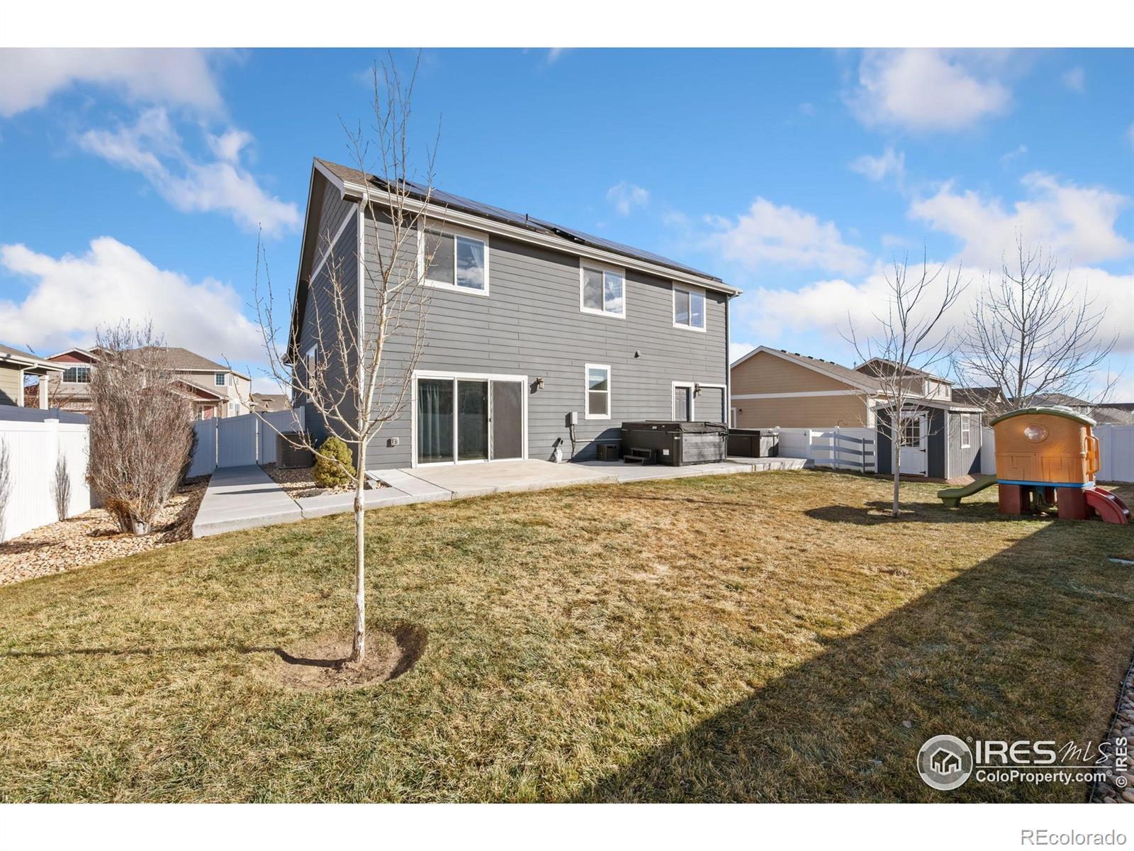 Welcome to 715 Mt. Evans, where value meets thoughtful upgrades! This beautifully maintained 2018 split-level home has been enhanced in all the right ways. Highlights include new stainless kitchen appliances, a GAS stove, new quartz trough sink and new plumbing fixtures, a climate-controlled garage with an additional climate-controlled man cave/shop/hobby room, ceiling fans in the upstairs bedrooms, and a new oversized AC evaporator and condenser. Outdoor upgrades shine with a poured concrete patio extension and sidewalk, dog run, 6x12 A-frame garden shed, and stunning sunrise and sunset views from the raised lot. The basement features a professional dog wash station, while 220V hookups are present for the garage heater and for the nearly brand new $20K hot tub, which may be included with the right offer. An oversized solar system-paid off at closing-means impressively low utility bills. Fresh flooring throughout features tile, luxury vinyl plank, and new carpet with padding. This home is truly move-in ready and packed with extras you won't want to miss!