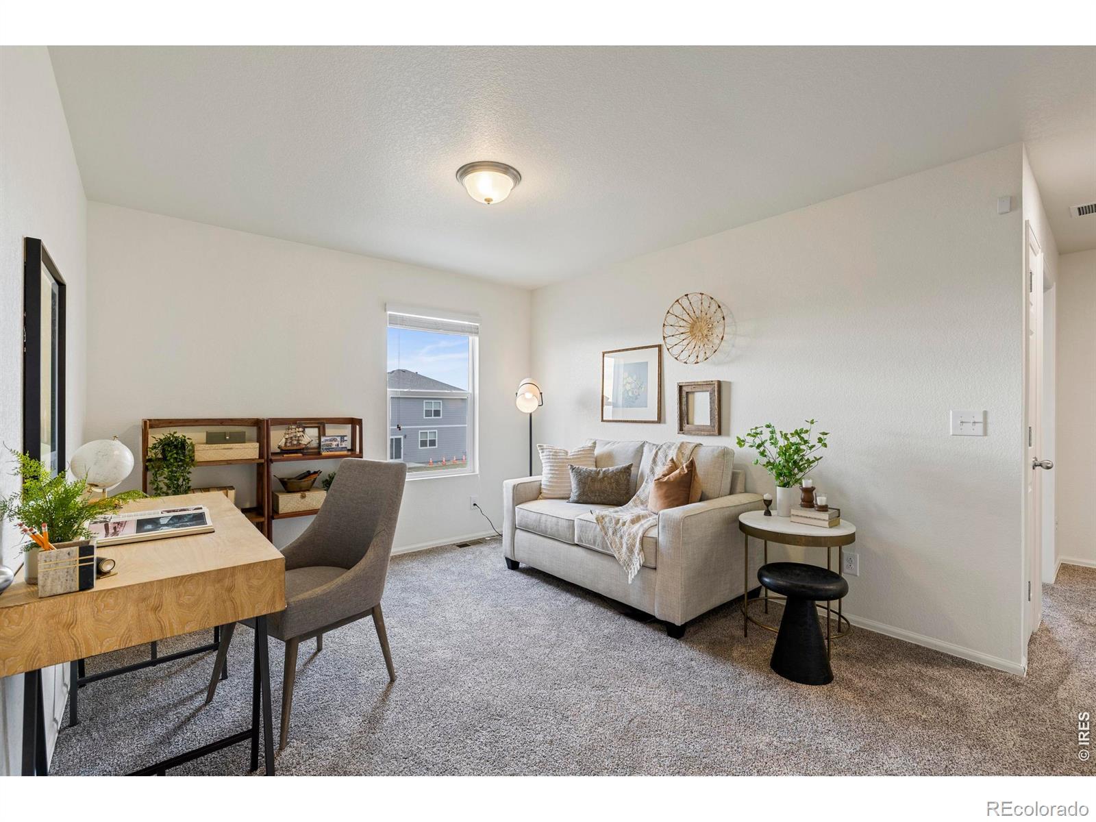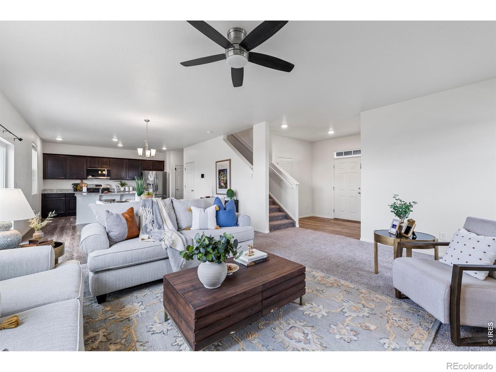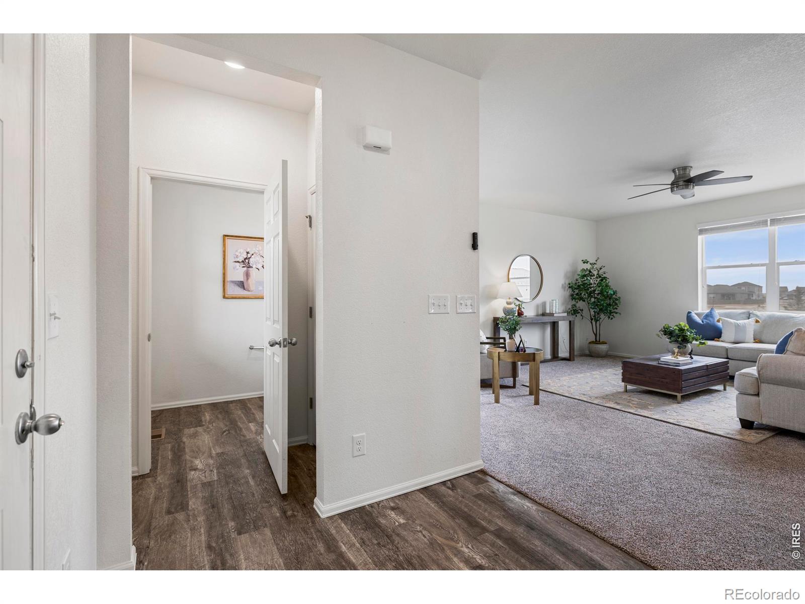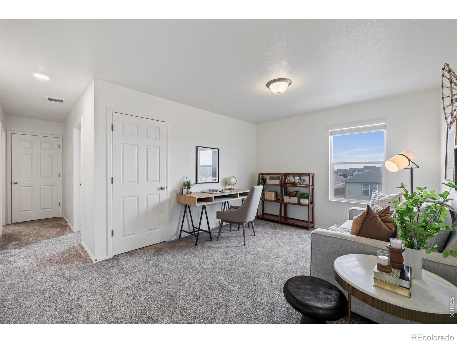 3 bedrooms PLUS a loft, 3 car garage, corner lot? Yes, please! Better than new - turnkey with ALL appliances included. Looking for exceptional storage, a functional floor plan, corner lot backing to Open Space? You've found it! New exterior paint and covered front porch are an inviting start, LVP flooring & fresh carpet welcomes you inside. Open floor plan is ideal for daily living & for entertaining, with space for homework at the counter or cooking for a crowd. The kitchen features granite countertops, gas range, ample cabinetry, and a pantry. A convenient mud room type closet, located off the garage owner entrance, is perfectly suited for hooks, coats, bags, or everyday overflow. Upstairs, this loft can flex: use as a playroom, office, gaming area, secondary family room, or even 4th bedroom. Soft, natural light fills the expansive primary bedroom while dual closets & a spacious bathroom complete the suite. Two additional bedrooms share the secondary bath with dual sinks. The laundry room, complete with washer and dryer, is located near all 3 bedrooms. With seven closets on the upper level alone, storage is plentiful throughout this home. An unfinished basement provides room for future expansion or use as a home gym. Outdoor space is pleasant and sunny for backyard BBQs or playing catch. Fully fenced, the home sides and backs to neighborhood green belt and is across the street from Open Space. New exterior paint, fresh carpet & 3 car garage. Storage Galore! All appliances included. Pre-inspected & move-in ready. This is easy Colorado living.