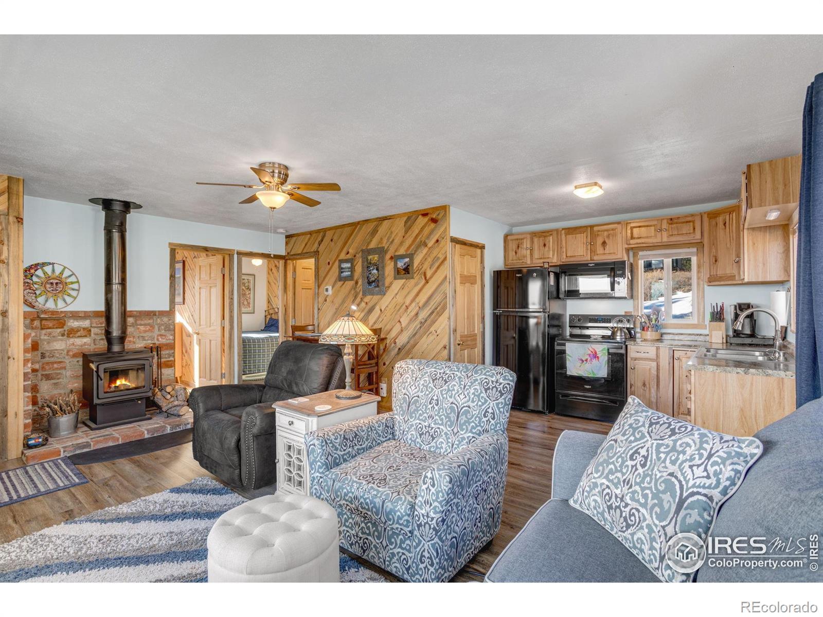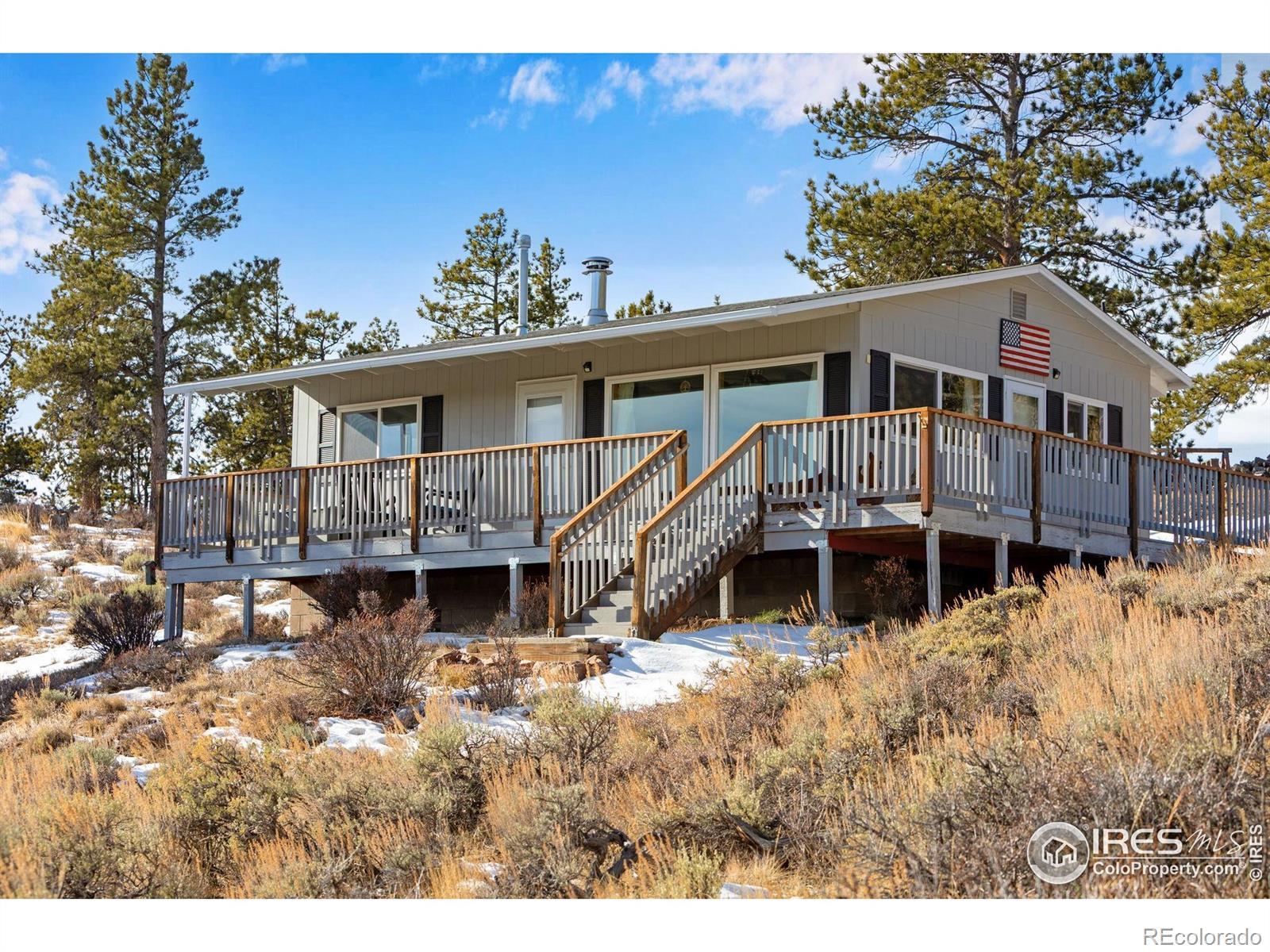 Properties like this-updated, well-equipped, and on over five acres with a great well, and furnace are a rare find in Red Feather Lakes. Red Feather Lakes is a secluded mountain village of about 426 residents, nestled on a granite shelf and surrounded by the Roosevelt National Forest. Known as Colorado's "best kept secret," this quaint and unruffled community offers a rare blend of peaceful solitude and small-town charm. Outdoor recreation is abundant, with over a dozen alpine lakes perfect for kayaking, fishing, and canoeing, along with year-round trails for hiking, horseback riding, off-roading, snowshoeing, and cross-country skiing. Wildlife sightings, scenic meadows, aspen groves, and stunning rock formations add to the natural beauty. Despite its remote setting, the village includes key amenities such as general stores, restaurants, a tavern, gas pumps, a library, hardware and outdoor shops. Nearby Crystal Lakes and Beaver Meadows Resort, this cabin provides an ideal mix of privacy and accessibility. This charming cabin sits on 5.52 acres and features 619 square feet of cozy living space, including two bedrooms and a 3/4 bath. Fully remodeled inside and out, it boasts a new roof, windows, mechanicals, plumbing, electrical, and appliances. New forced air heat furnace and a wood-burning stove warms this cabin, and the expansive wraparound composite deck offers sweeping views. Enjoy both sunrise and sunset from dedicated benches. Additional features include a 40-gallon water heater, a strong-producing well, 250-gallon propane tank, storage shed, and more. Call for a floor plan, full feature list, or to schedule a showing.