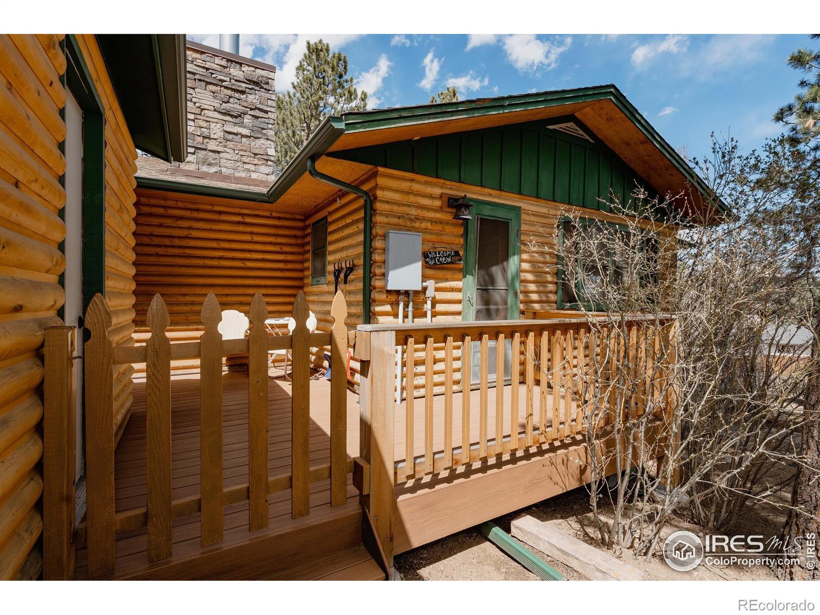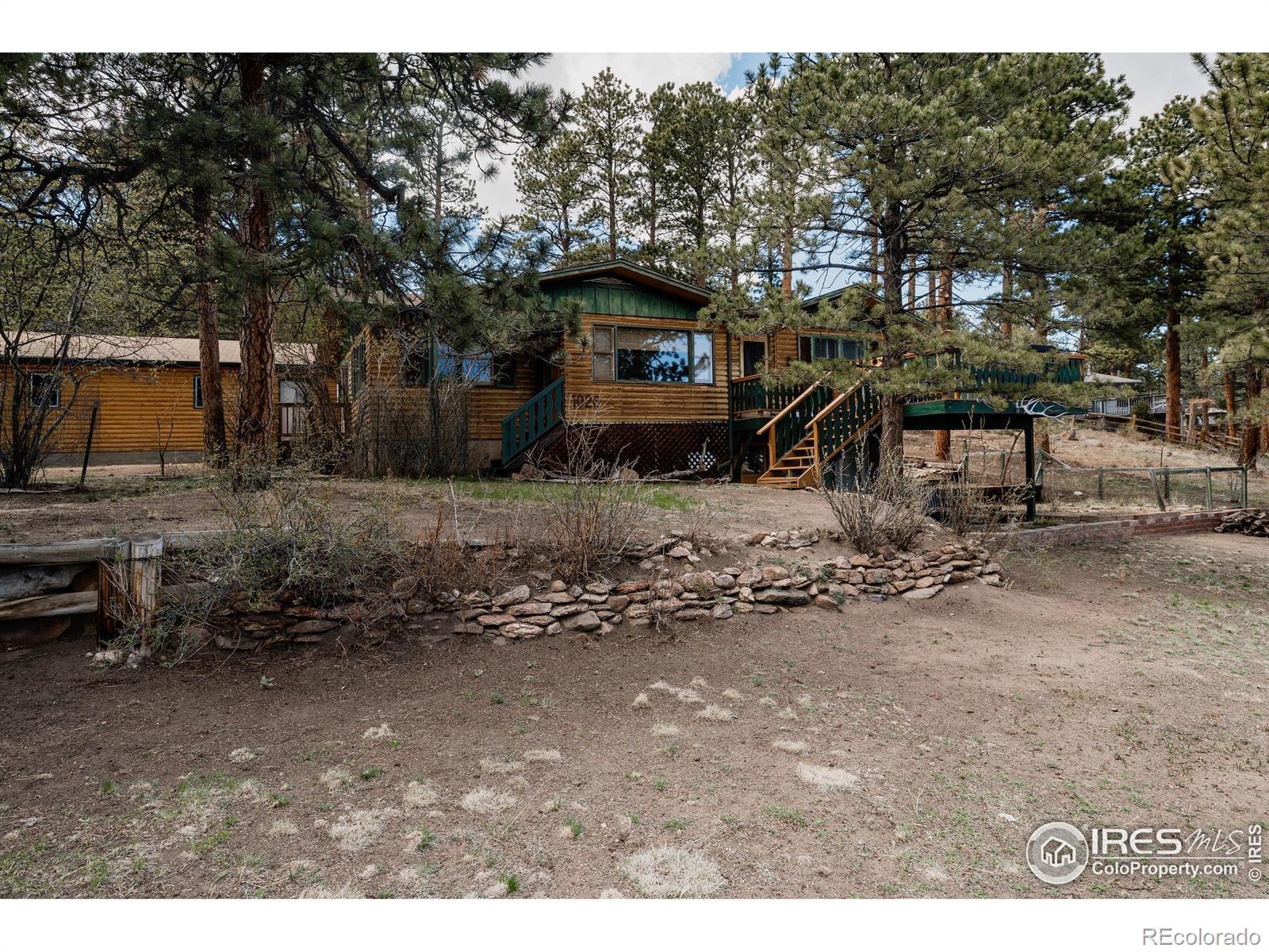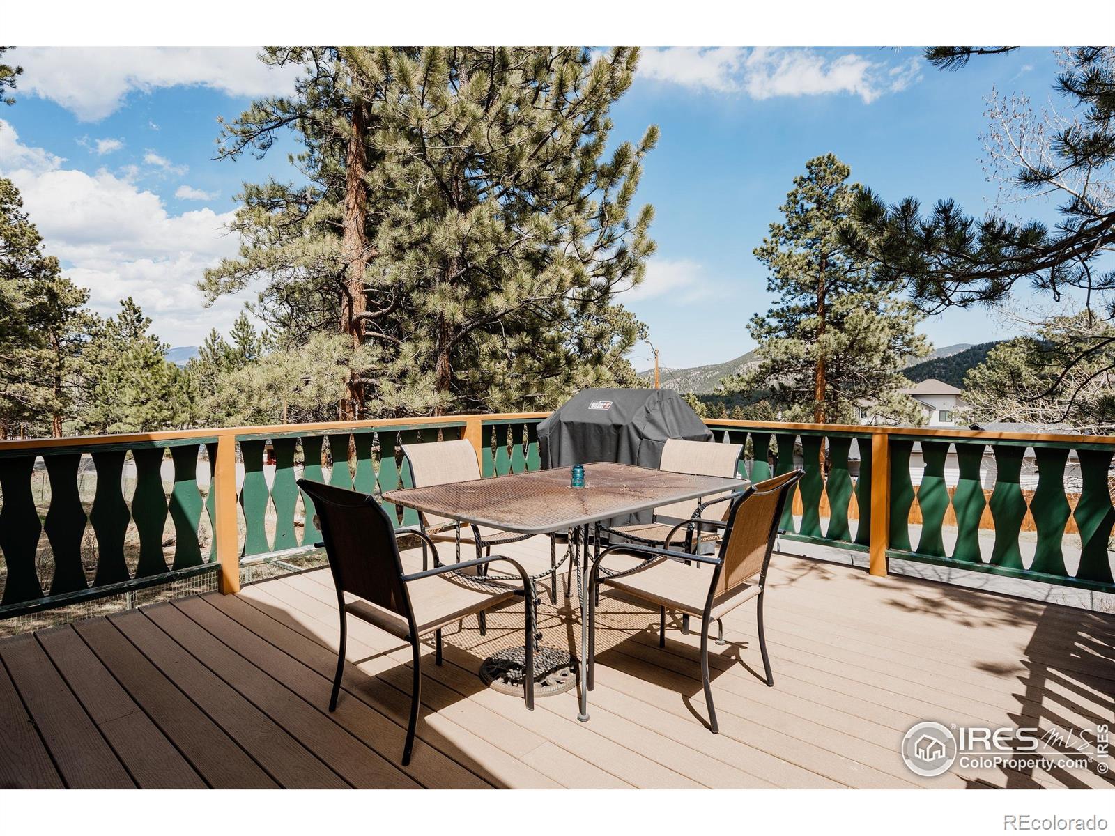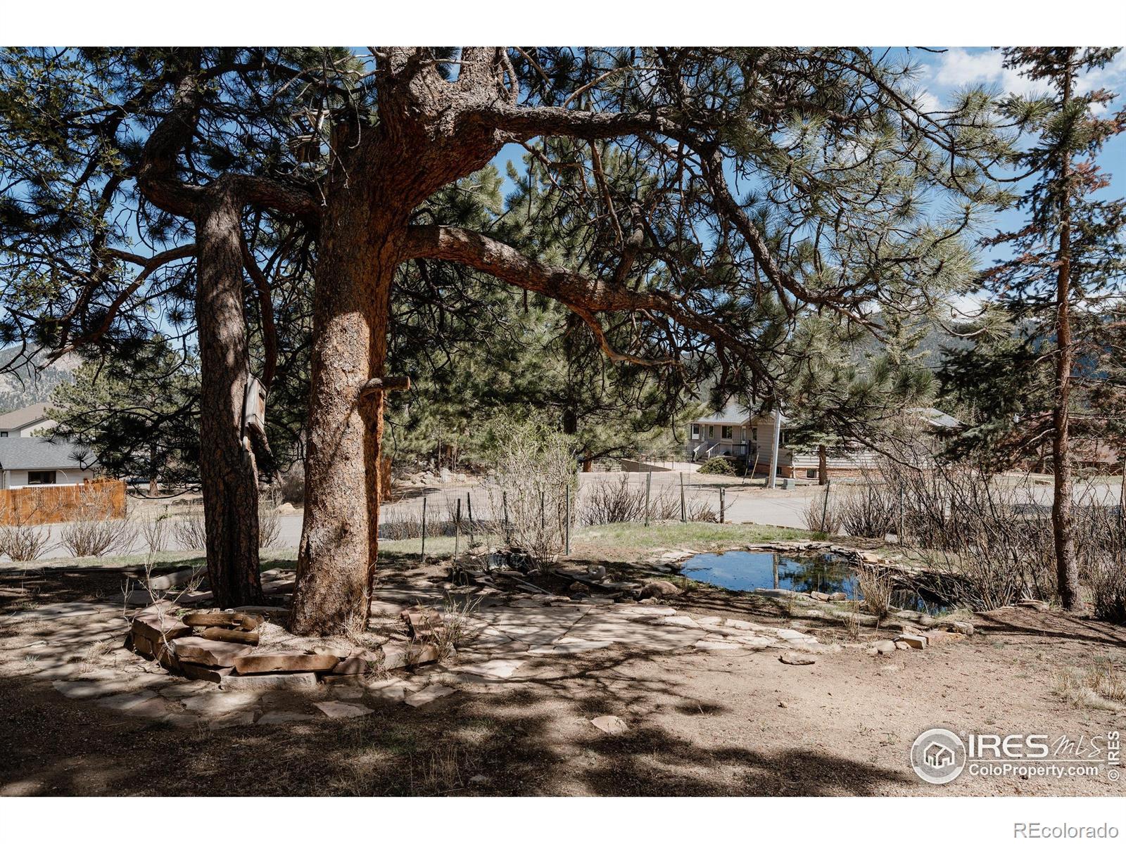 Tucked among towering pines on a wooded 0.71-acre lot in Village Acres, this thoughtfully updated ranch home offers the kind of mountain living people come to Estes Park for - quiet, comfortable, and surrounded by nature. Elk frequently wander through the neighborhood, and the Rocky Mountains feel like a constant presence just beyond the trees. The main level is warm and inviting, featuring wood floors, radiant heat, and a cozy fireplace, perfect after a day in the mountains. The efficient kitchen blends function and character with a gas range and a striking live-edge island, opening seamlessly to the dining and living spaces. Three bedrooms and two bathrooms on the main floor allow for easy, single-level living. Downstairs, the walkout lower level expands the possibilities with a spacious recreation room, a fourth bedroom, and a 3/4 bath. Step outside to the expansive composite deck, where mature pines, native grasses, and a spring-fed pond create a peaceful, private backdrop for morning coffee or evening gatherings. A detached two-car garage provides plenty of room for vehicles, outdoor gear, and mountain toys, while generous storage throughout keeps everything organized. Quiet, practical, and easy to enjoy, this is a home that fits the Estes Park lifestyle-close to nature, rich in character, and designed for both everyday comfort and weekend escape.