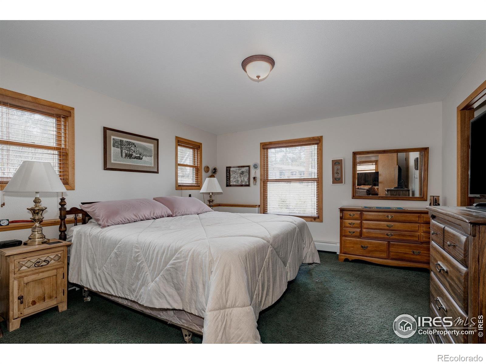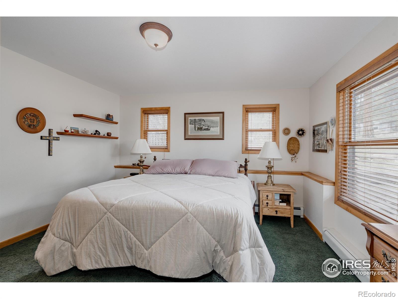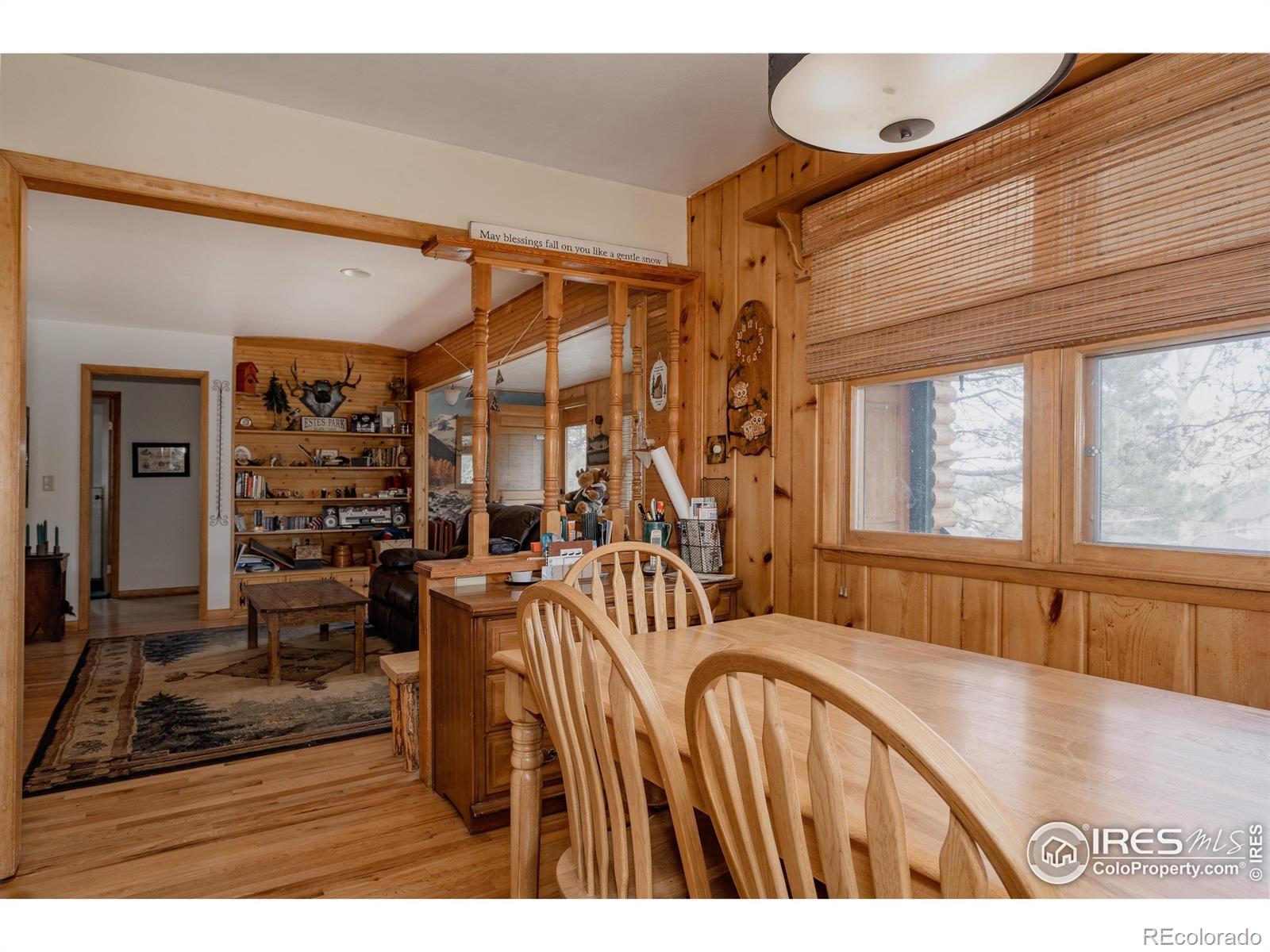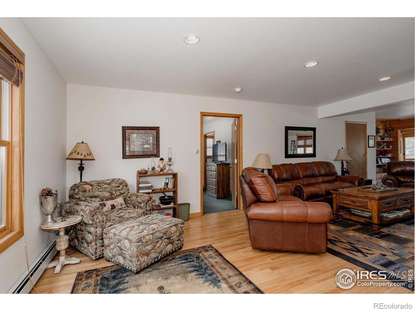 Tucked among towering pines on a wooded 0.71-acre lot in Village Acres, this thoughtfully updated ranch home offers the kind of mountain living people come to Estes Park for - quiet, comfortable, and surrounded by nature. Elk frequently wander through the neighborhood, and the Rocky Mountains feel like a constant presence just beyond the trees. The main level is warm and inviting, featuring wood floors, radiant heat, and a cozy fireplace, perfect after a day in the mountains. The efficient kitchen blends function and character with a gas range and a striking live-edge island, opening seamlessly to the dining and living spaces. Three bedrooms and two bathrooms on the main floor allow for easy, single-level living. Downstairs, the walkout lower level expands the possibilities with a spacious recreation room, a fourth bedroom, and a 3/4 bath. Step outside to the expansive composite deck, where mature pines, native grasses, and a spring-fed pond create a peaceful, private backdrop for morning coffee or evening gatherings. A detached two-car garage provides plenty of room for vehicles, outdoor gear, and mountain toys, while generous storage throughout keeps everything organized. Quiet, practical, and easy to enjoy, this is a home that fits the Estes Park lifestyle-close to nature, rich in character, and designed for both everyday comfort and weekend escape.
