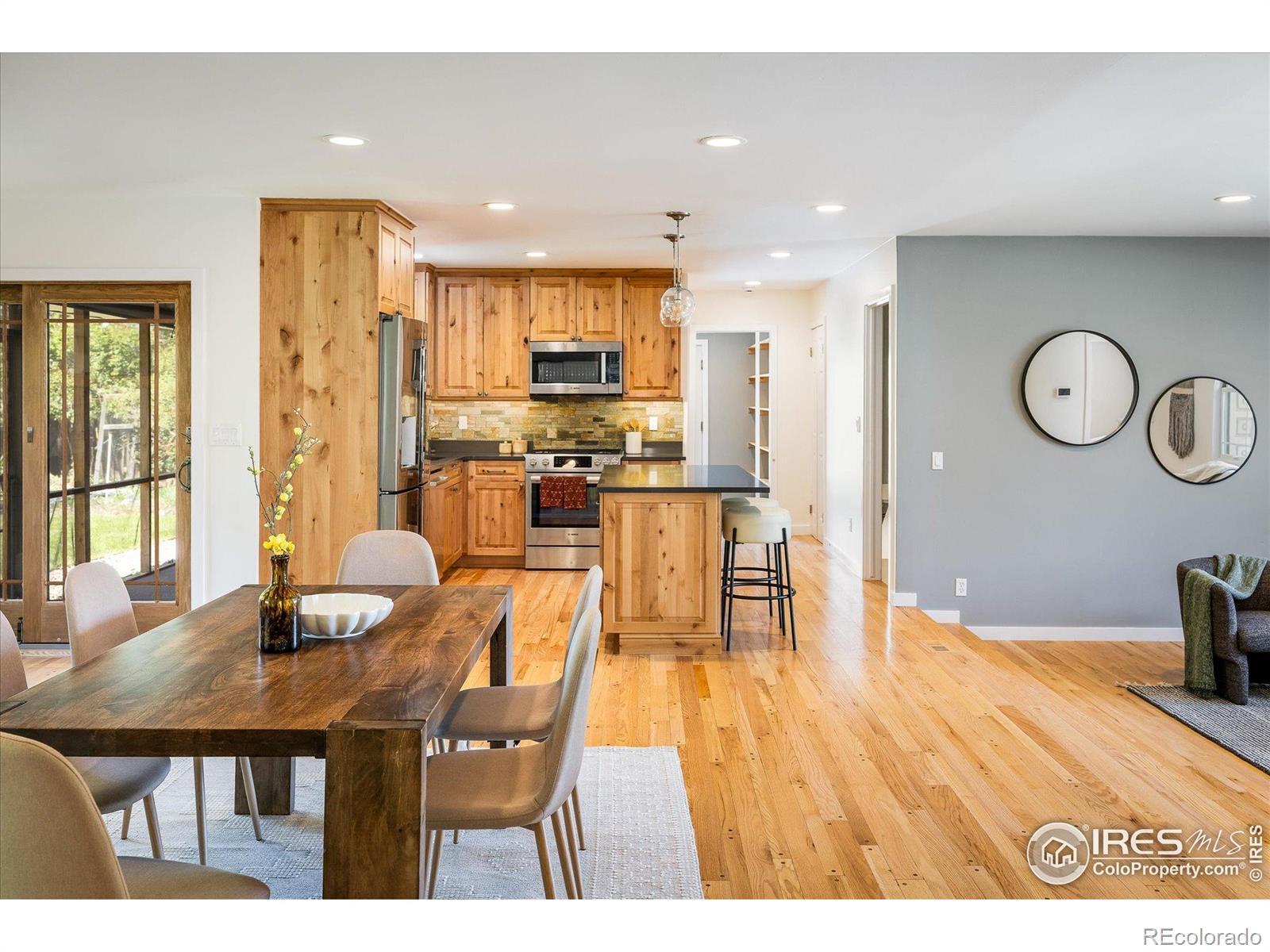 Tucked into a peaceful cul-de-sac in sought-after Arapahoe Ridge, 4760 Lee Circle is a beautifully updated ranch-style retreat offering indoor-outdoor living, flexible spaces, and an unbeatable Boulder location. Set on over 10,000 square feet, this home blends modern comfort with a generous layout and mature landscaping, creating a private yet connected setting just minutes from parks, trails, and shopping.Inside, you'll find two spacious living areas, including a bright and welcoming front living room with large windows and beautiful natural light. The open family room features a charming brick fireplace and adjoins the fully remodeled kitchen, where sleek finishes, a breakfast bar, and GE appliances make cooking and entertaining effortless. Just off the dining area, a light-filled sunroom provides the perfect place to relax, read, or enjoy views of the backyard year-round.The home includes three well-sized bedrooms and two updated bathrooms, all thoughtfully designed on one level for easy living. A new roof, updated flooring, and major system improvements-including a newer furnace, A/C, and radon mitigation-provide peace of mind and long-term value.Step outside to a lush, landscaped backyard featuring raised garden beds, mature plantings, and a patio with a pergola that invites you to relax or dine alfresco. Two detached sheds offer additional utility-one fully finished and ideal for a home office, art studio, or creative workspace. The partially finished basement level is perfect for a home gym, yoga studio, or additional storage.Located just blocks from Rock Park and the East Boulder Rec Center, and close to top-rated schools, grocery stores, and commuter routes, 4760 Lee Circle is a rare opportunity to own a spacious, move-in-ready home in one of Boulder's most established and well-loved neighborhoods. Whether you're looking for flexibility, charm, or connection to community, this home offers it all.