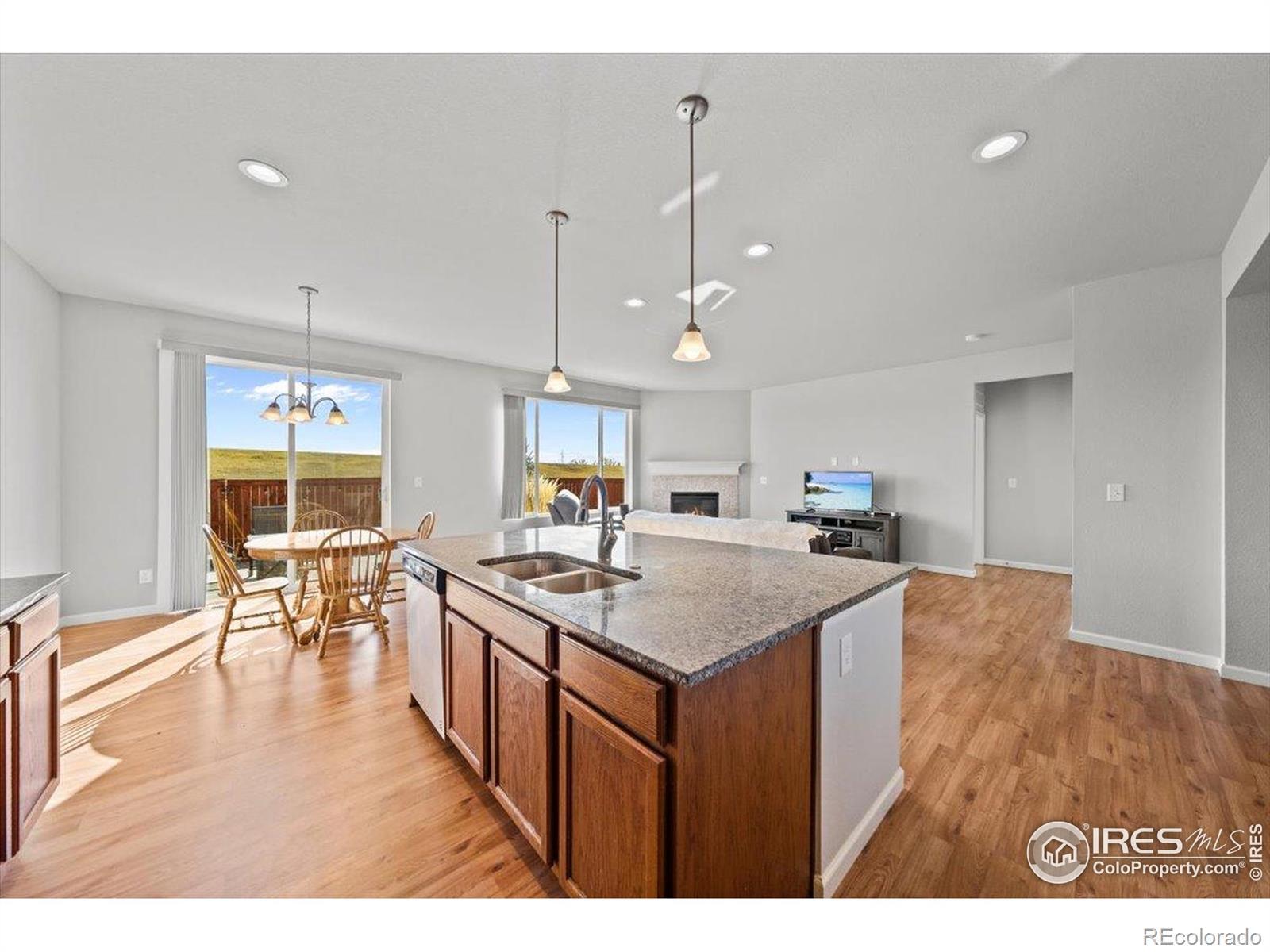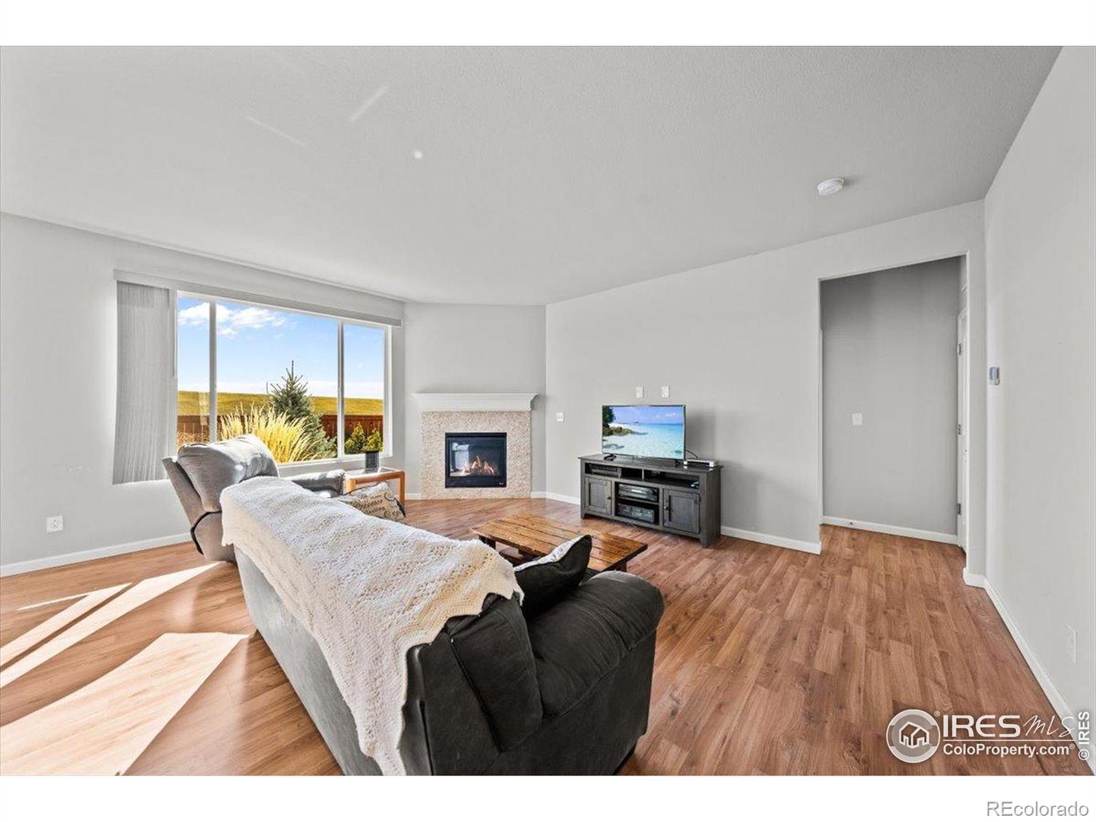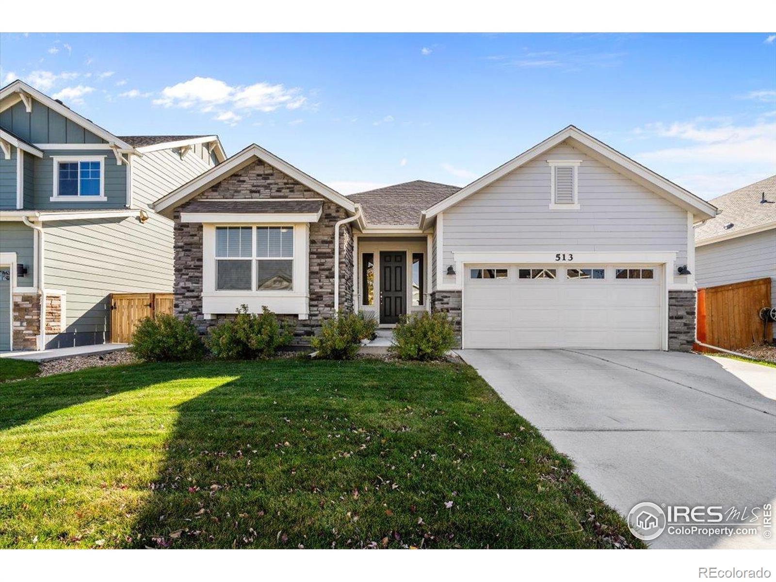 Welcome to 513 Grand Market Avenue, a beautifully appointed ranch-style home in the heart of Berthoud's desirable PrairieStar community. This modern and inviting residence combines stylish design with everyday functionality, offering open and bright living spaces perfect for entertaining or relaxing-all on one convenient level. The open-concept layout showcases a spacious living room anchored by a cozy fireplace, a dining area filled with natural light, and a contemporary kitchen featuring sleek cabinetry, stainless steel appliances, a large island, and pantry for extra storage. The primary suite offers a walk-in closet and a private ensuite bath with dual sinks and a glass-enclosed shower. Two additional bedrooms provide versatile space for guests, a home office, or hobbies, complemented by a full bath and a convenient laundry room nearby. Step outside to the fenced backyard with a patio boasting stunning mountain views, perfect for outdoor gatherings or quiet evenings under the Colorado sky. This great outdoor space backs directly to the neighborhood walking trail, ideal for morning strolls or evening jogs, with a community dog park just nearby for your furry friends. Located close to parks, additional trails, and community amenities, and just a short 10-minute drive to vibrant downtown Loveland, this home offers the perfect blend of small-town living and modern comfort. Experience a fresh, easygoing lifestyle at 513 Grand Market Avenue-where contemporary design meets Colorado charm.
