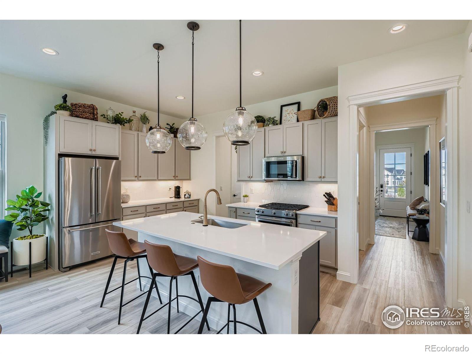 5.25% mortgage rate is assumable for qualified buyers. This stunning two-story home situated on one of the largest corner lots in the highly desirable Westerly community, includes 4 spacious bedrooms (including one on the main level), a dedicated home office, an upstairs loft, and elegant indoor and outdoor living spaces designed for comfort and flexibility. Enjoy the charming **wraparound front porch**, perfect for morning coffee or relaxing evenings, and the impressive curb appeal that comes with this oversized lot. Inside, the **light-filled open layout** features designer finishes throughout. The **gourmet kitchen** includes premium appliances, gas cooktop, air fryer, quartz countertops, a large island, and custom cabinetry, opening seamlessly to the dining and living areas-ideal for entertaining or everyday living. A **main-level bedroom** provides convenience and flexibility for guests or multi-generational living. The **private home office** on the main floor offers a quiet space for remote work or study. Upstairs, you'll find a **spacious loft**-perfect as a second living area, playroom, or media space. The *primary suite* features a spa-inspired bathroom with dual vanities, a walk-in shower, & 2 walk in closets. Two additional bedrooms and 2 full baths plus laundry room complete the upper level. Step outside to your *custom porcelain-tiled patio*, ideal for entertaining, outdoor dining, or simply enjoying Colorado's sunshine. The backyard is fully landscaped with thoughtful design for easy maintenance and year-round enjoyment.Westerly is known for its exceptional amenities, strong sense of connection, pool, hot tub, fitness center, events coordinator, future Town Center, shops, dining+.Schedule your private showing today! Seller is a licensed Real Estate Broker in Colorado and the listing agent. Optional fully furnished package available, featuring professionally curated high-end designer furnishings-move-in ready with exceptional style and comfort.