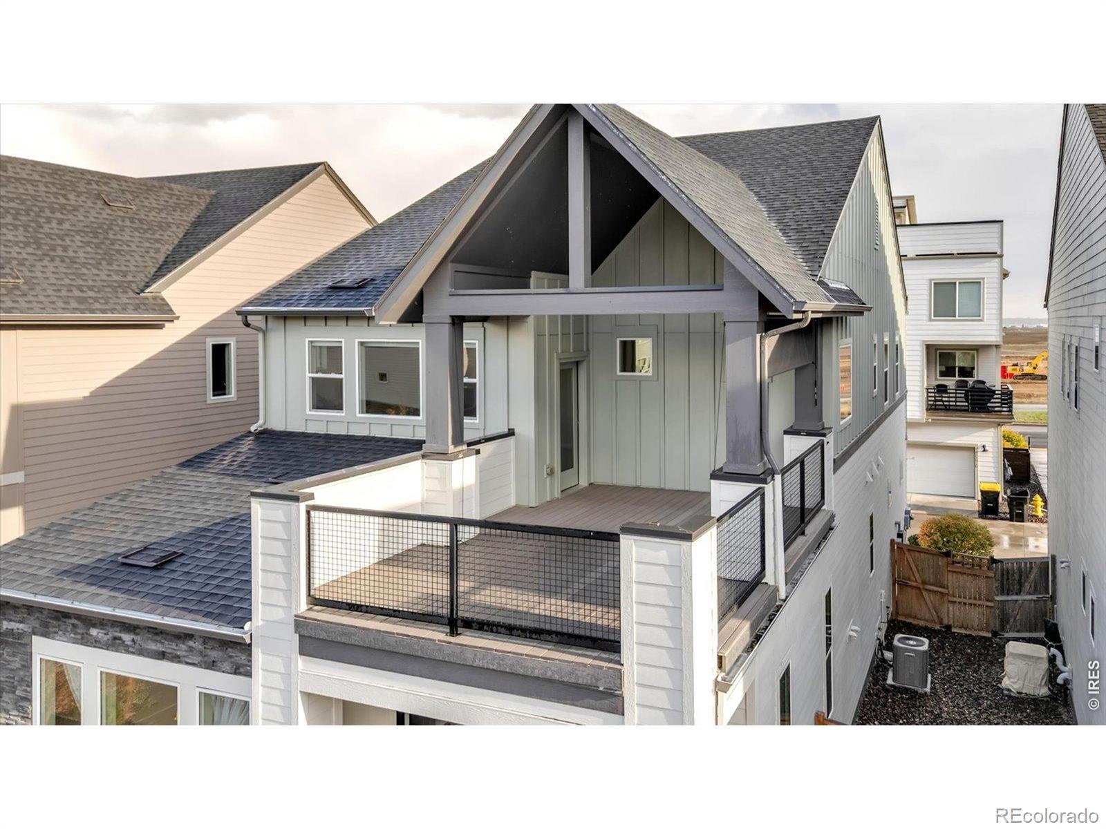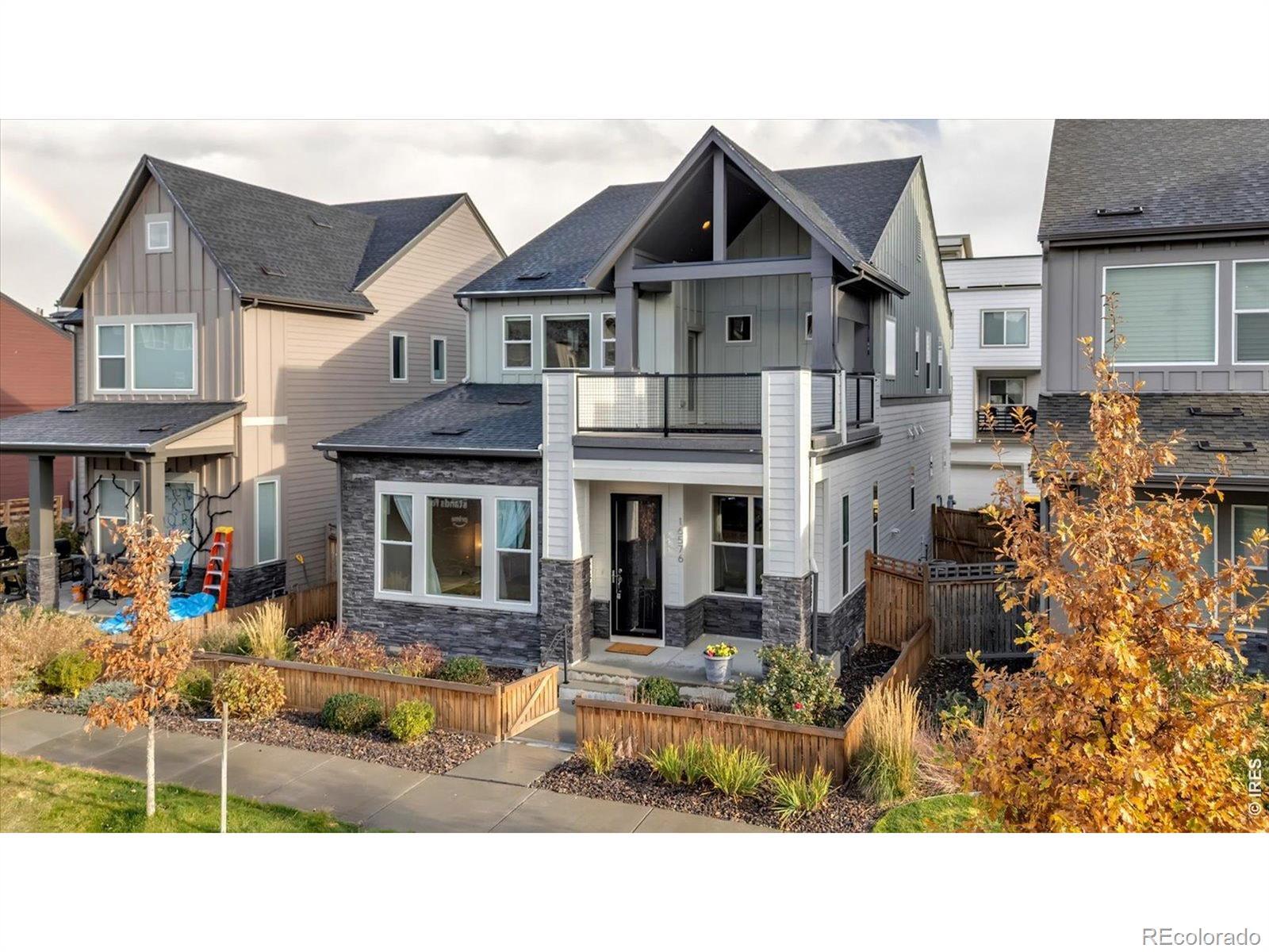 Immaculate, tastefully styled, 4-bedroom, 4 bath, two-story single family home - with a main level primary suite - in the popular Baseline neighborhood. Enter through your spacious front porch to a bright and open floor plan with 10 ft ceilings, engineered hardwood floors, and contemporary finishes. The impressive kitchen features a sizable pantry, quartz countertops, and a sleek island that opens to the welcoming living and dining rooms. Your generous primary suite offers a light-filled retreat with a private bathroom, and a walk-in closet so large it rivals many bedrooms! A main level laundry room and mudroom are adjacent to your oversized two-car garage. Upstairs, three more sizable bedrooms with walk-in closets along with a roomy loft ensure there's space for everybody and all their activities. Blur the definition of indoor-outdoor living each time you watch a storm roll in across the mountains and open space from your roughly 300 sqft second-story covered lanai. This lot is over 50% larger than the newer construction across Sheridan, and there's opportunity to improve the side yards for additional outdoor space. Solar panels and Powerwall are owned and included. Nearby to walking trails, parks, open space, groceries, and dining. Easy access to I-25 and E-470.