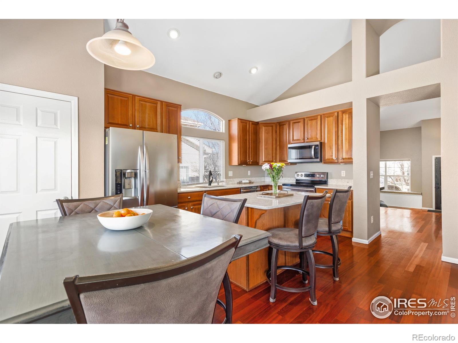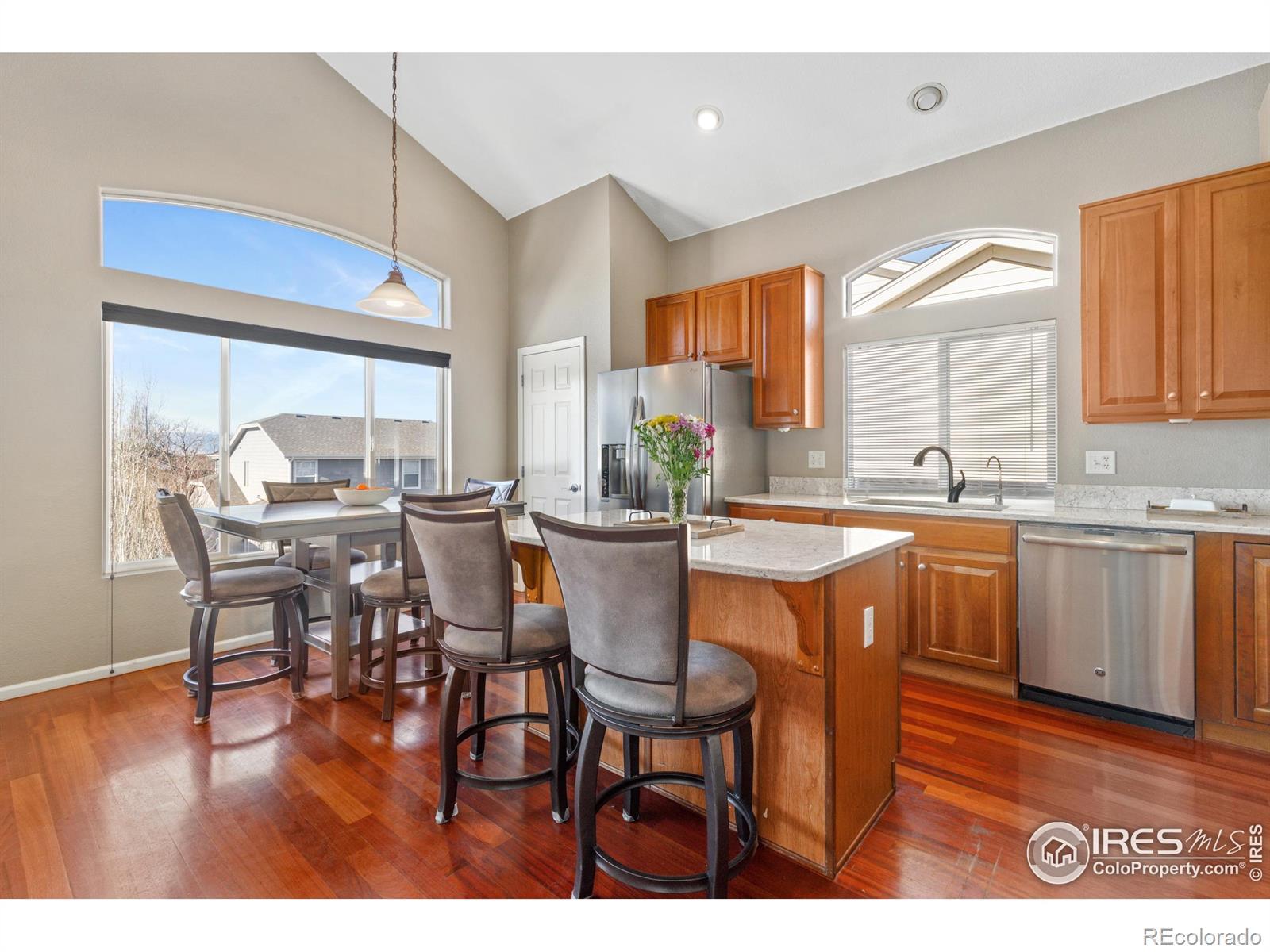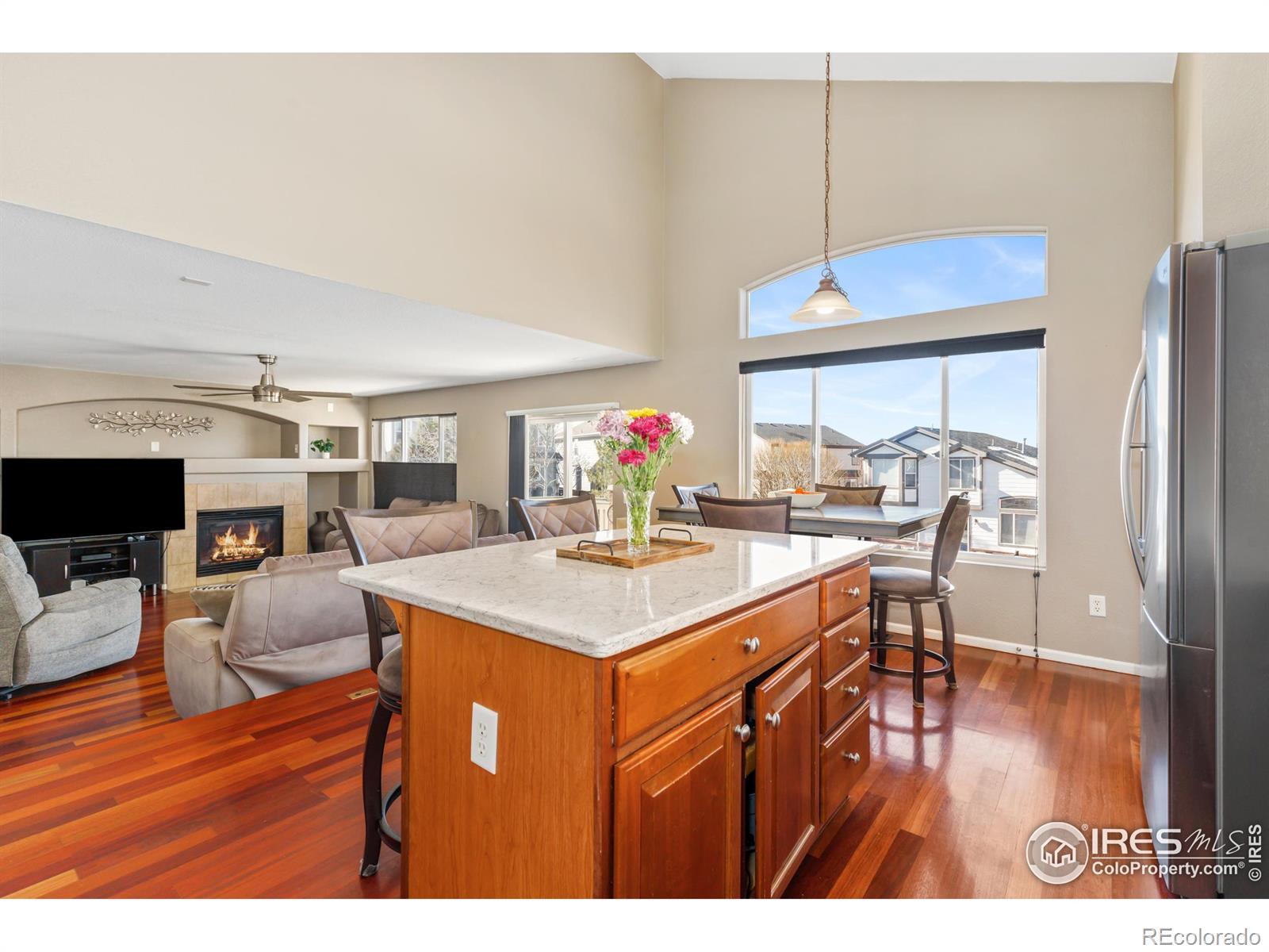 Welcome to 2274 Alpine Drive in Erie, a beautifully designed residence offering 4 bedrooms, 4 bathrooms, 2.5 car garage and 2,914 finished square feet in the highly desirable Vista Ridge community. The main level features an open and inviting floor plan, ideal for both everyday living and entertaining. The gourmet kitchen is highlighted by rich cherry cabinetry, a large center island, and seamless flow into the family room, creating a warm and functional gathering space. Step out onto the deck and take in sweeping mountain views, perfect for morning coffee or evening sunsets. Upstairs, the primary suite is a true retreat, showcasing stunning mountain vistas and a luxurious five-piece en-suite bathroom. Two additional generously sized bedrooms complete the upper level, offering flexibility for family, guests, or a home office. The walk-out lower level expands the home's versatility with a private family suite featuring a media room and adjoining wet bar, ideal for movie nights, entertaining, or multi-generational living. Direct access to the backyard enhances indoor-outdoor enjoyment and adds to the home's livability.Located in Vista Ridge, residents enjoy access to the Colorado National Golf Course, clubhouse, two community pools, parks, and miles of trails. With convenient access to I-25, as well as nearby shopping and dining, this home offers an exceptional balance of comfort, convenience, and Colorado lifestyle.
