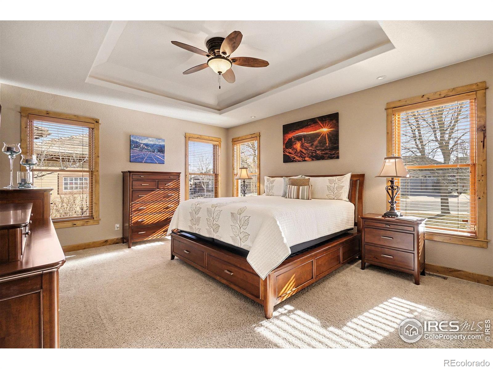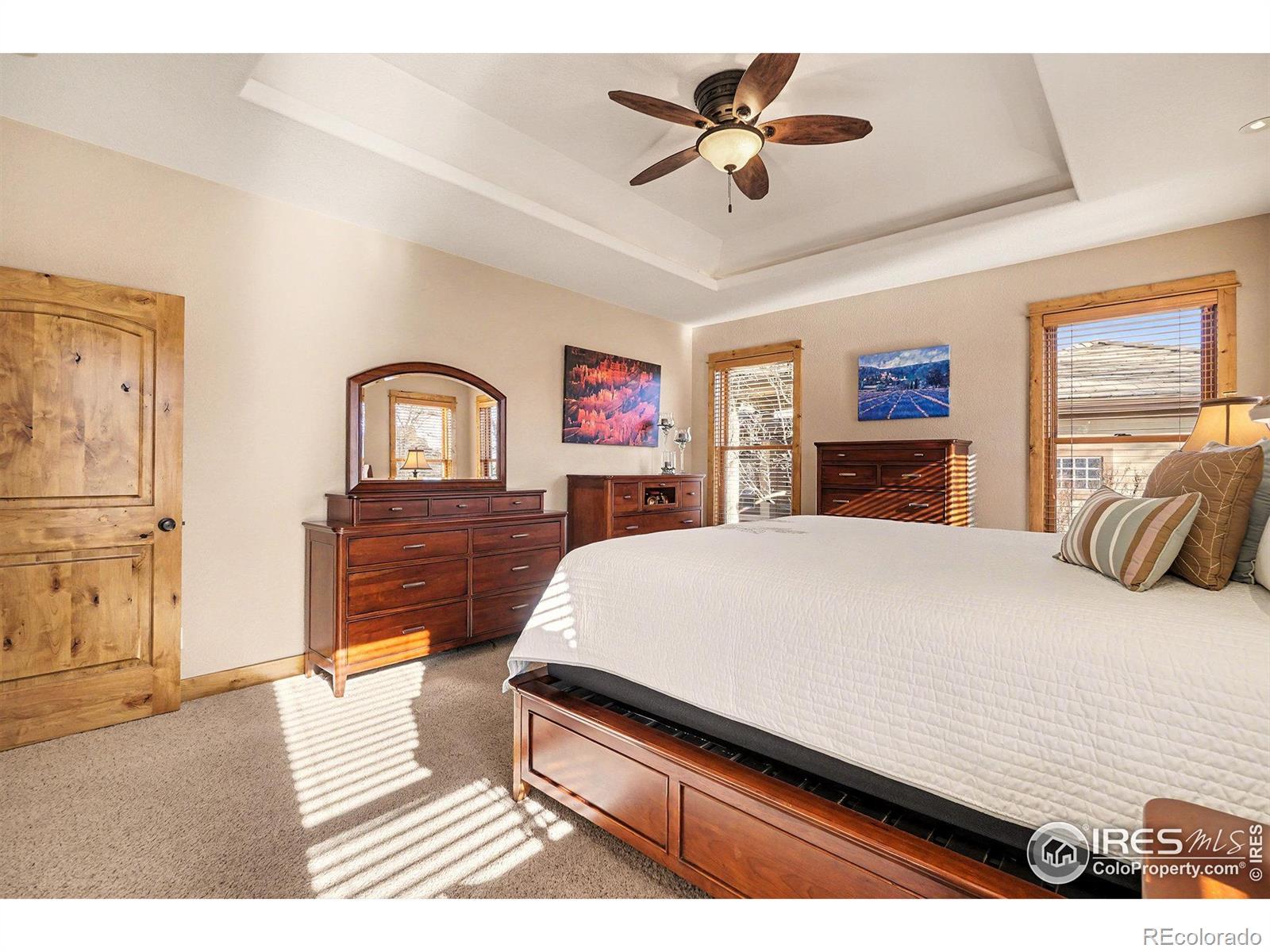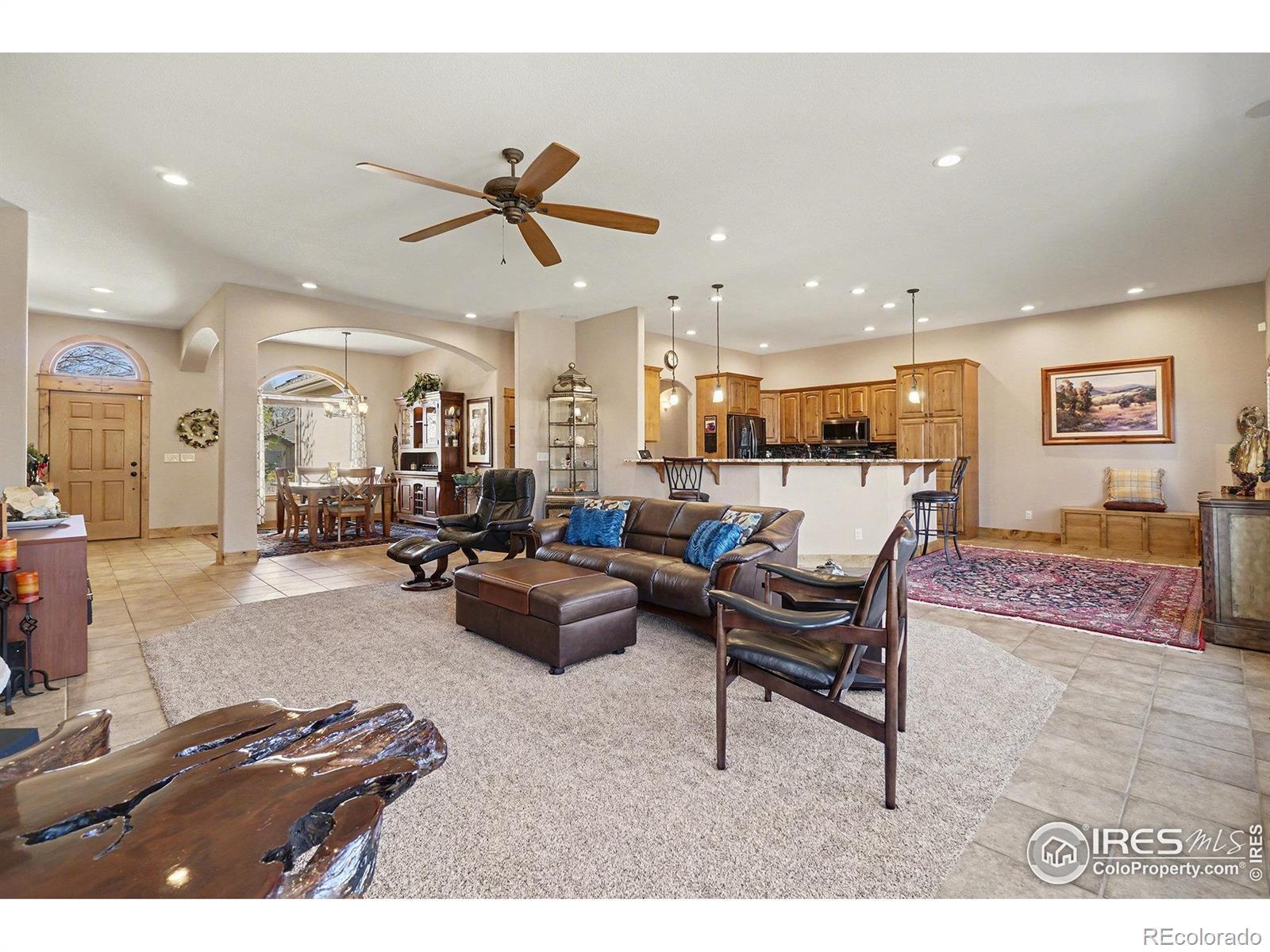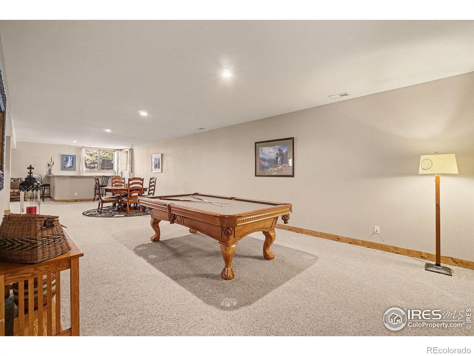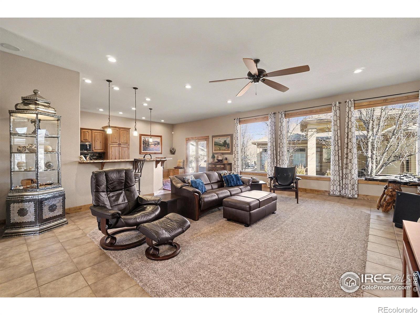 NO METRO TAX! Welcome to an exceptional ranch-style home in The Reserve at Mariana Butte, one of Loveland's most sought-after golf course communities. Set on the quiet western side of the neighborhood and directly across from a 77-acre conservation easement, this property offers a rare combination of privacy, views, and access to premier outdoor amenities.Inside, the home is filled with natural light and showcases tall ceilings, Knotty Alder wood accents, and modern LED recessed lighting throughout. The open main-level design is both inviting and functional, centered around a gas fireplace with a stone surround and custom built-ins - perfect for everyday living or entertaining.The kitchen has been tastefully updated with granite countertops, a breakfast bar, tile backsplash, gas range, and stainless steel appliances, many of which include a transferable warranty. The primary suite is privately positioned in its own wing and features a tray ceiling, a spacious walk-in closet with custom organization, and a luxurious five-piece bath with granite finishes.Two additional main-level bedrooms, a full bathroom, powder room, and dedicated laundry room complete the main floor. Downstairs, the fully finished basement offers expansive additional living space, including a large bonus room with wet bar, two conforming bedrooms, a full bathroom, and generous storage.Additional highlights include an attached three-car garage and a beautifully landscaped backyard with mature trees and a spacious patio - ideal for relaxing or hosting gatherings. Residents enjoy an unbeatable location near the Mariana Butte 18-hole golf course, clubhouse dining, and the Morey Wildlife Reserve, where elk and other wildlife are frequent visitors.Outdoor enthusiasts will appreciate the close proximity to Boedecker Lake, Devil's Backbone Open Space, Oxbow Natural Area, and miles of hiking and biking trails. The Loveland 21-mile recreation trail system begins right outside the neighborhood.