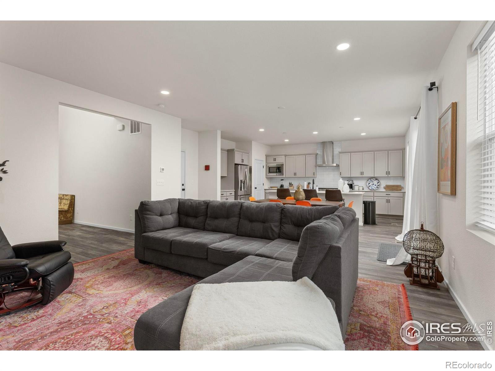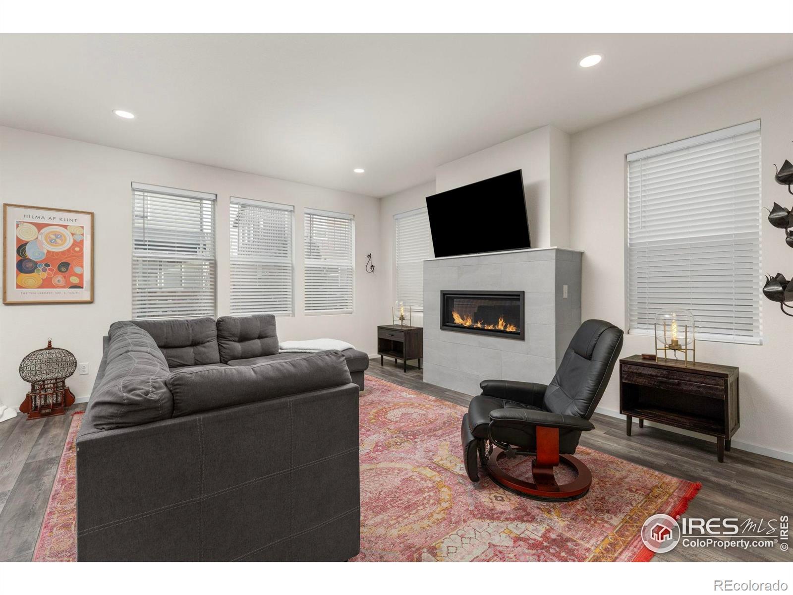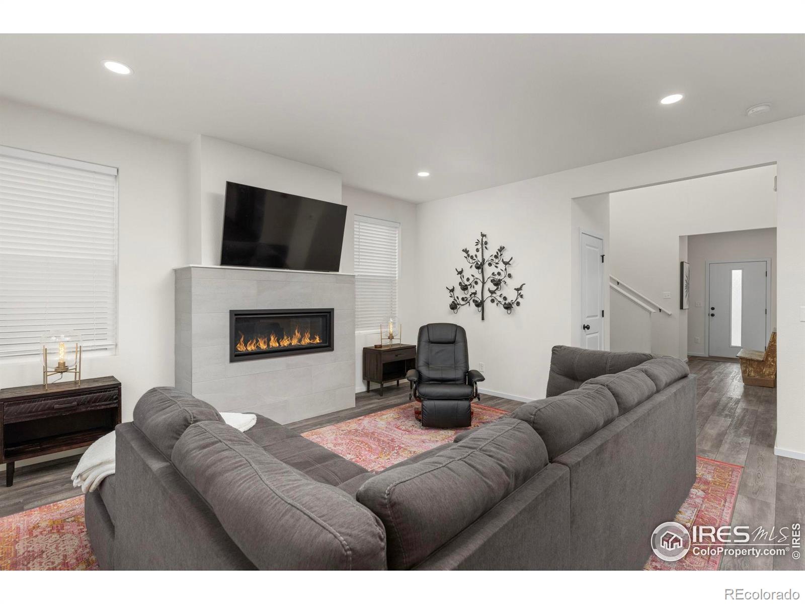 Bright and sunny single owner home located in one of the city's most desirable new resort style neighborhoods with easy access to Old Town, Poudre River White Water Park, I-25 and more. The furnishings are also negotiable as well. All you have to do is move in. The welcoming south facing covered front porch, walkway and driveway are advantageous especially in the wintertime. A bonus is the streetlight out front providing security and safety for you, your family and your guests. This floorplan is perfect. It has a striking spacious two-story entrance hall with clerestory windows above bringing in lots of natural light. There's a convenient powder bath and coat closet right off the front door. The stately open staircase to the right leads you upstairs to the bedrooms or just go straight ahead into the open concept great room at the back where the kitchen living and dining rooms open to the shady patio and tree lined backyard which will make you feel right at home. The gas fireplace and TV are a focal point here and there's gorgeous luxury vinyl planking throughout the entire main floor plus in the bathrooms above. The kitchen connects with the mudroom space and leads to the oversized garage. It has lots of beautiful painted Shaker style soft close maple cabinetry with 42-inch uppers and crown molding. Also, it has elegant Blanco Matrix Quartz countertops with stainless steel appliances including a 5-burner gas stove and oven with a stylish hood vent above. Upstairs the large primary suite has an impressive walk-in closet on one end and a big luxury ensuite bath on the other end with a jumbo-sized double vanity, quartz counters, loads of painted maple cabinetry and a double linen closet with the laundry room nearby. The other 2 bedrooms and the full third bathroom are also upstairs. Downstairs in the basement is a finished family room, 2 storage rooms and all the mechanicals. It's better than new and ready for you. Set up a showing today!