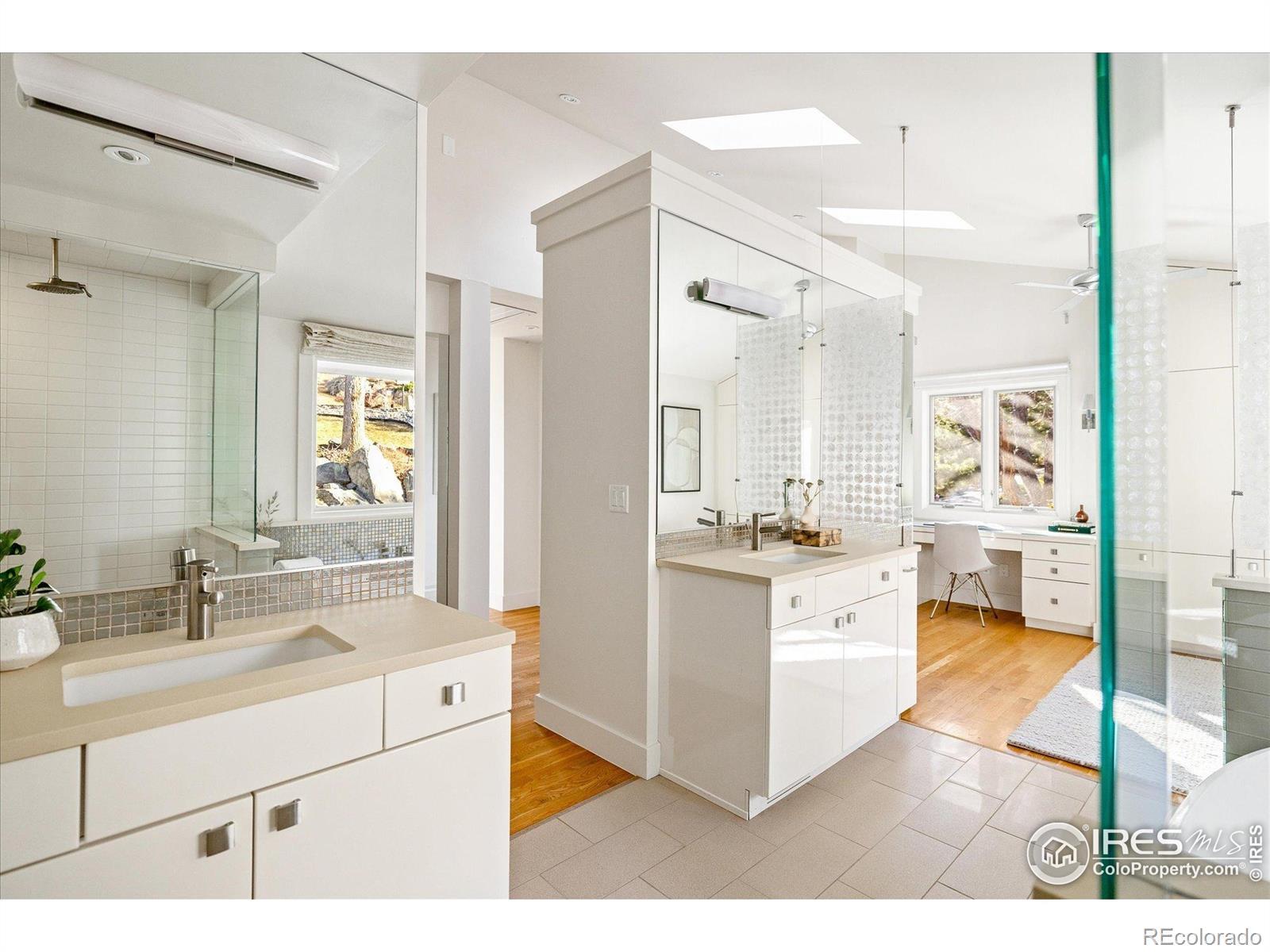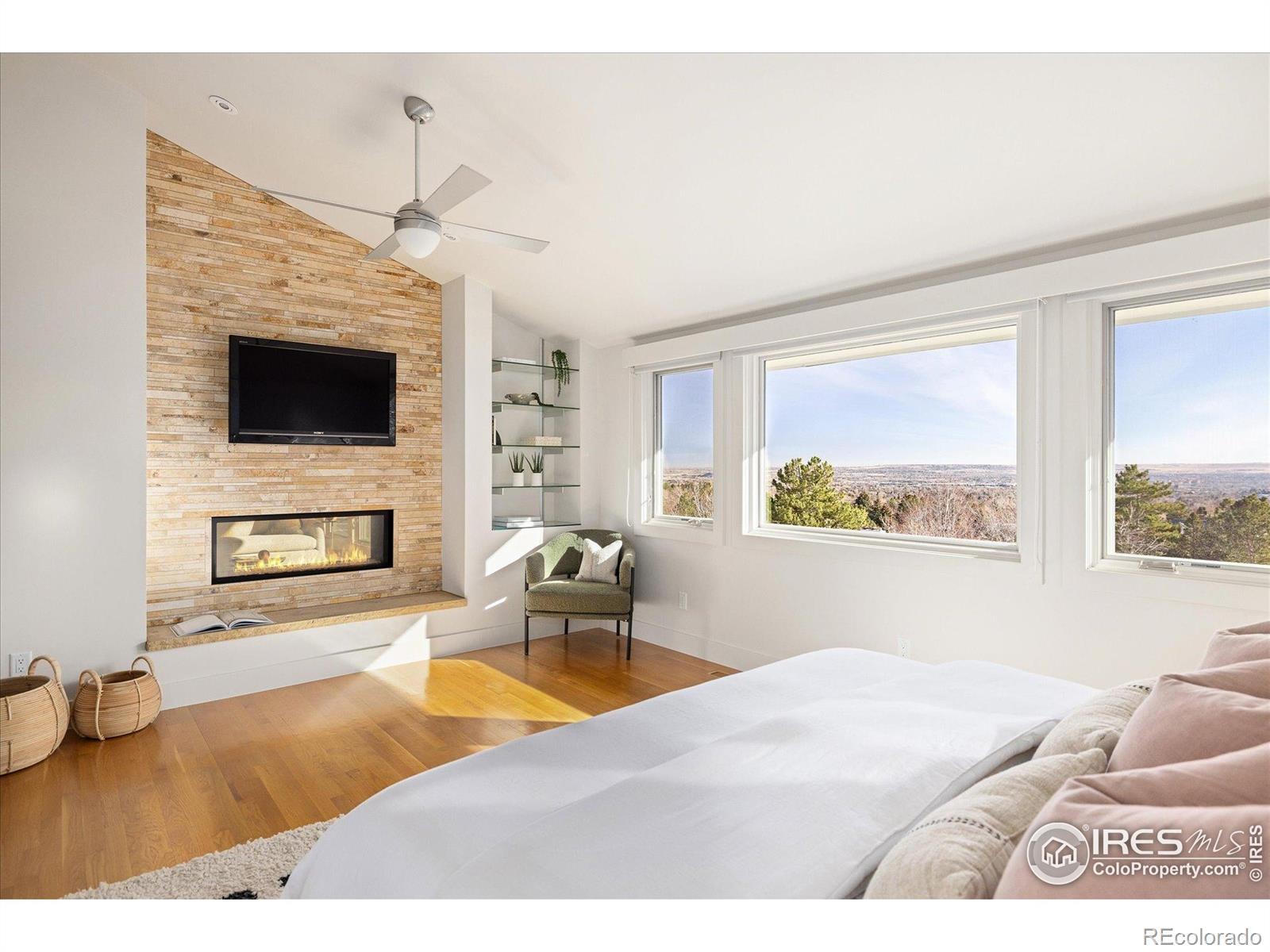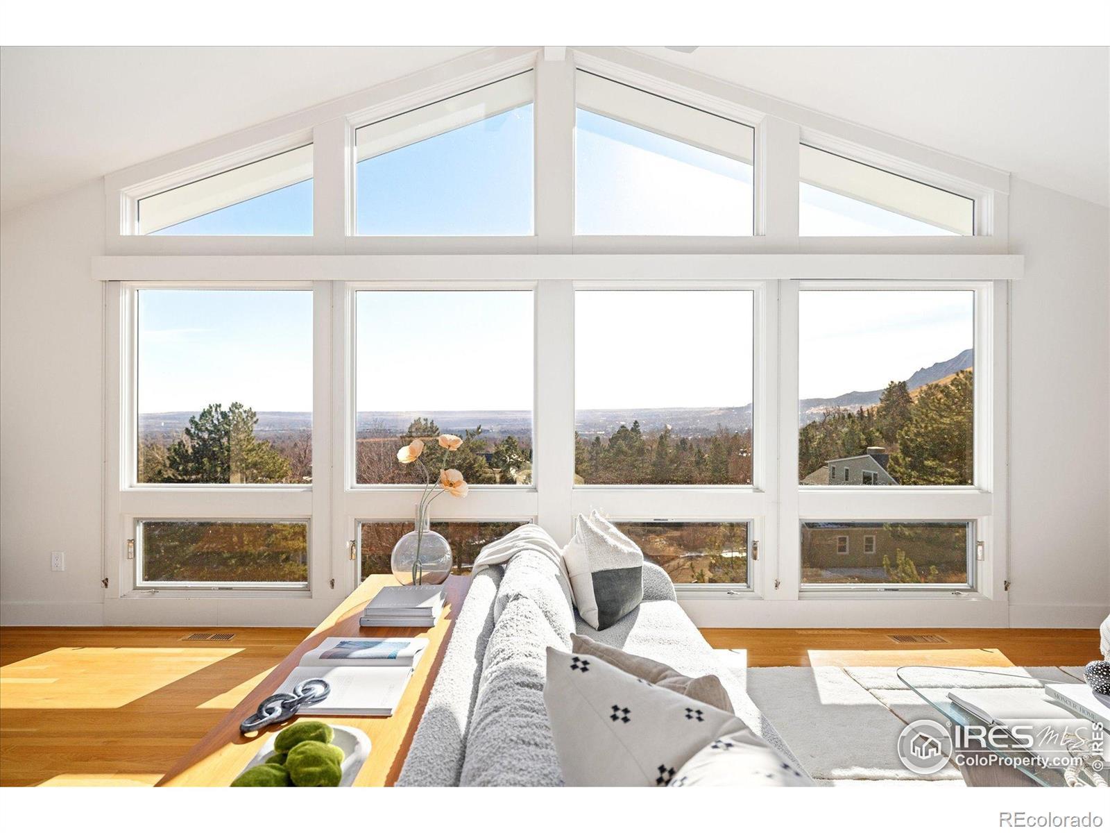 Where stunning views meet modern elegance. Elevated living awaits in this luxurious retreat, tucked away in Boulder's highly sought-after enclave, Spring Valley Estates. Sweeping views of the Boulder Valley and the Flatirons captivate from every angle. The main level showcases white oak flooring, vaulted ceilings and a kitchen with Caesarstone countertops, high end cabinets and Thermador appliances. A striking double-sided gas fireplace connects the great room to the main-floor primary suite, which features dual closets, a built-in desk and a cozy reading nook. The spa-like primary bath includes two vanities, a soaking tub and a walk-in shower. Outdoor living shines as you are drawn to the incredible views and a bird's eye view of Boulder. Enjoy raised garden beds, a spacious fenced in yard with a hot tub with an incredible sense of privacy. The lower level hosts two additional bedrooms, bathroom, large family room and an abundance of storage space. Additional highlights include a new class 4 roof (2022), new stucco (2022), freshly painted exterior (2022), fresh interior paint (2025) and a 2-car garage. Imagine a setting surrounded by nature, breathtaking views, and incredible hiking and biking trails all just minutes from the amenities of Pearl Street and the City of Boulder. Walk, ride your bike or take a short drive to Lucky's Market or Ideal Market to enjoy shopping, restaurants, ice cream and coffee shops. This home epitomizes luxury and tranquility in a unique setting that you cannot replicate.