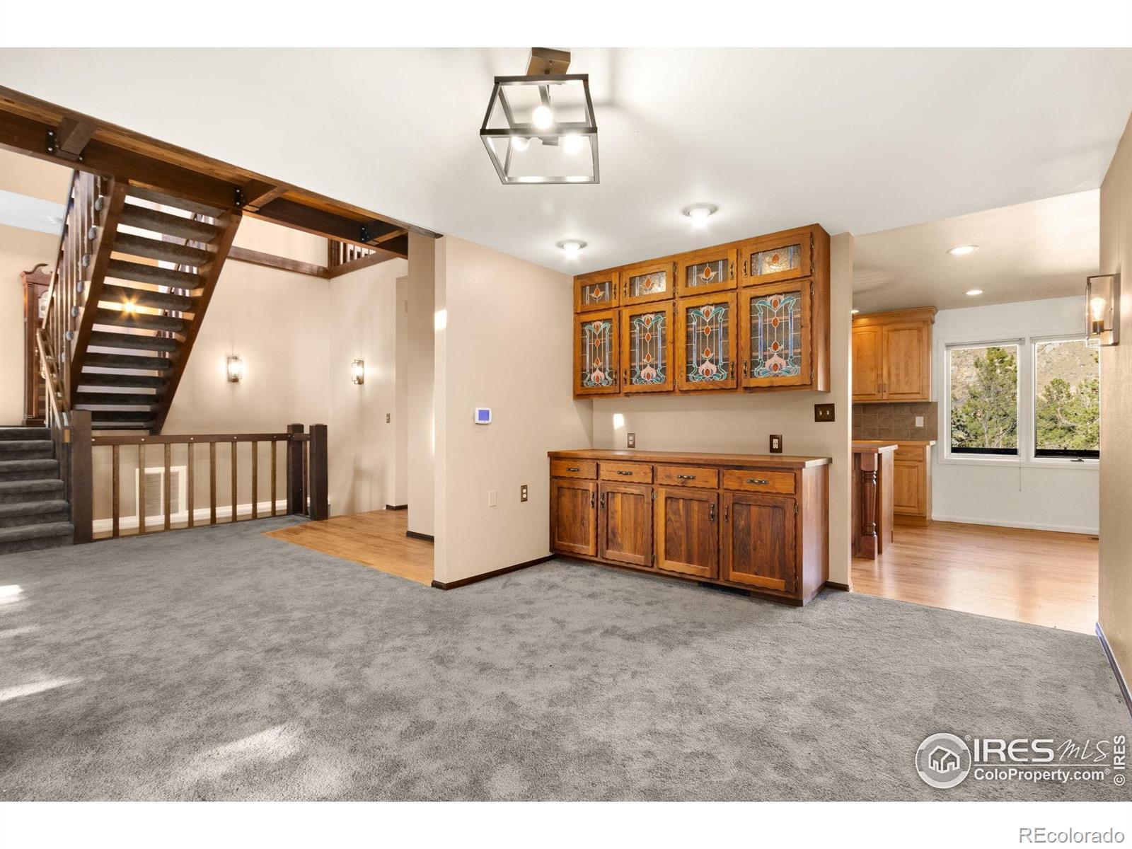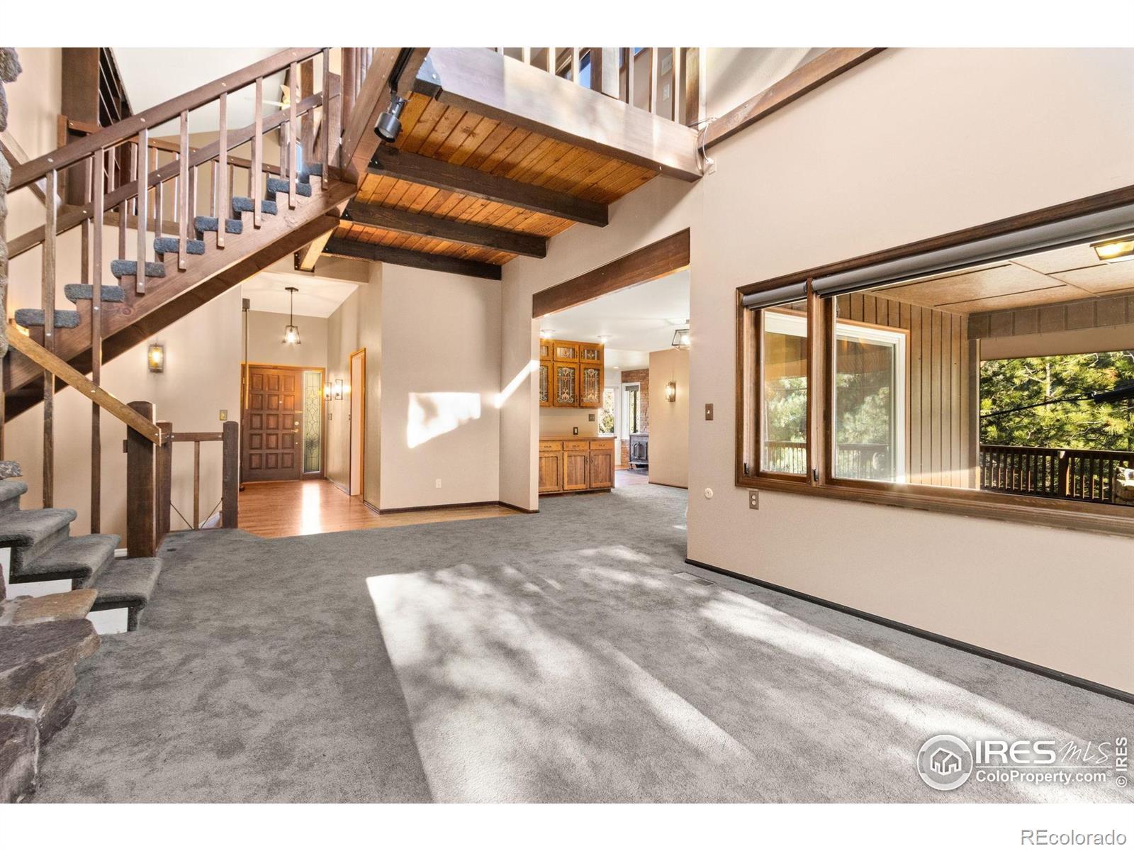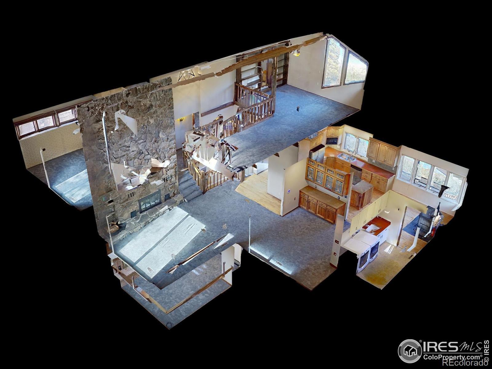 Over 7 acres of mountain living where peace and scenery take center stage! Set against Colorado's natural beauty, this expansive property offers rolling land and forested surroundings where the only sounds you'll hear are the rustling wind through the pines and the gentle presence of local wildlife. Located just 17 miles from Old Town, this home sits just across from the Cache La Poudre River and also features a seasonal stream from Boyd Gulch Creek. Inside, the spacious floor plan showcases elegant design details, soaring ceilings, and exposed wood beams that add a timeless mountain-lodge feel throughout the home. Numerous upgrades have been completed over the years, including new carpeting, refinished wood floors, upscale blinds, updated sliding glass doors, and more. The living area is centered around a floor-to-ceiling stone fireplace with a unique water feature, creating a striking focal point that's visually stunning. The kitchen features modern appliances, a generous island with ample prep space, and pullout cabinets, allowing for everyday ease and effortless hosting. A charming breakfast nook with a classic wood stove offers the perfect spot to start the day, while a separate dining area provides space for more formal gatherings. Two bedroom suites offer comfort and flexibility. Each room includes its own ensuite bath, with the primary standing out thanks to a spacious 5-piece bath and direct access to the stone patio just outside. A sun-filled loft overlooks the main living space and provides flexible possibilities, plus a bonus room that works well for storage. Downstairs, the basement features a recreational area with a brick fireplace, plus a 3rd bedroom that adds flexibility to the overall layout. An expansive wraparound deck invites you to enjoy sweeping views of your acreage, whether it's for quiet mornings, sunset evenings, or stargazing nights. The attached two-car garage includes a built-in workbench, ideal for projects. No HOA!